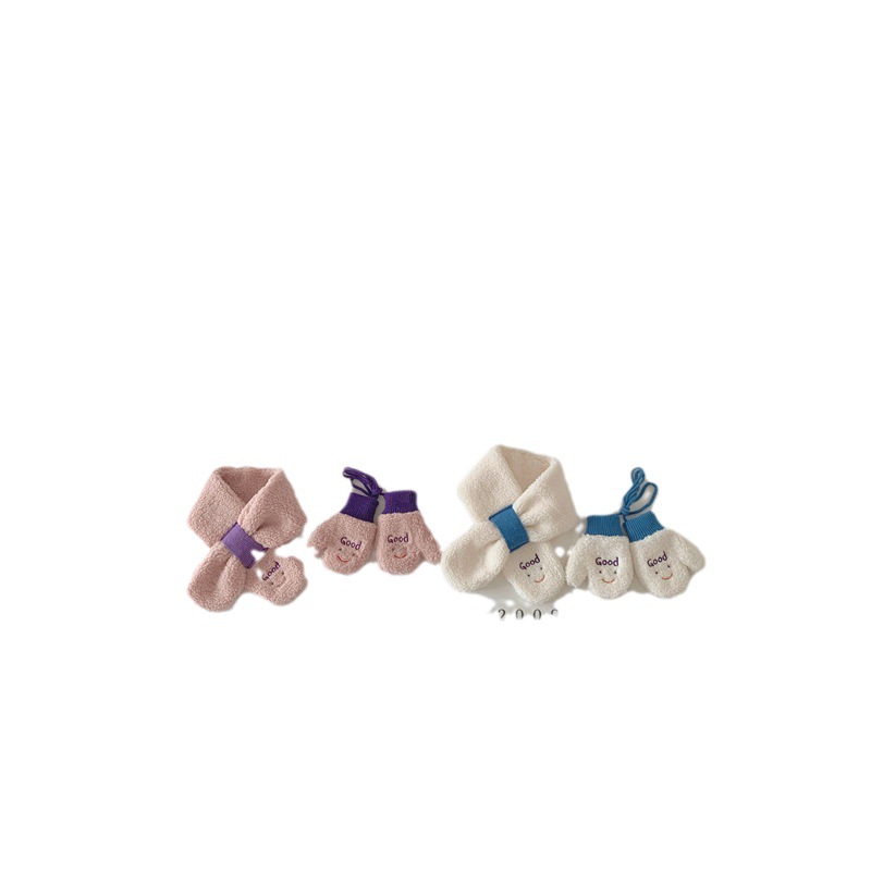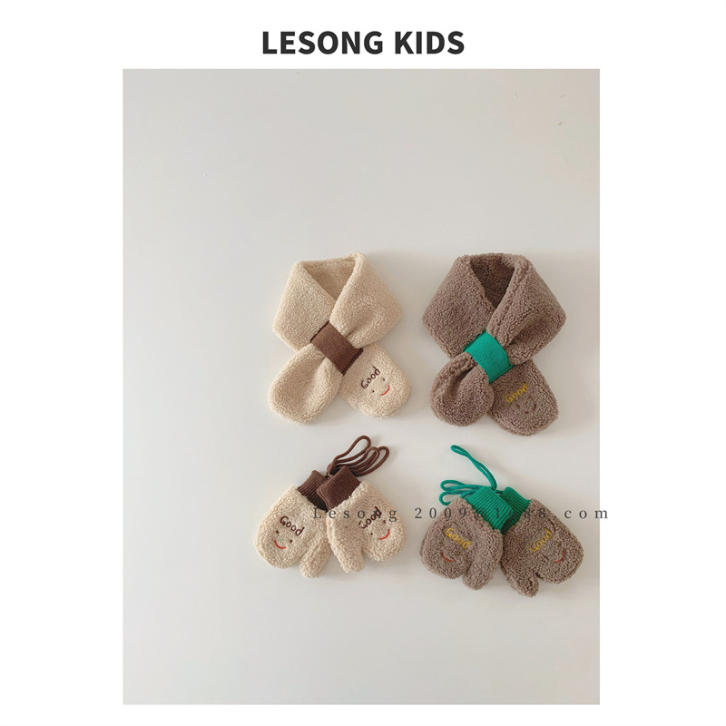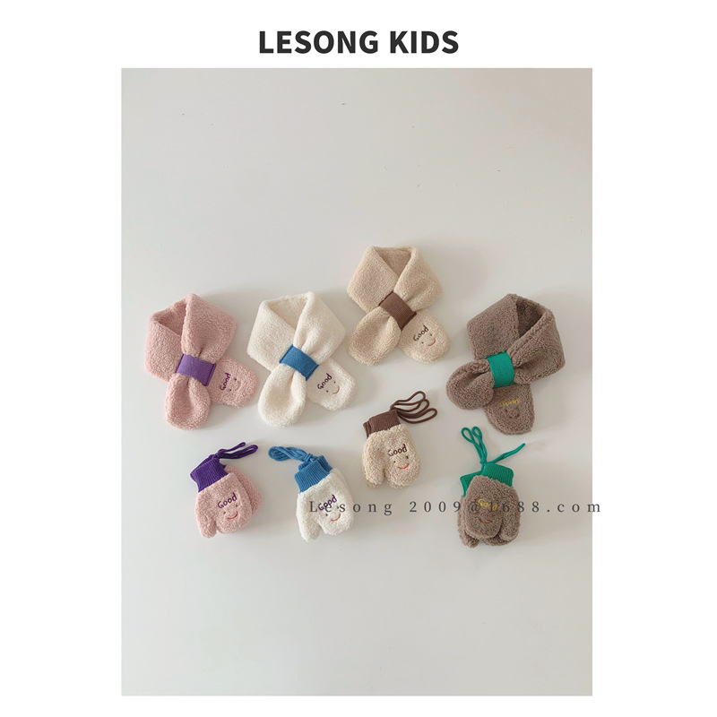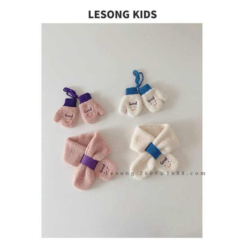 Детский шарф из Южной Кореи, зимний 2023 год, новый контраст со смайликом, шерсть ягненка, детский шарф, перчатки, набор из двух предметов
