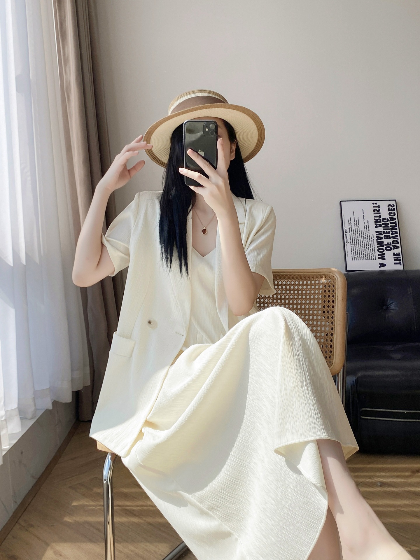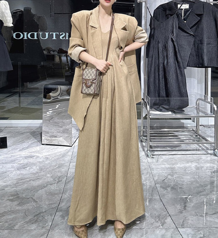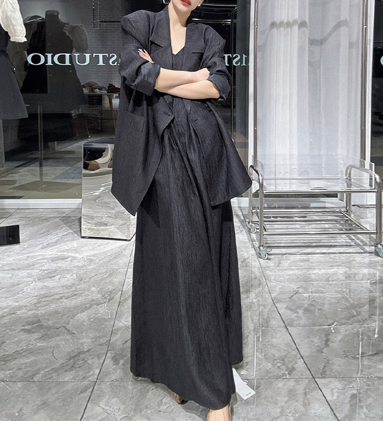 [Спот] Женский большой размер новый весенний и осенний слегка толстый мм свободная куртка подтяжка длинная юбка набор из двух частей 5027