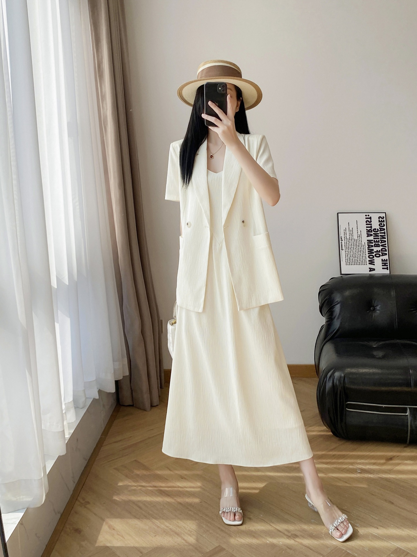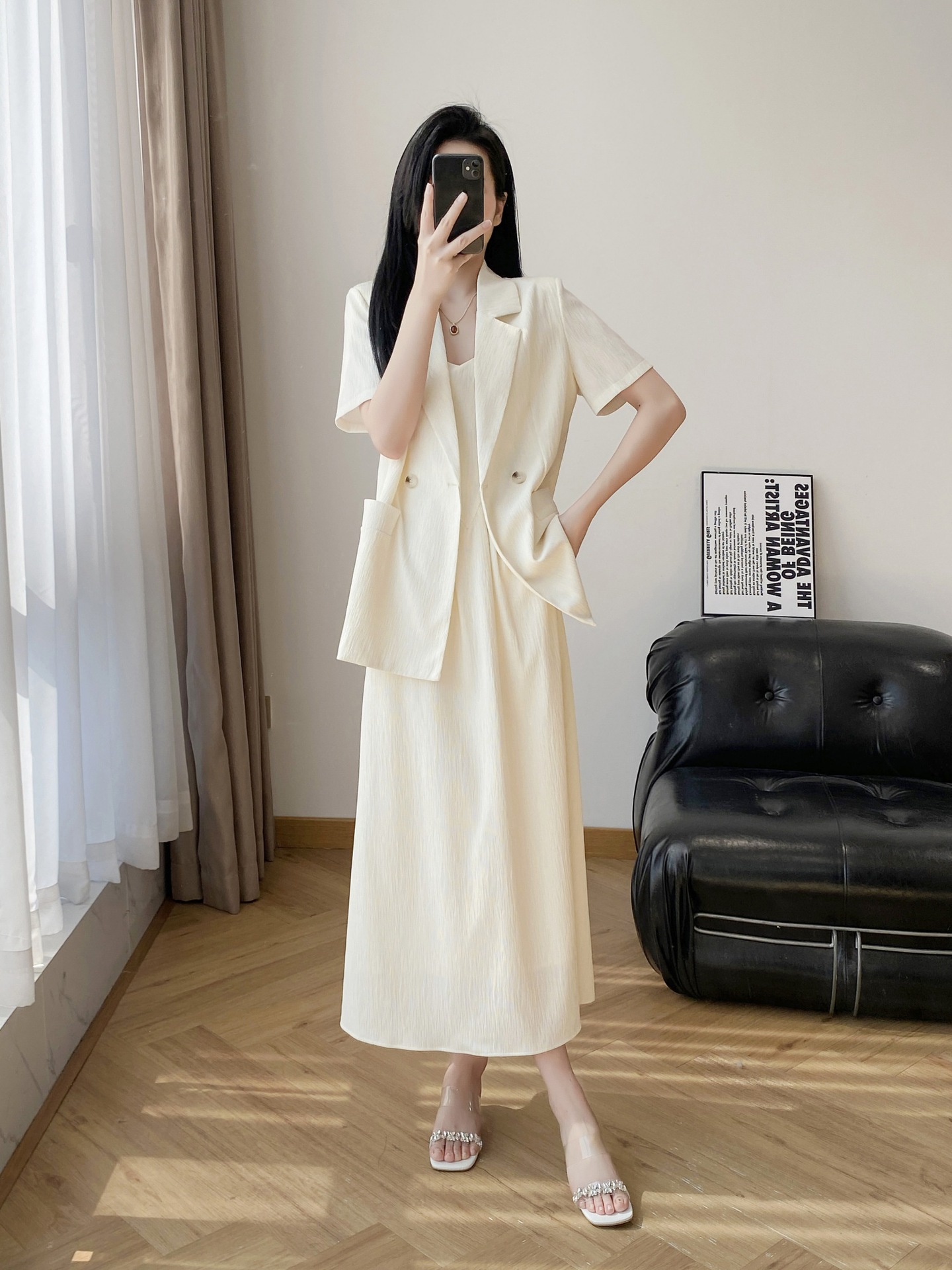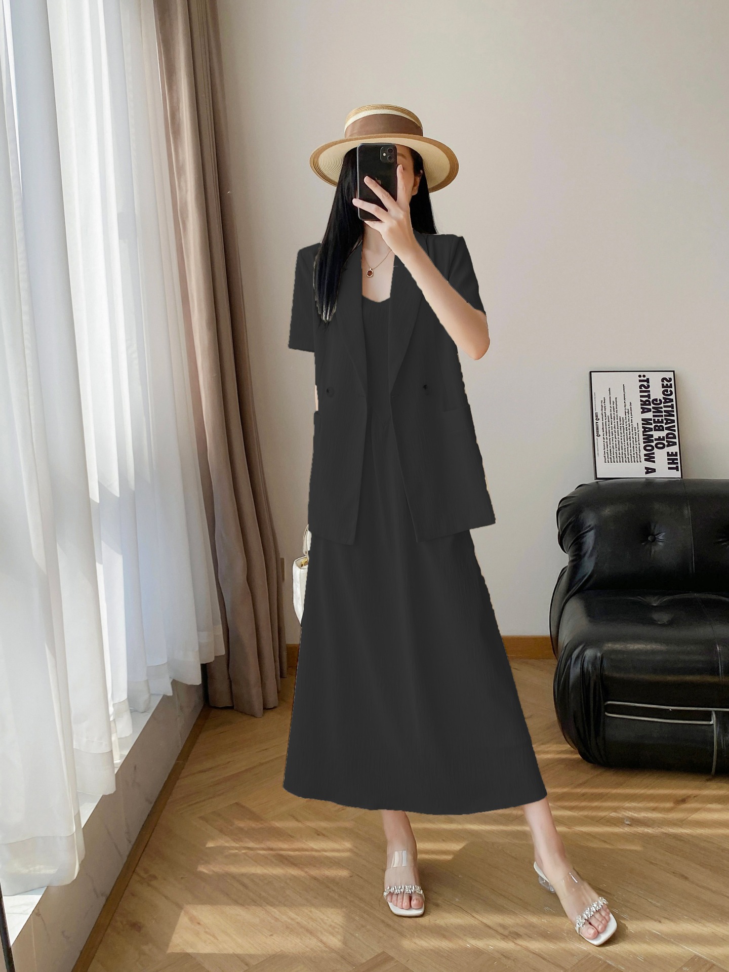 Костюм золотистого кофейного цвета; черный костюм