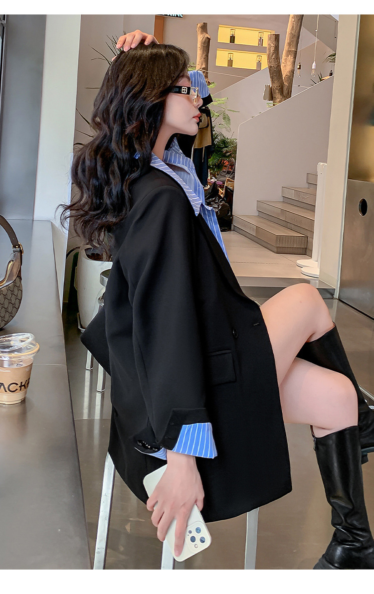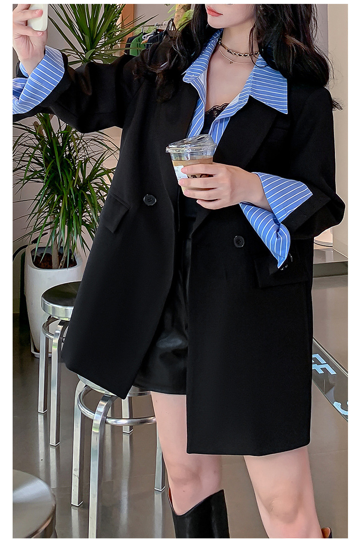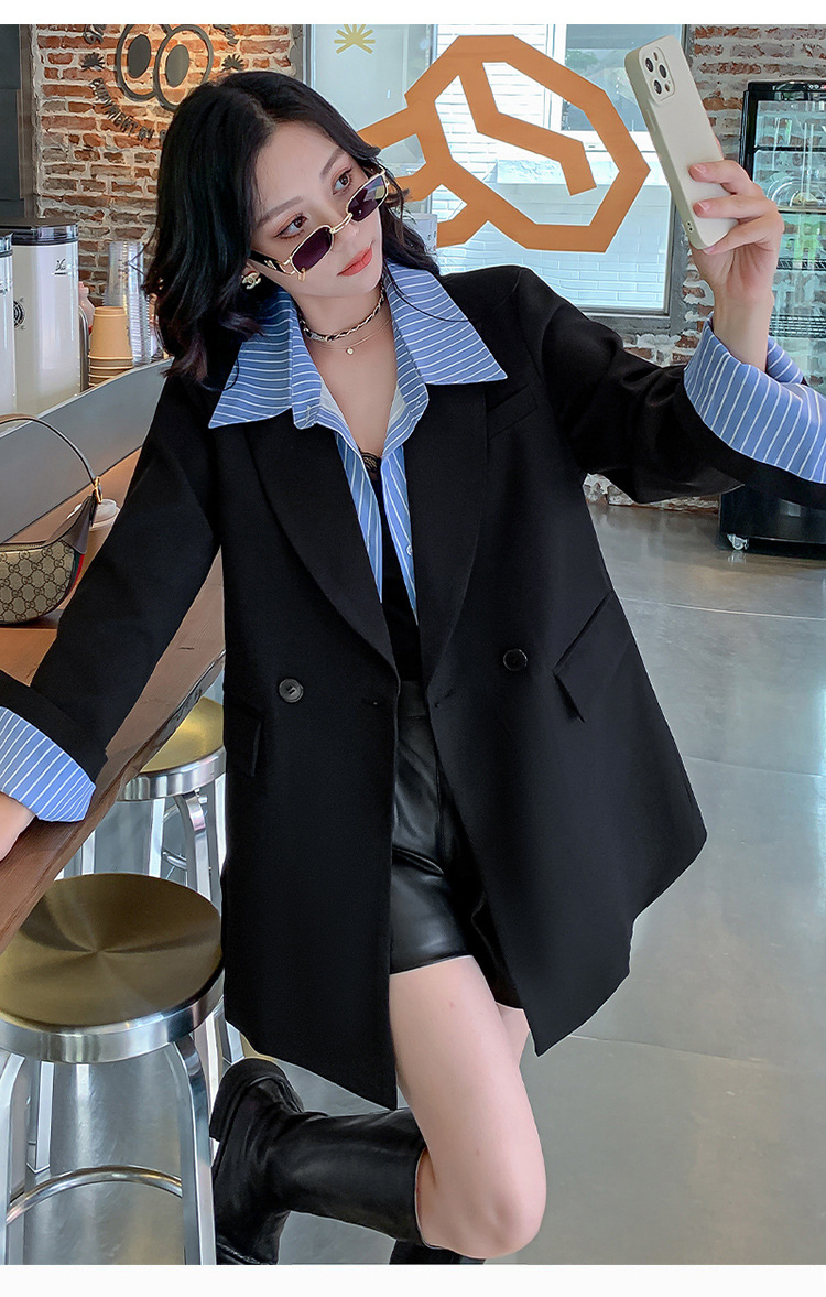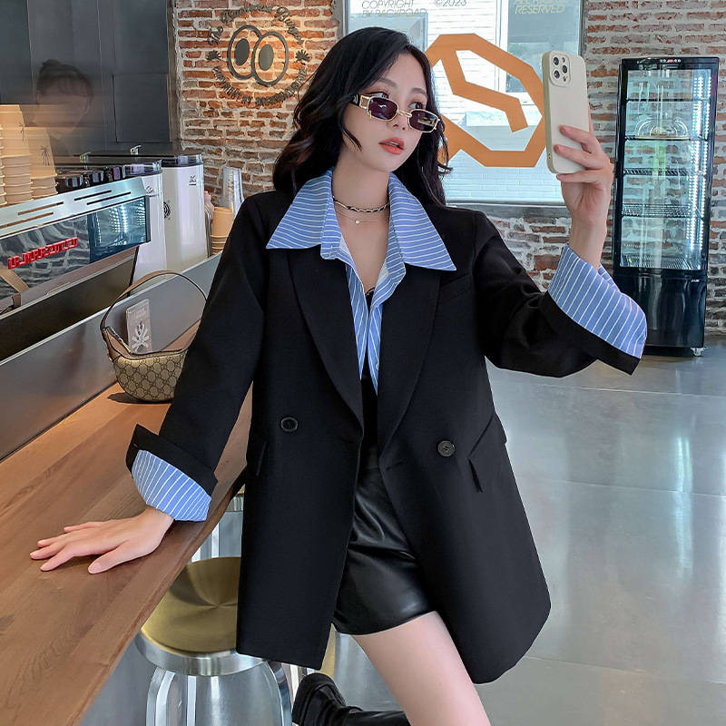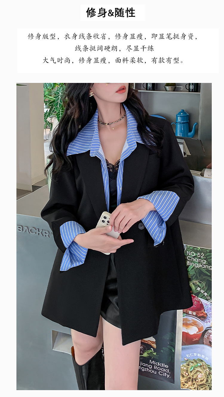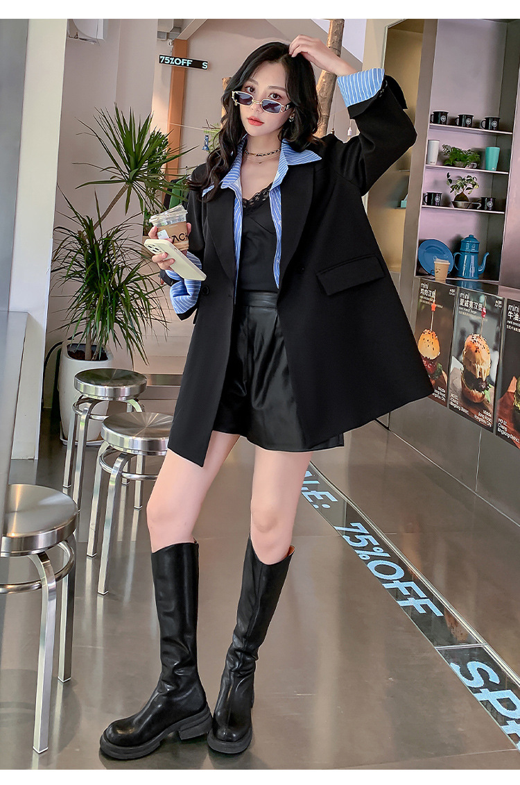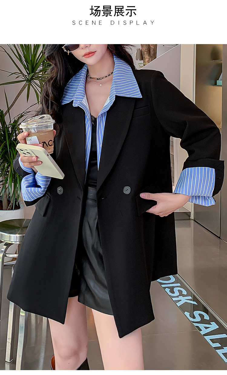 Осенний новый костюм больших размеров, поддельный пиджак из двух частей, женский корейский Свободный Повседневный уличный костюм с пухленькими девушками 23103