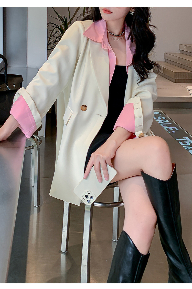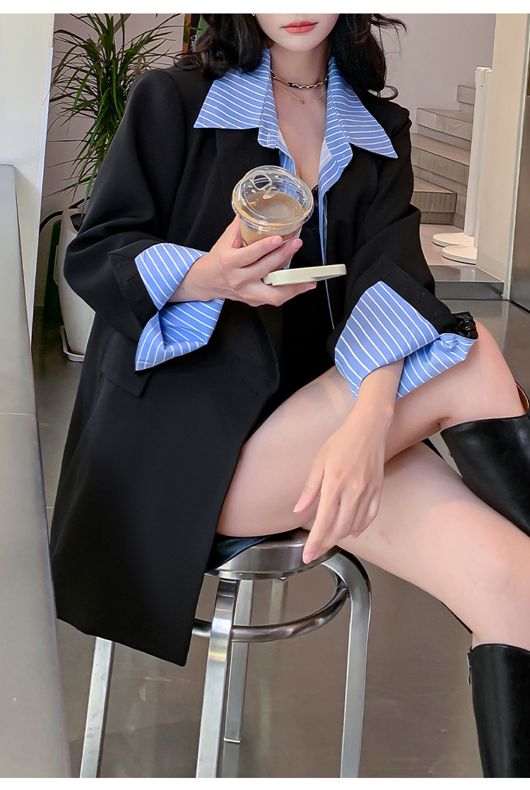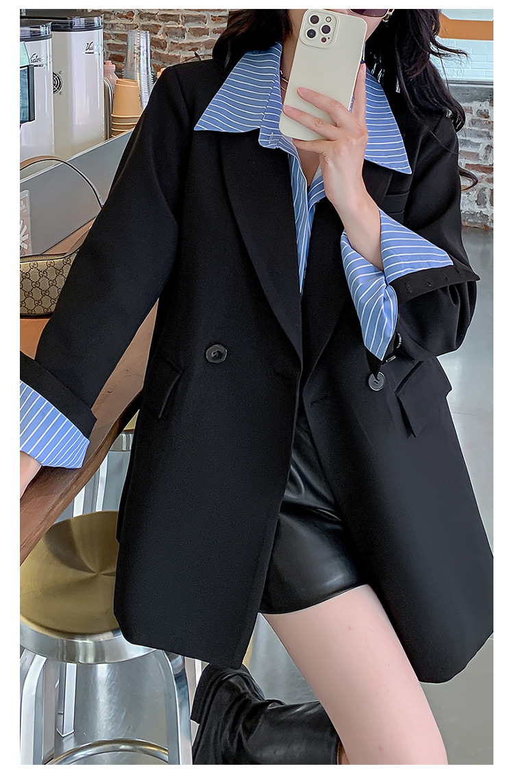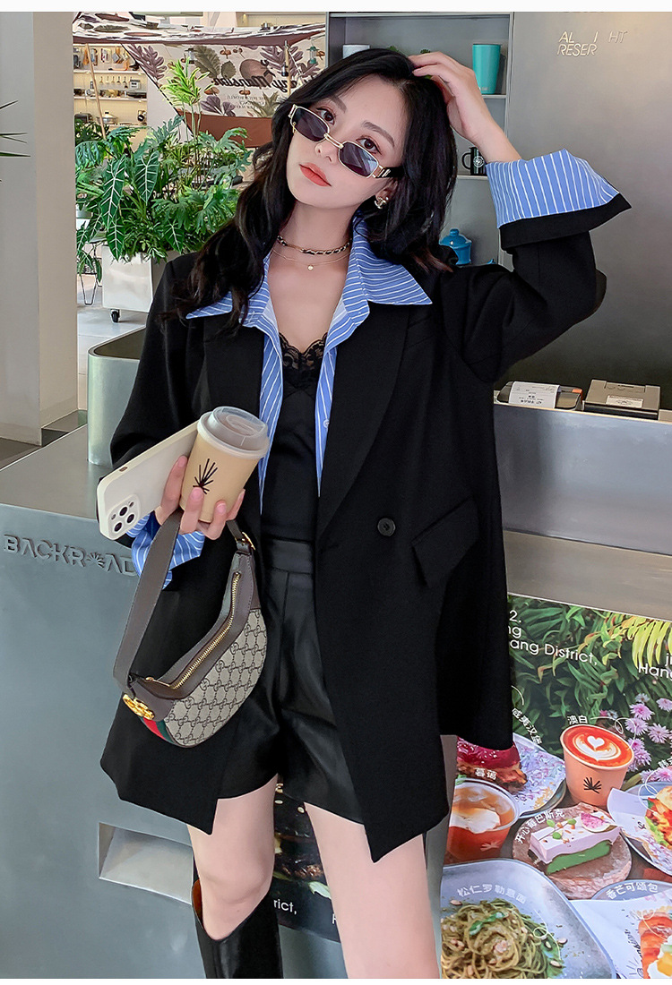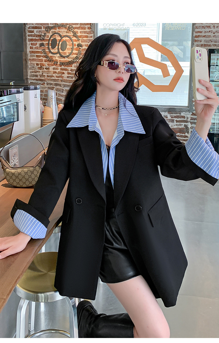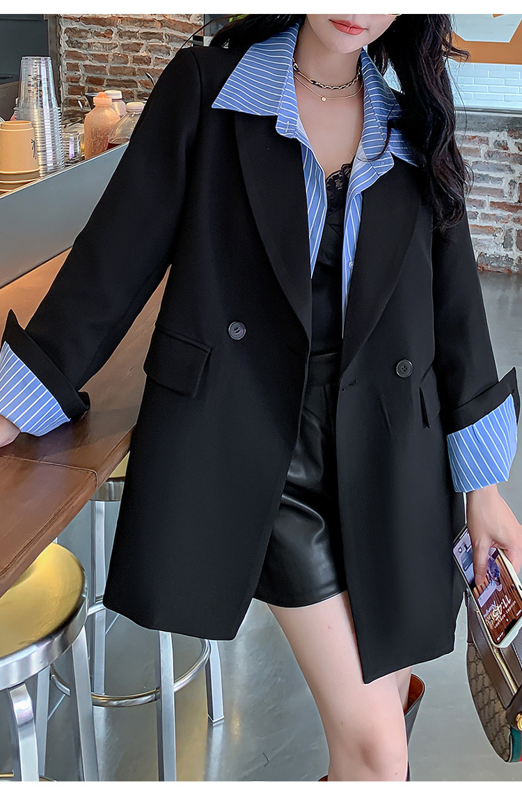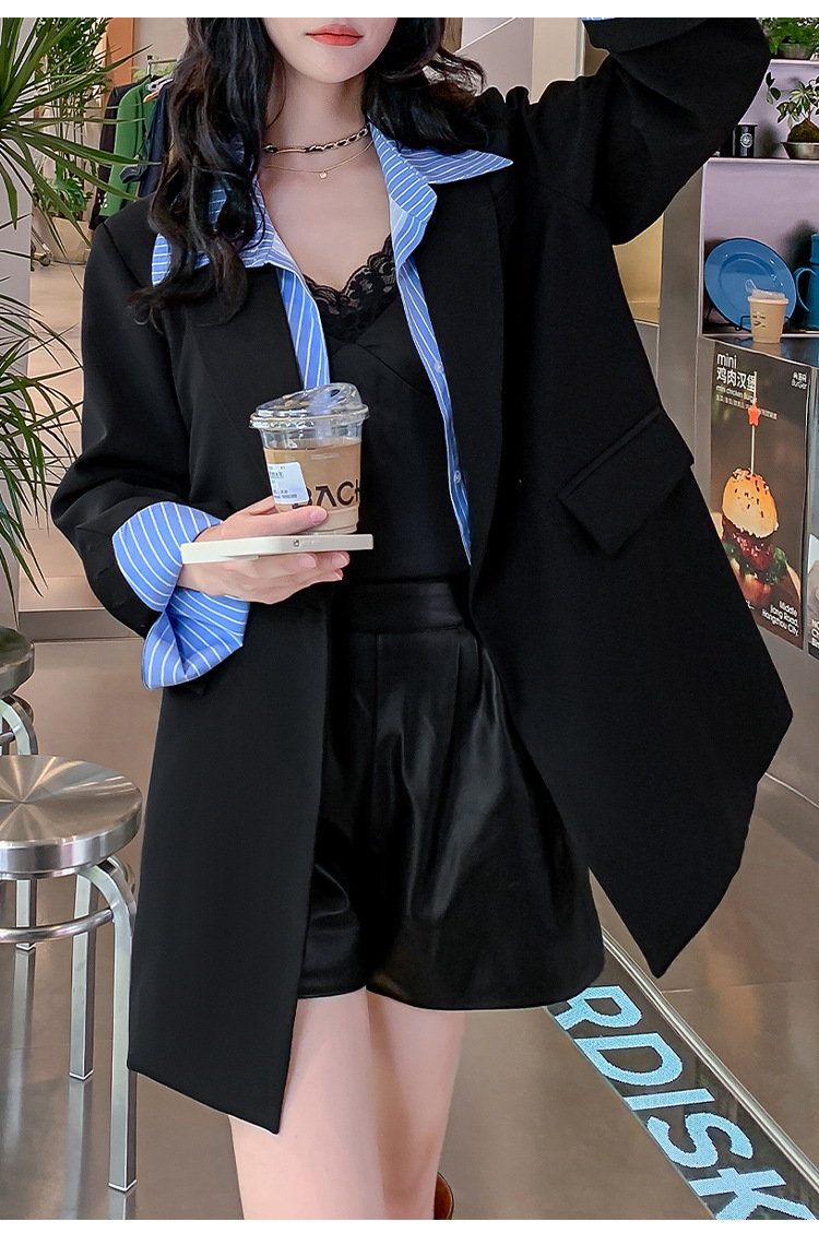 Осенний новый костюм больших размеров, поддельный пиджак из двух частей, женский корейский Свободный Повседневный уличный костюм с пухленькими девушками 23103