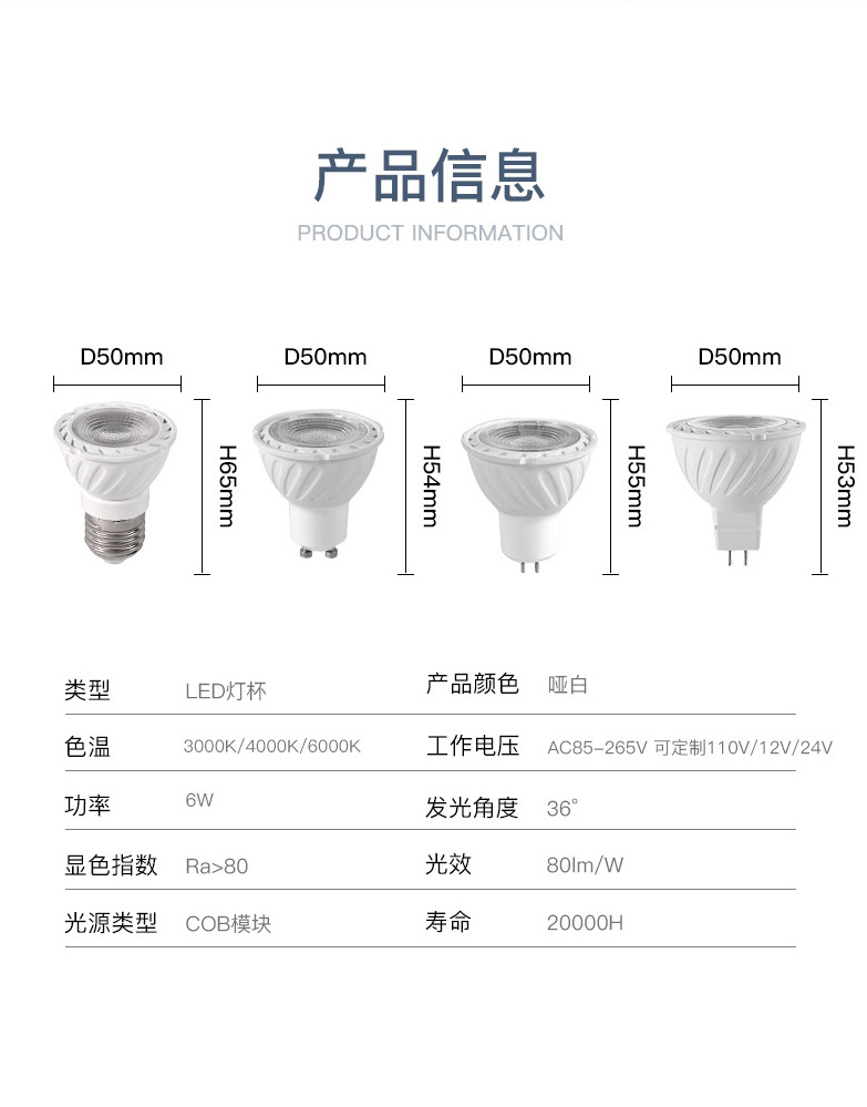 GU10-6W (без стробоскопа); GU5.3-6W (без стробоскопа); E27-6W (без стробоскопа); E14-6W (без стробоскопа); GU10-6W (обычный); GU5.3-6W (обычный); MR16-6W (обычный); E27-6W (обычный); E14-6W (обычный); MR16-12V-6W; Глубокое затемнение GU10