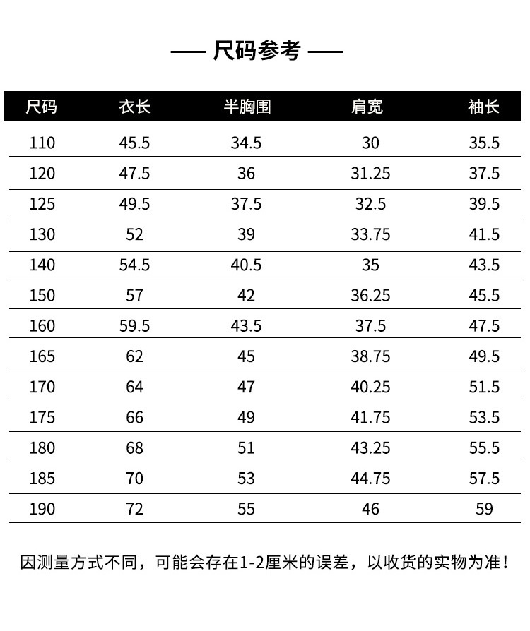 100cm; 105cm; 110cm; 120cm; 125cm; 130cm; 140cm; 150cm; 160cm; 165cm; 170cm; 175cm; 180cm; 185cm; 190cm
