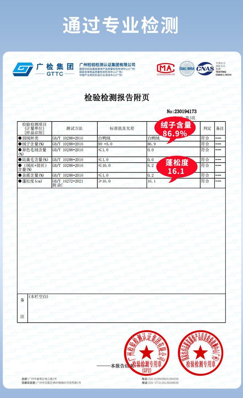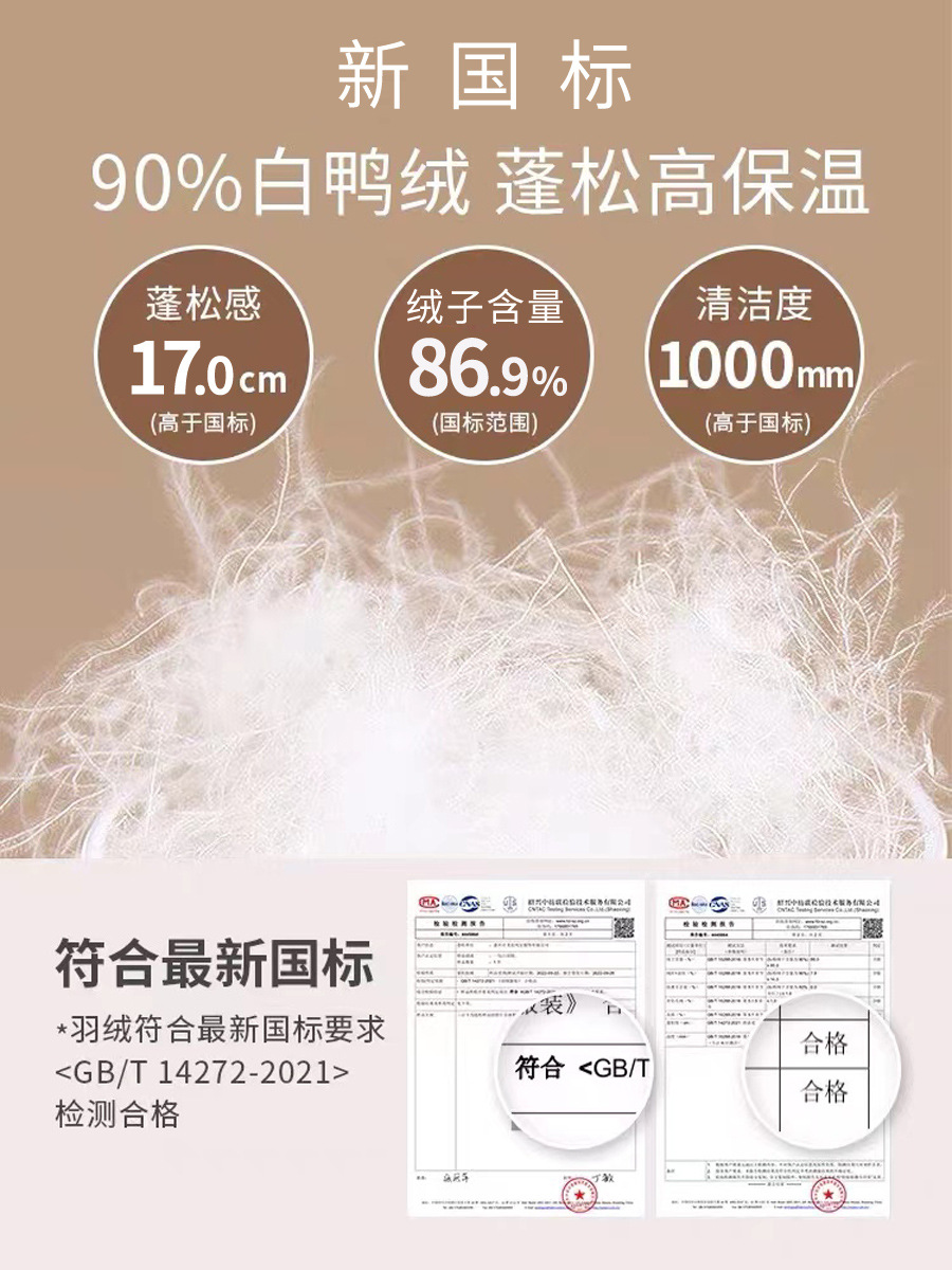 新国标90绒,绒子含量86.9,