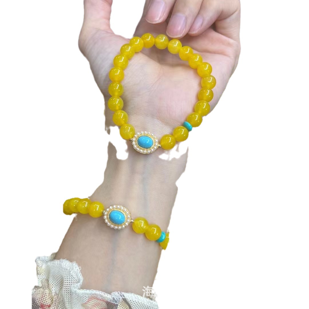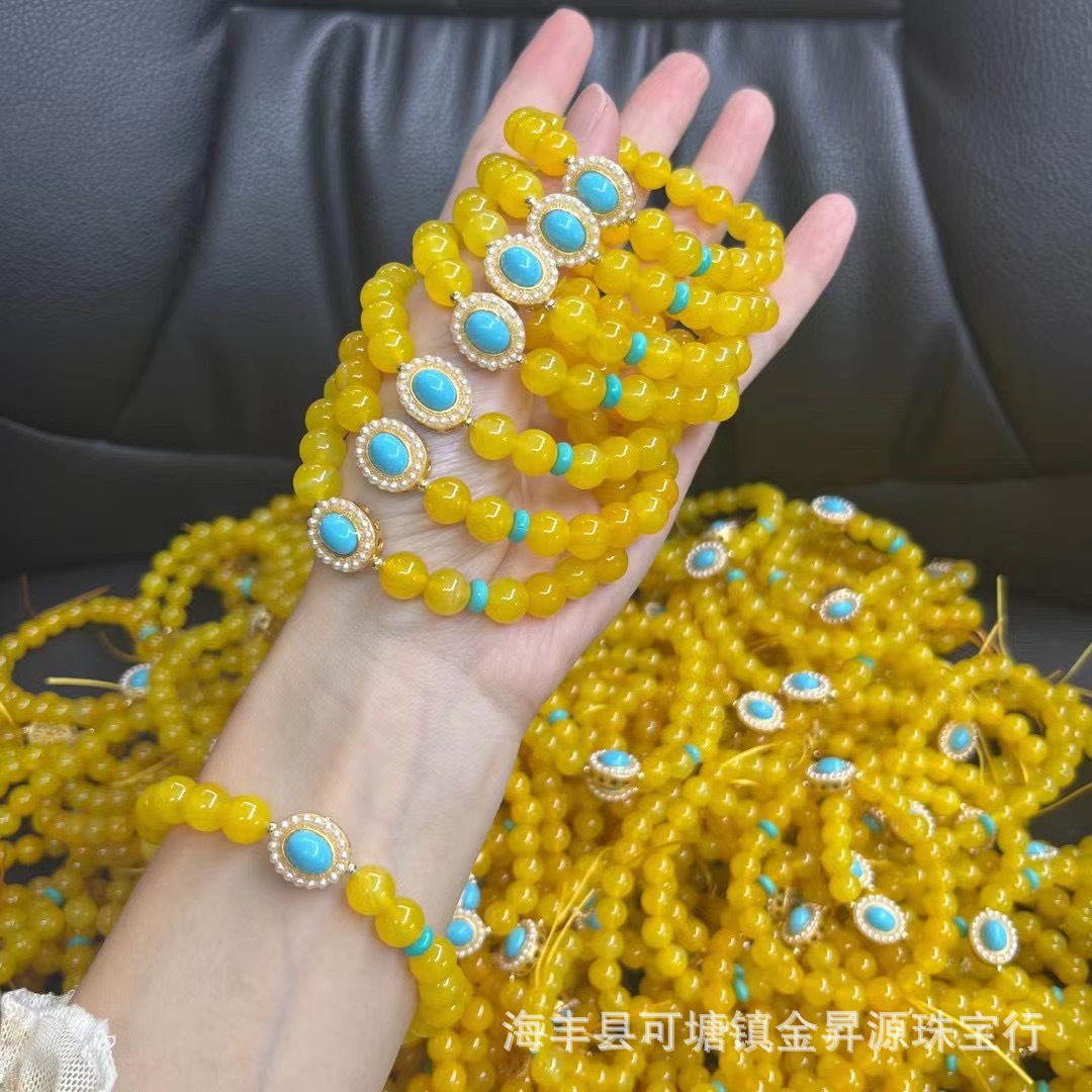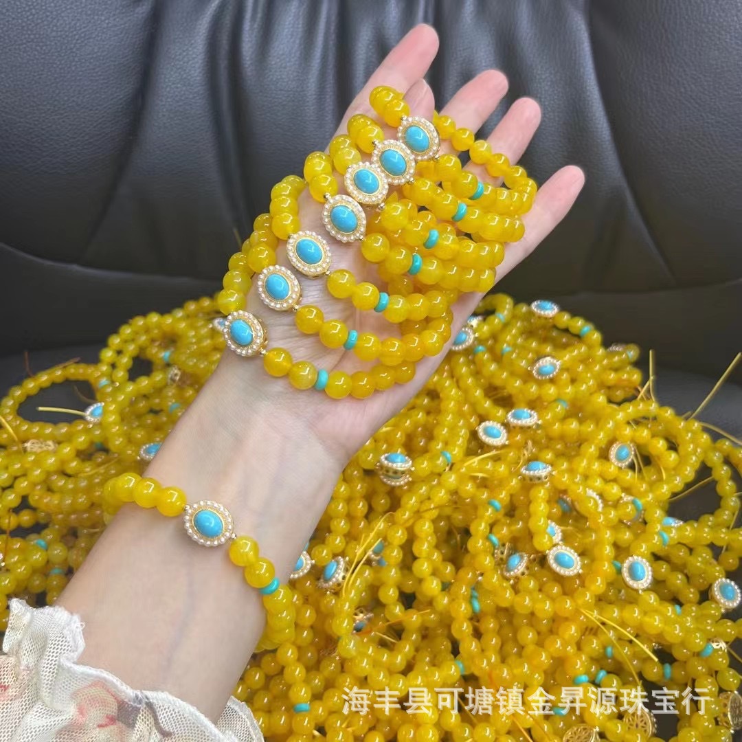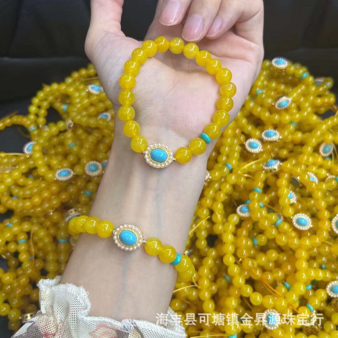 原创黄色玛瑙鸡油黄单圈手串女生搭配复古风文艺绿松石新款蜜蜡女批发量越大价格越低,可供直播间长期合作,欢迎来电私聊