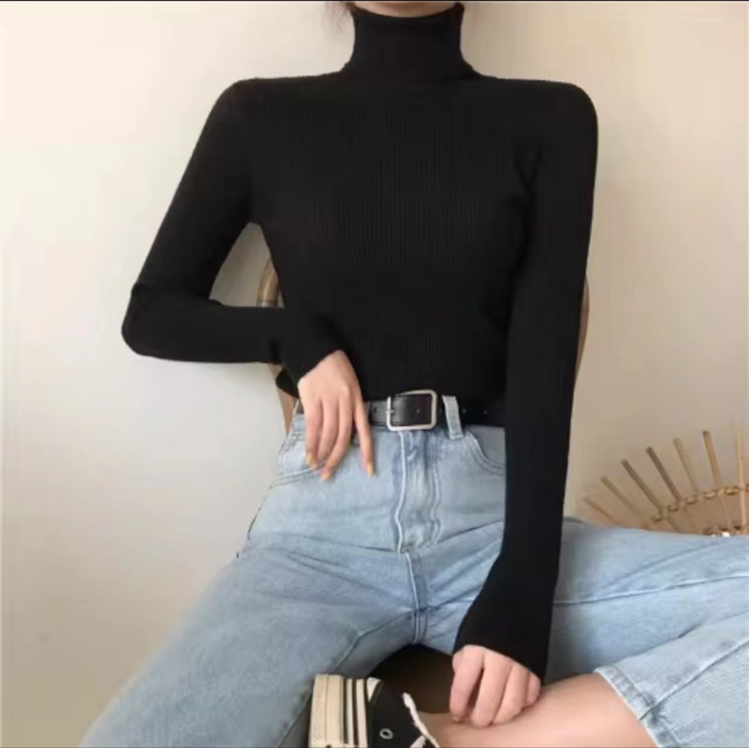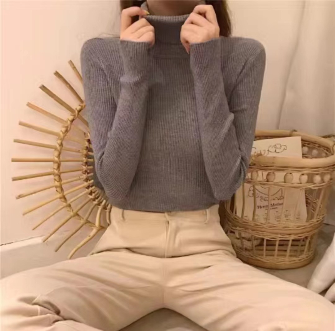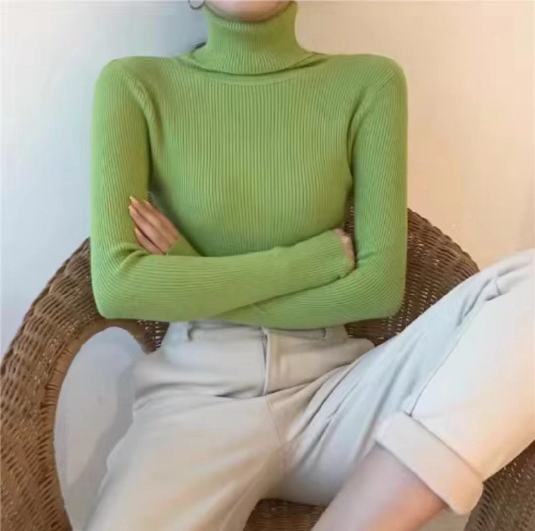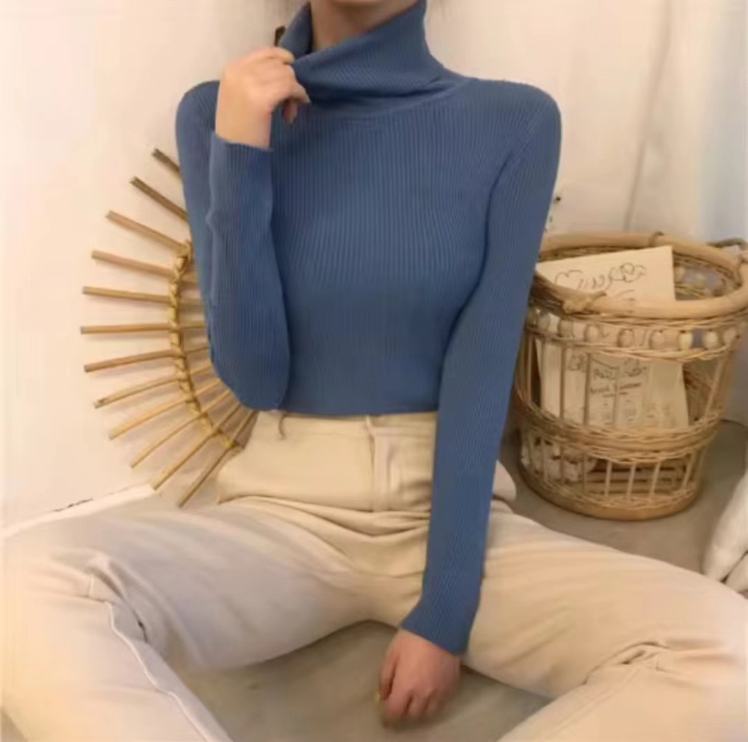 Свитер-водолазка женская осень-зима 2023, новая приталенная универсальная вязаная Базовая рубашка с длинными рукавами, стильный женский внутренний топ