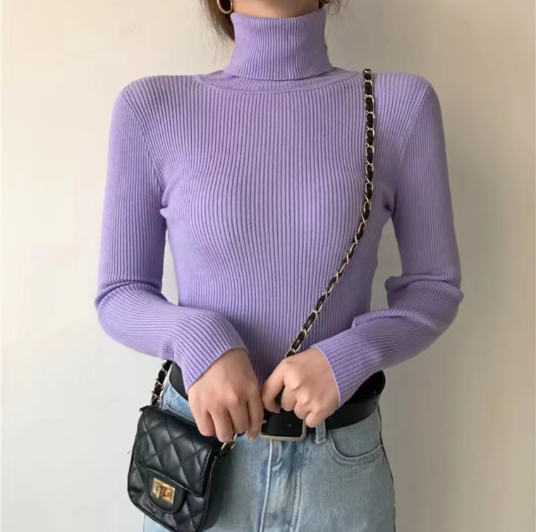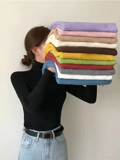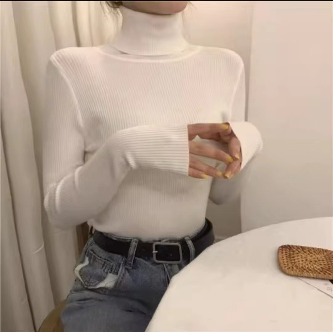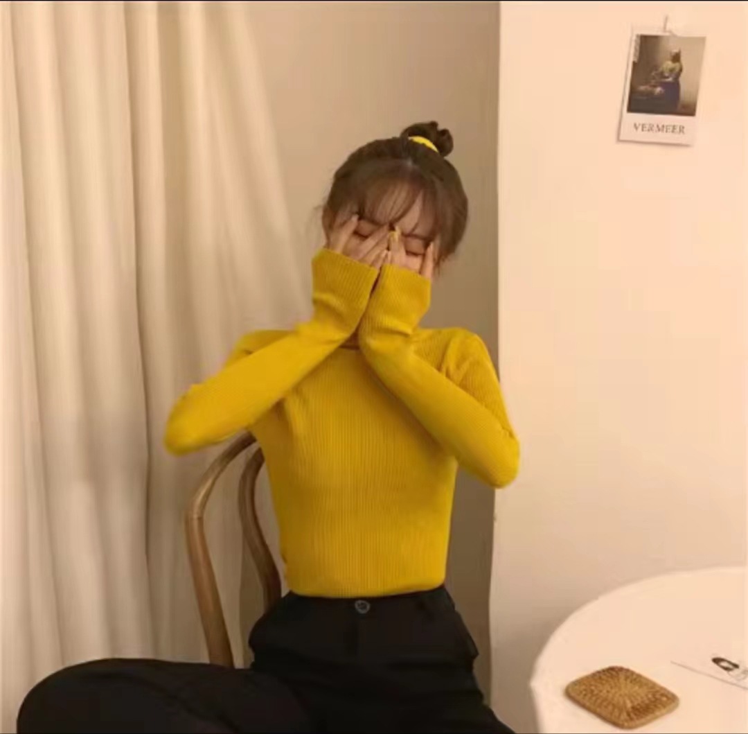 Свитер-водолазка женская осень-зима 2023, новая приталенная универсальная вязаная Базовая рубашка с длинными рукавами, стильный женский внутренний топ