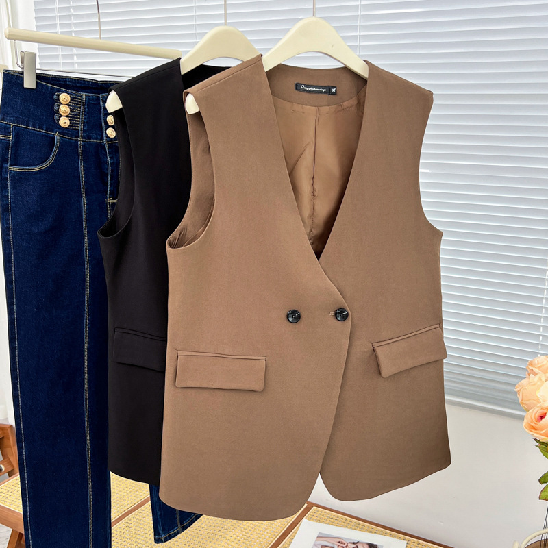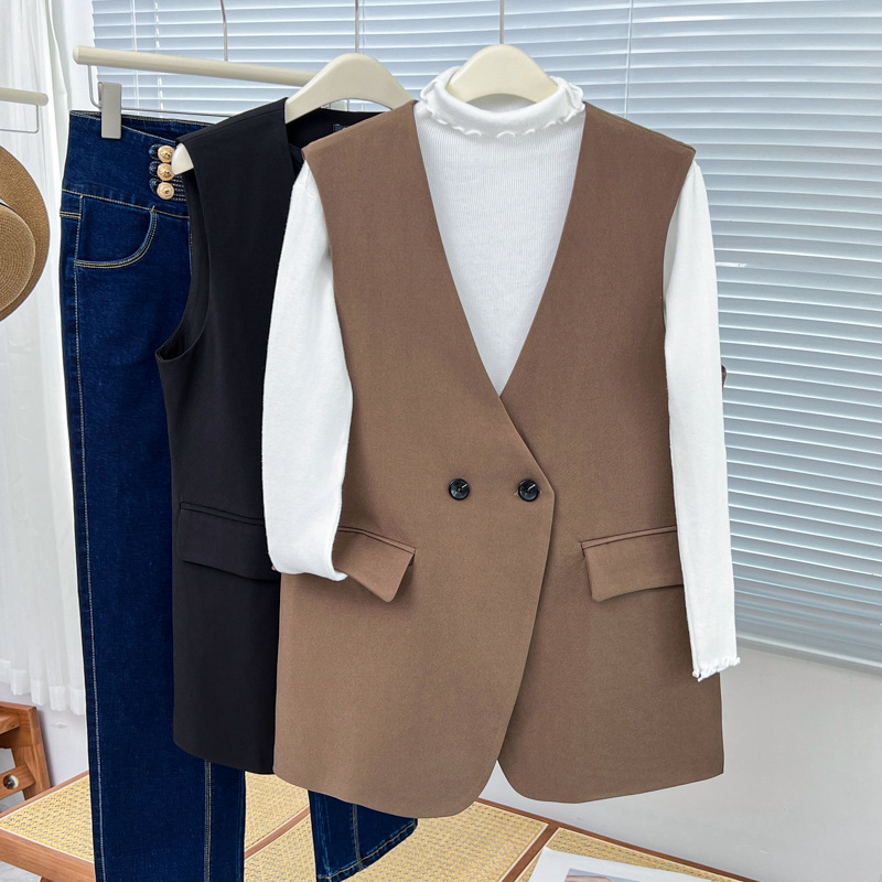 Женский костюм Chubby Girl больших размеров с двумя пуговицами, жилет, кардиган, внешняя повседневная куртка 0453