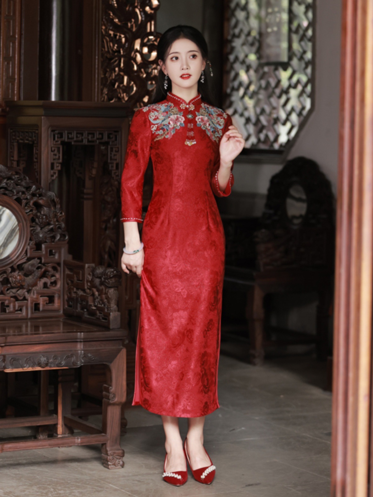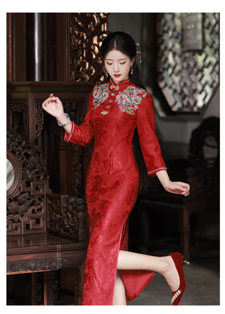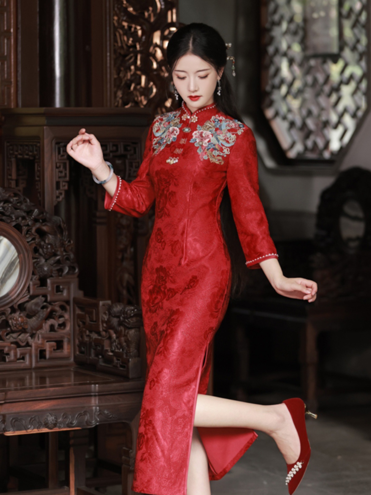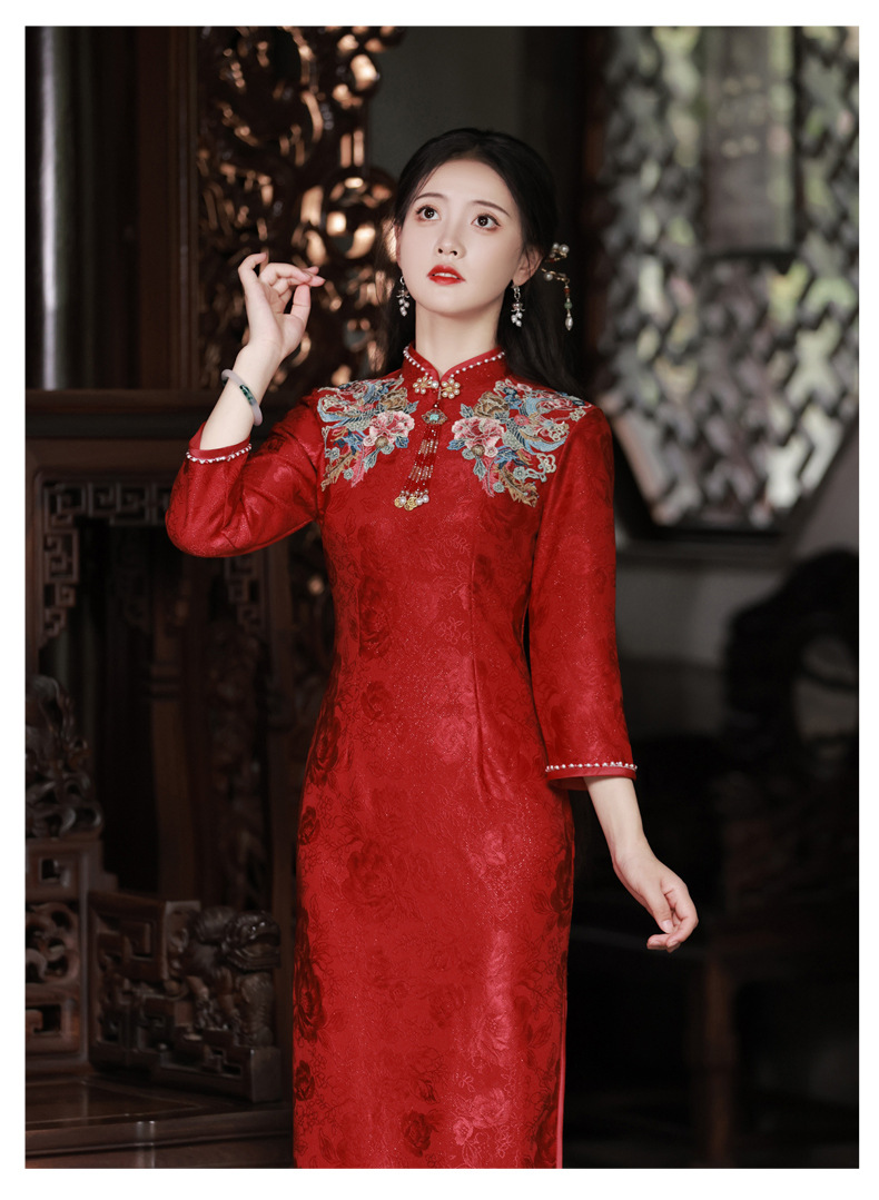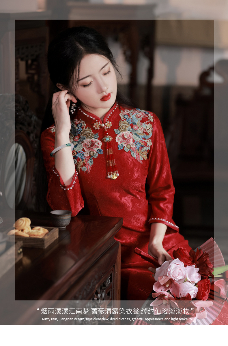 Красное тостовое платье Cheongsam, женское Новое высококачественное домашнее платье невесты с длинными рукавами на 2023 год, новое китайское платье для помолвки