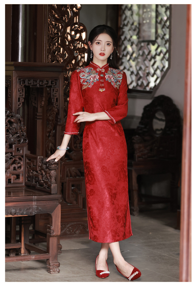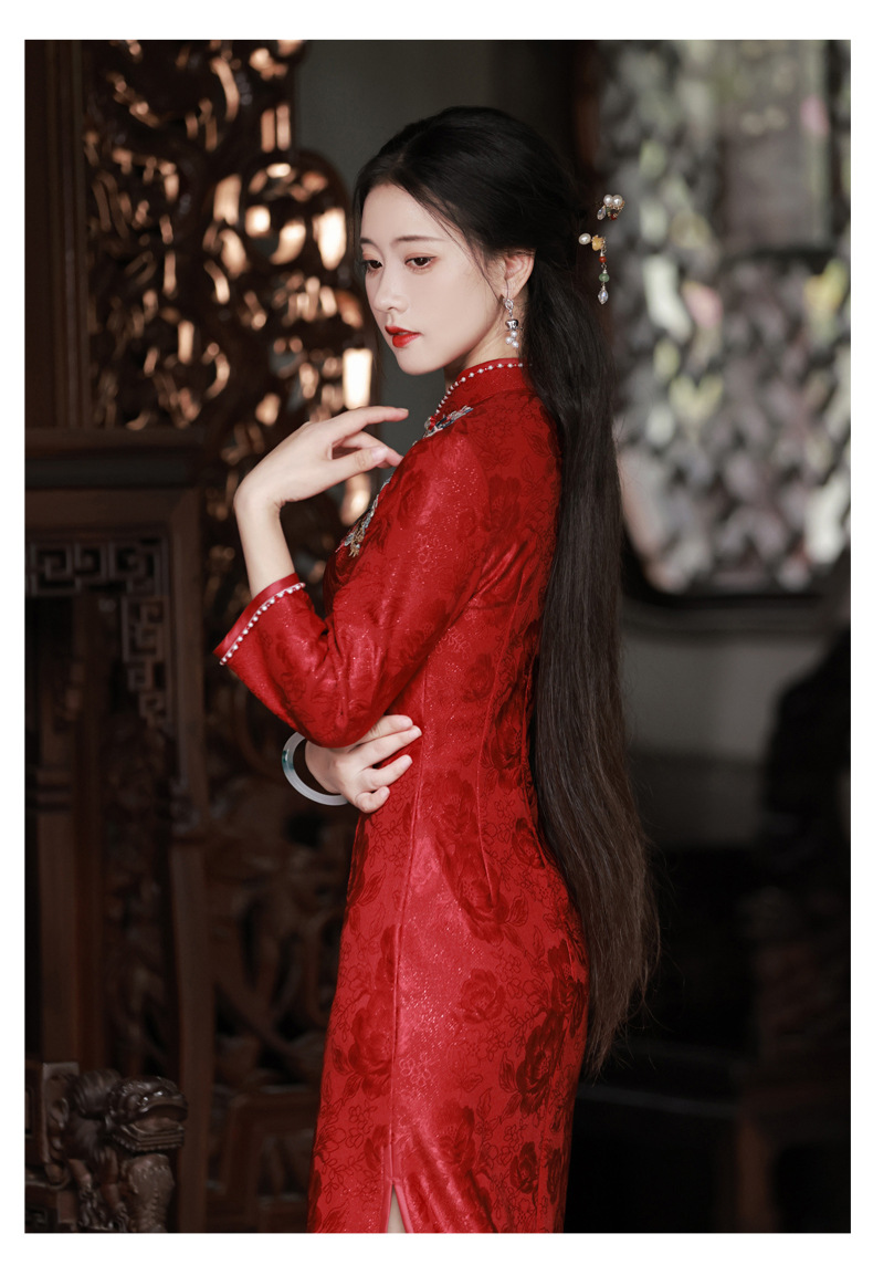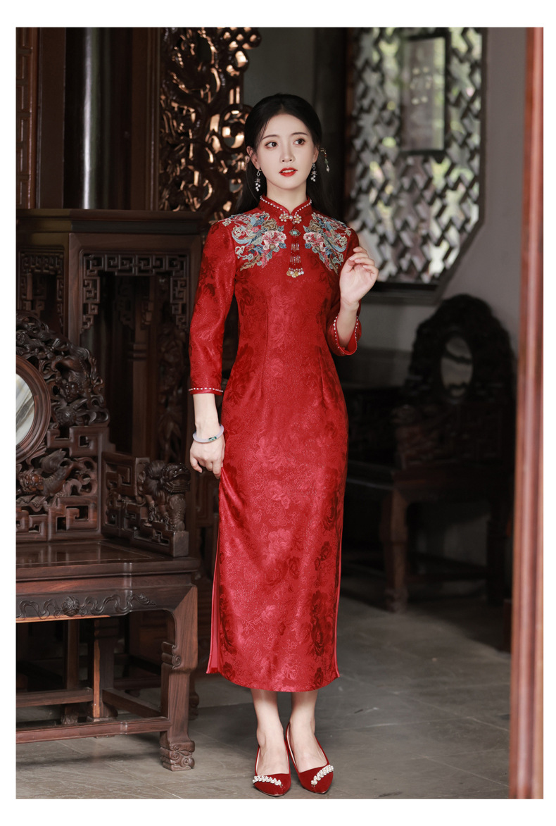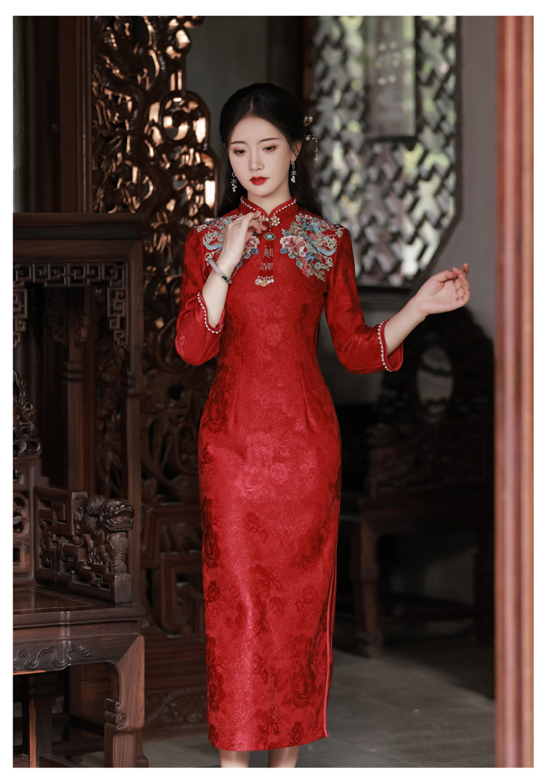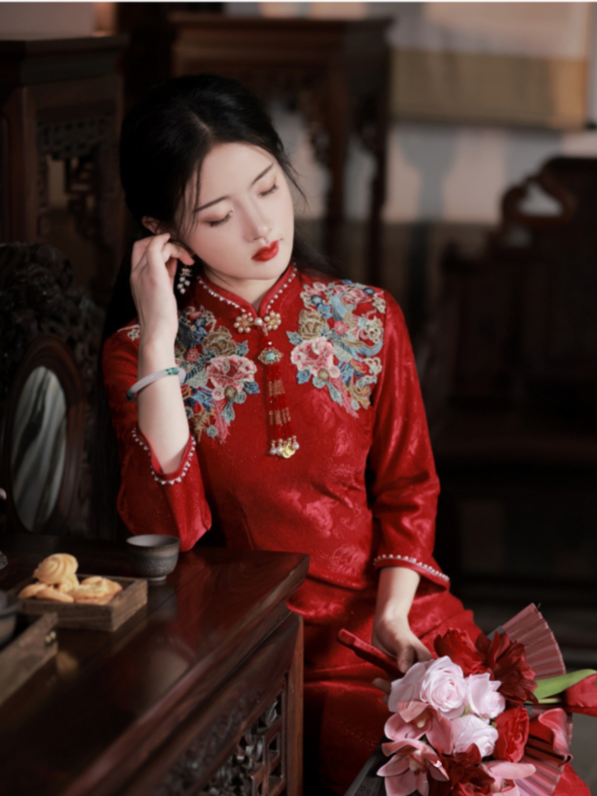 Красное тостовое платье Cheongsam, женское Новое высококачественное домашнее платье невесты с длинными рукавами на 2023 год, новое китайское платье для помолвки