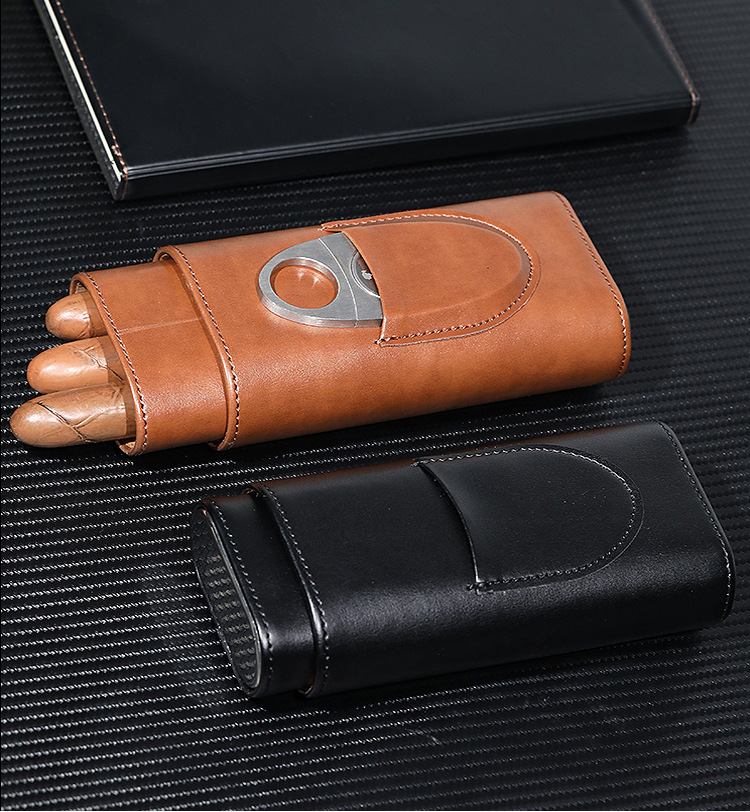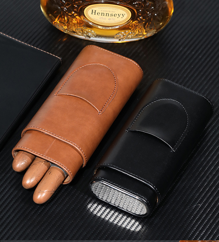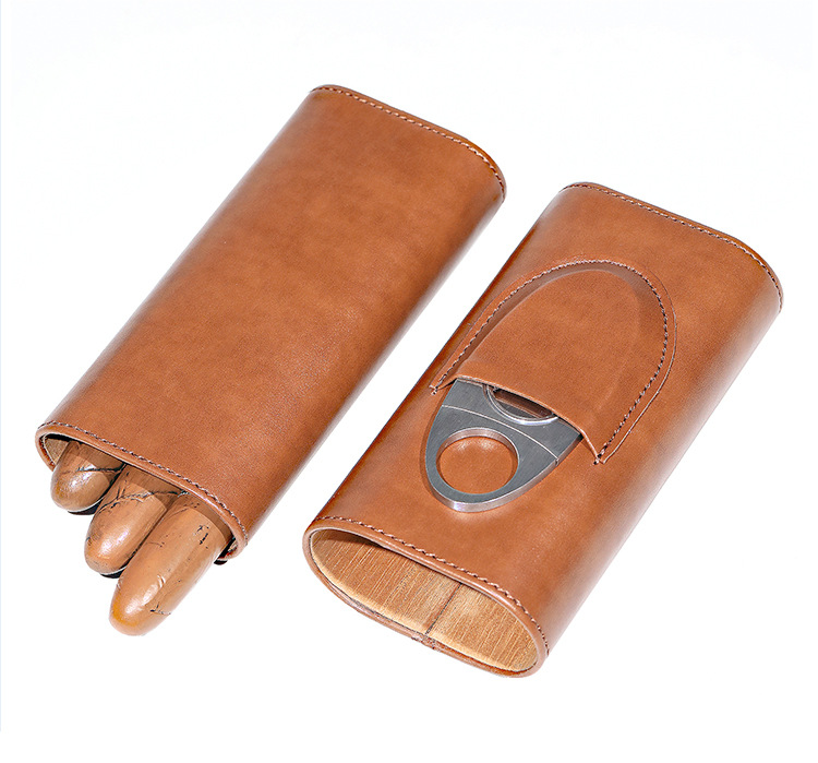 Набор из 3 сигар из искусственной кожи, портативный подарочный оптовый коробка для сигар, увлажняющий 3-пакет, кожаный футляр для сигар из кедрового дерева