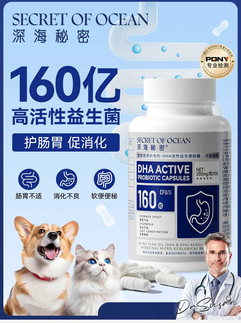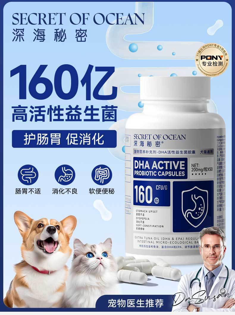 Товары для здоровья домашних животных Deep Sea Secret DHA Активные пробиотические капсулы для собак Маленькие и средние собаки Пищеварительное питание