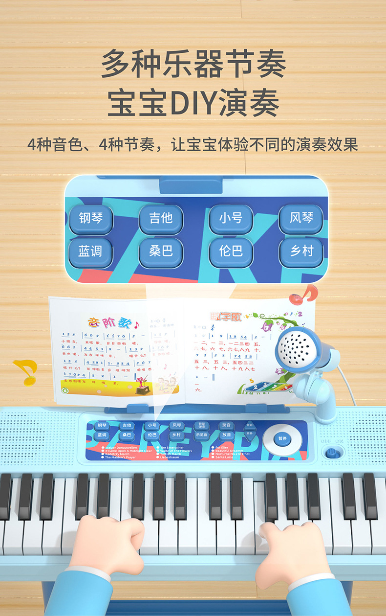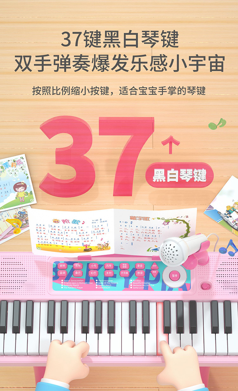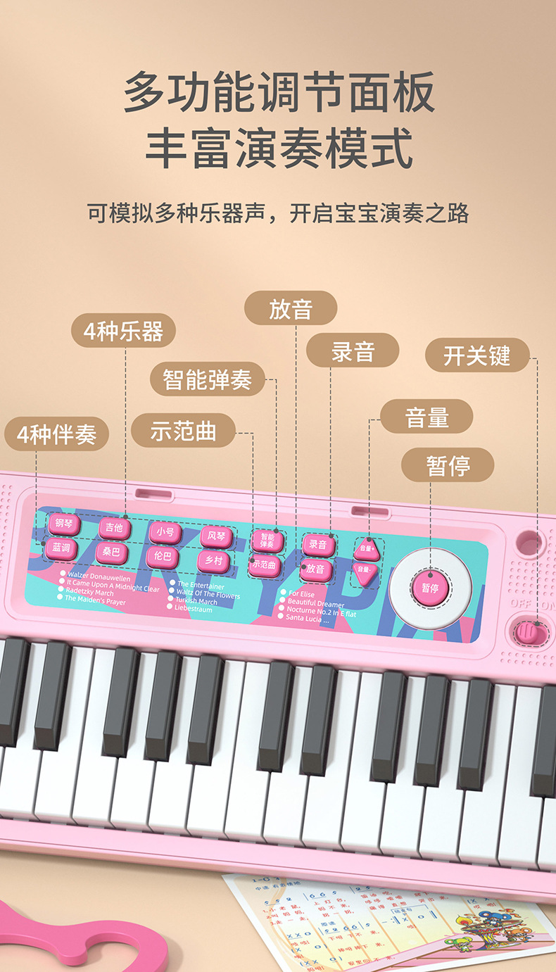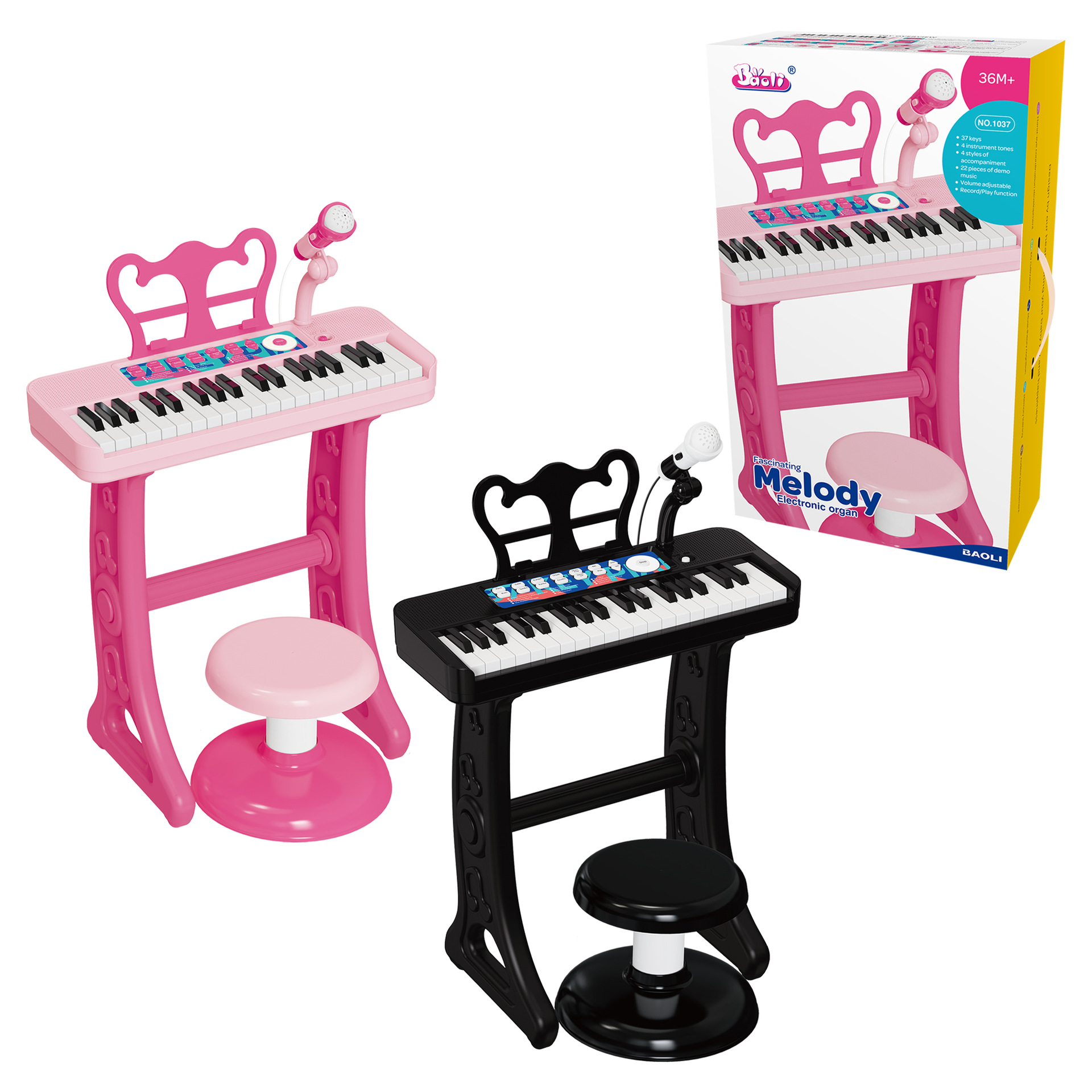 Детская 37-клавишная электронная клавиатура (батарейка в комплекте): синяя.; Детская 37-клавишная электронная клавиатура (батарейка в комплекте): розовая.; Детская 37-клавишная электронная клавиатура без ножек (коробка английского цвета); Детская 37-клавишная электронная клавиатура (цветная коробка на английском языке): розовая.; Детская 37-клавишная электронная клавиатура (цветная коробка на английском языке): черная.