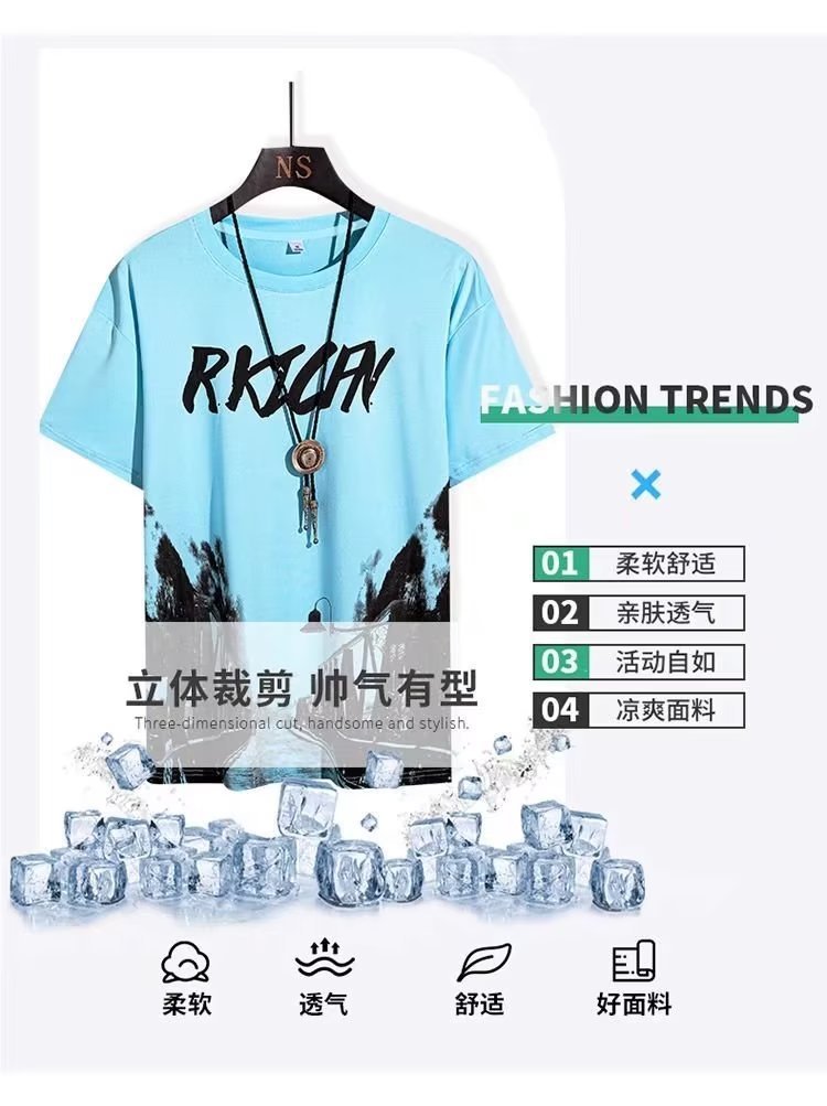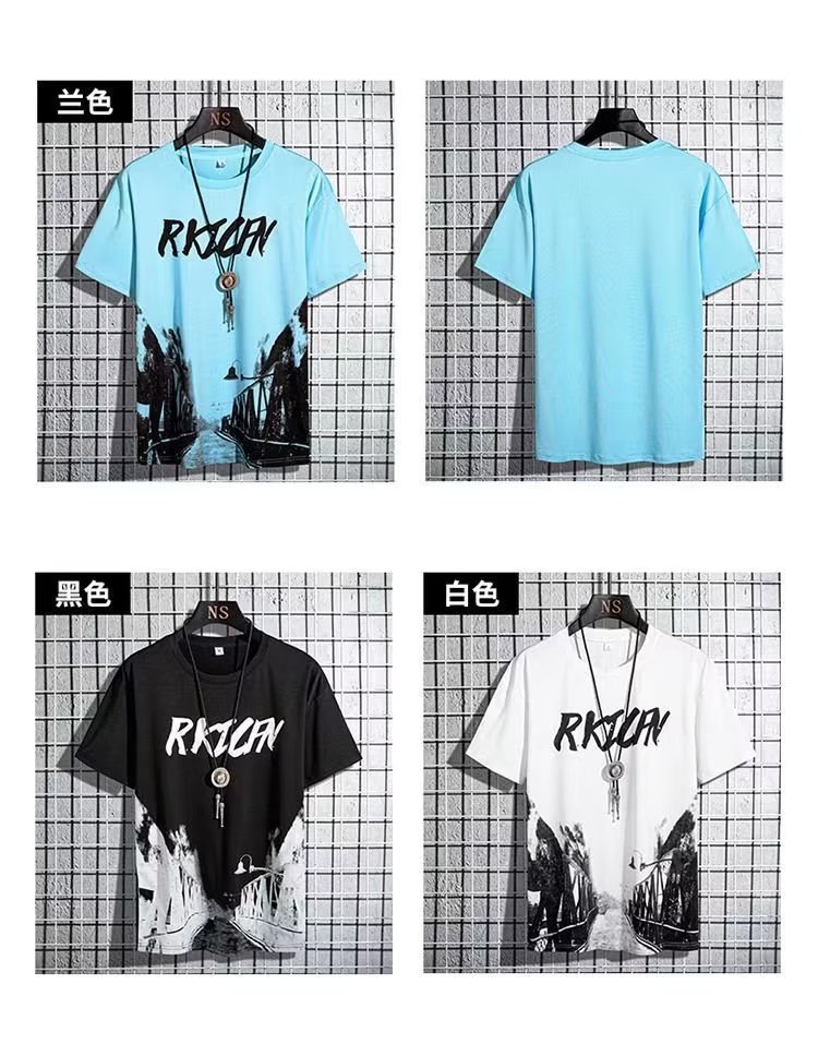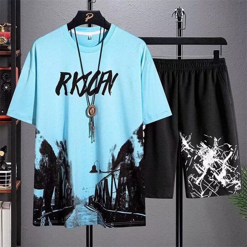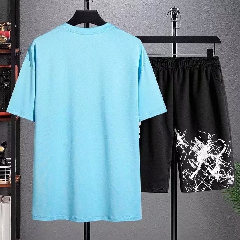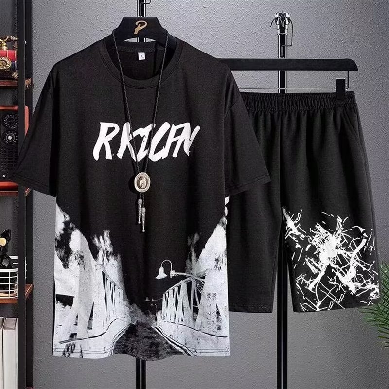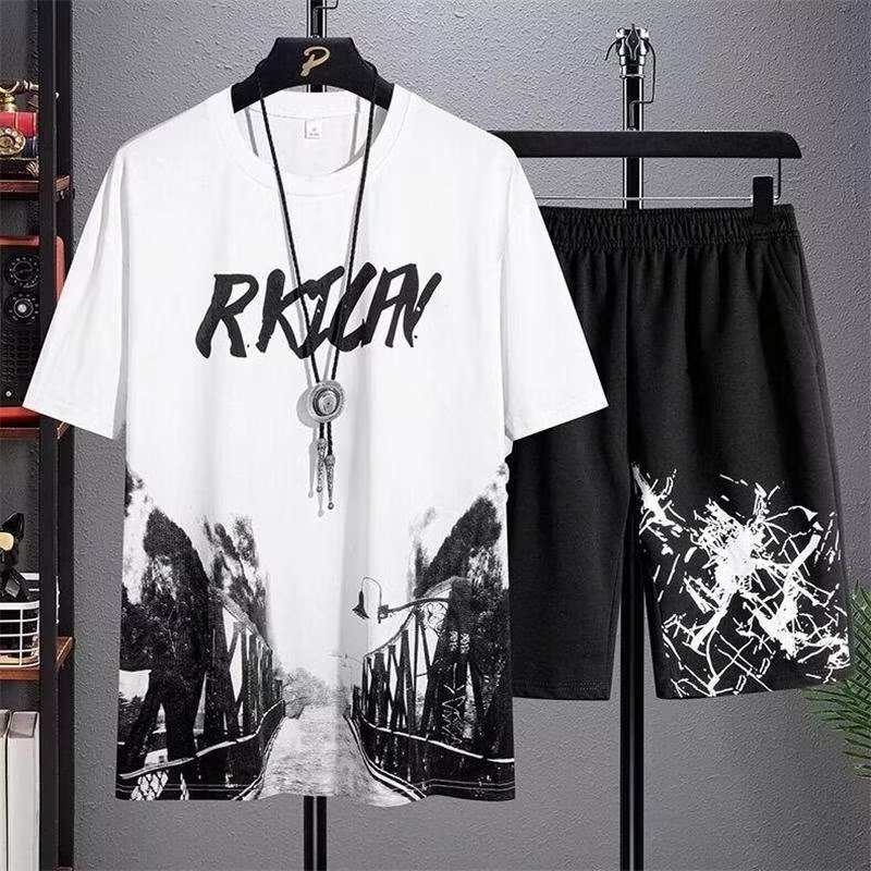 2023 Гонконгский стиль Летний спортивный костюм в Корейском стиле Свободная футболка для мальчиков Простые брюки с короткими рукавами для студентов High-end Sense