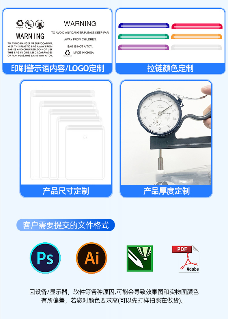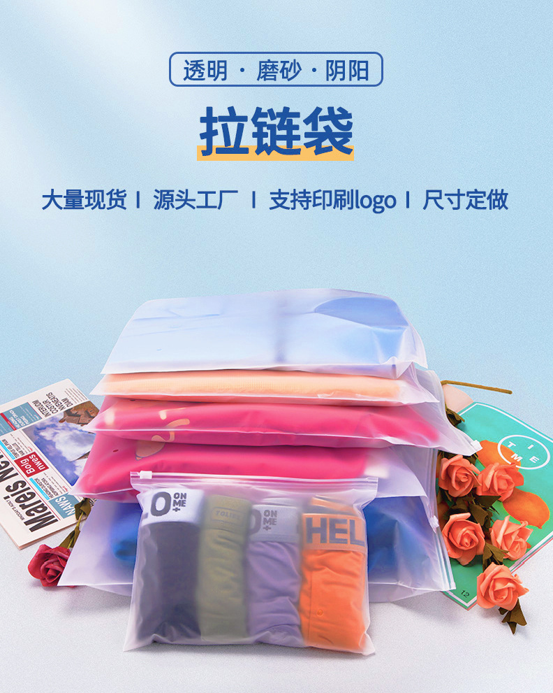磨砂拉链袋定制袜子毛巾打包袋衣服包装袋警示语透明pe服