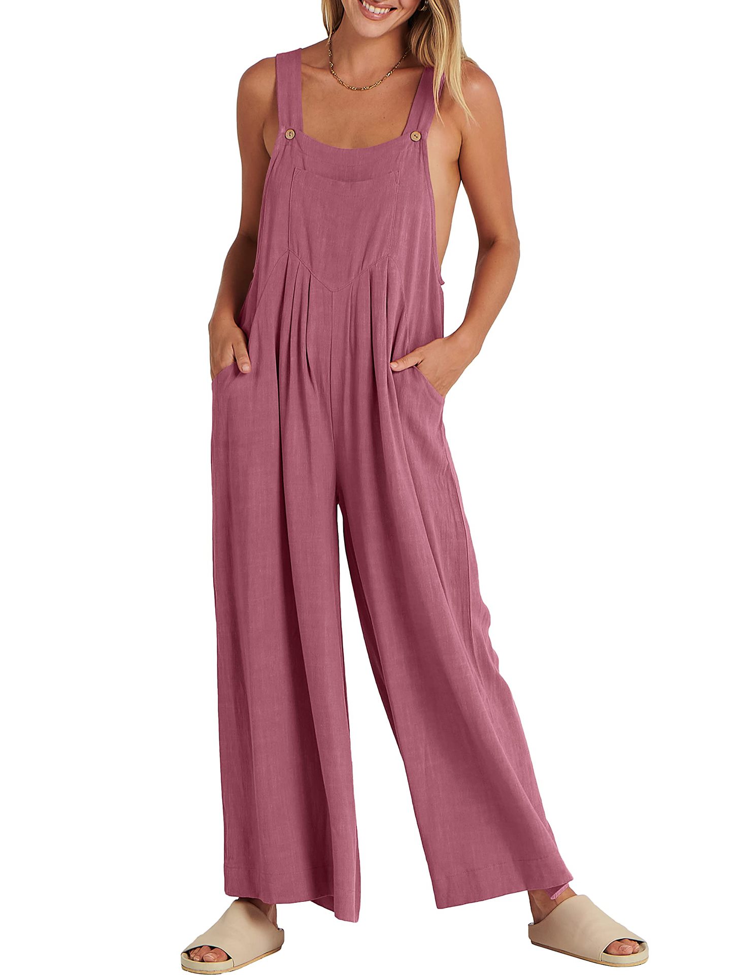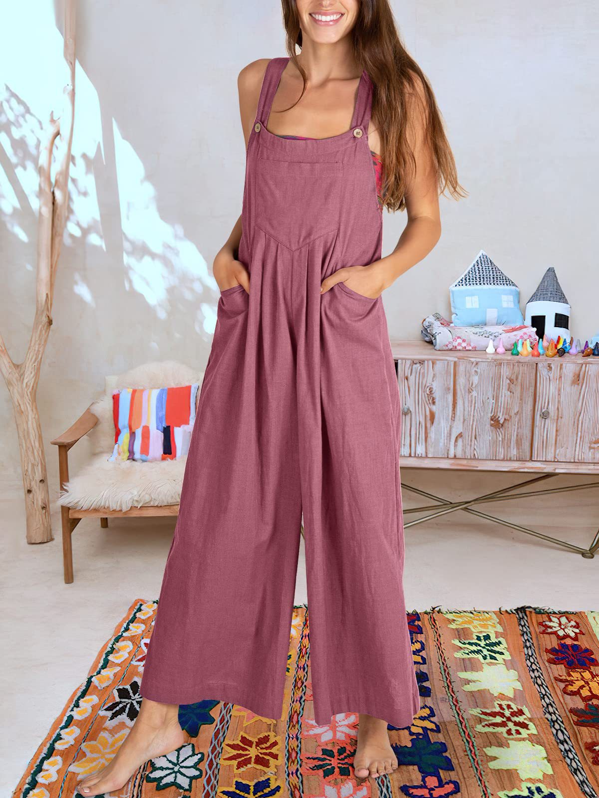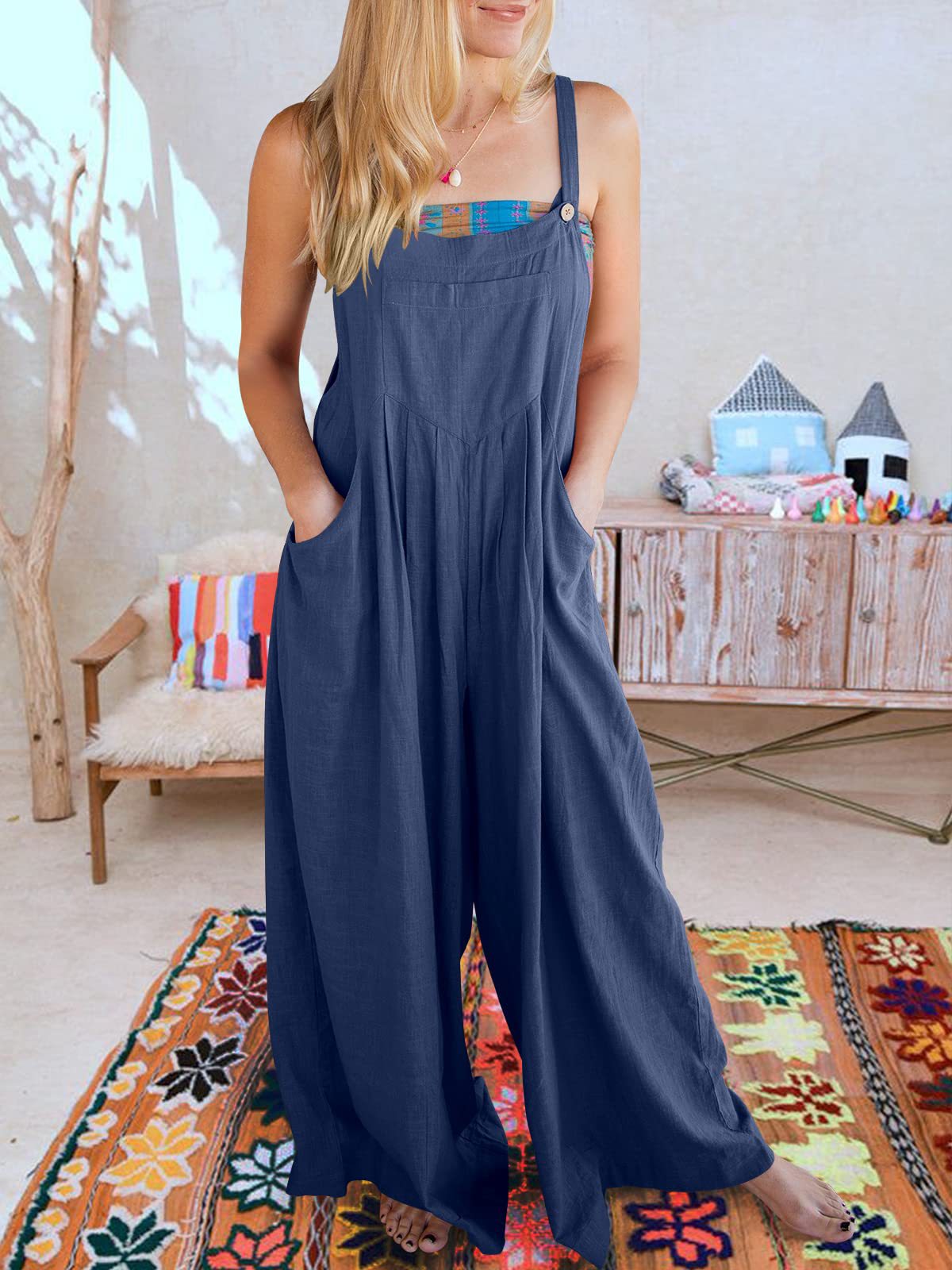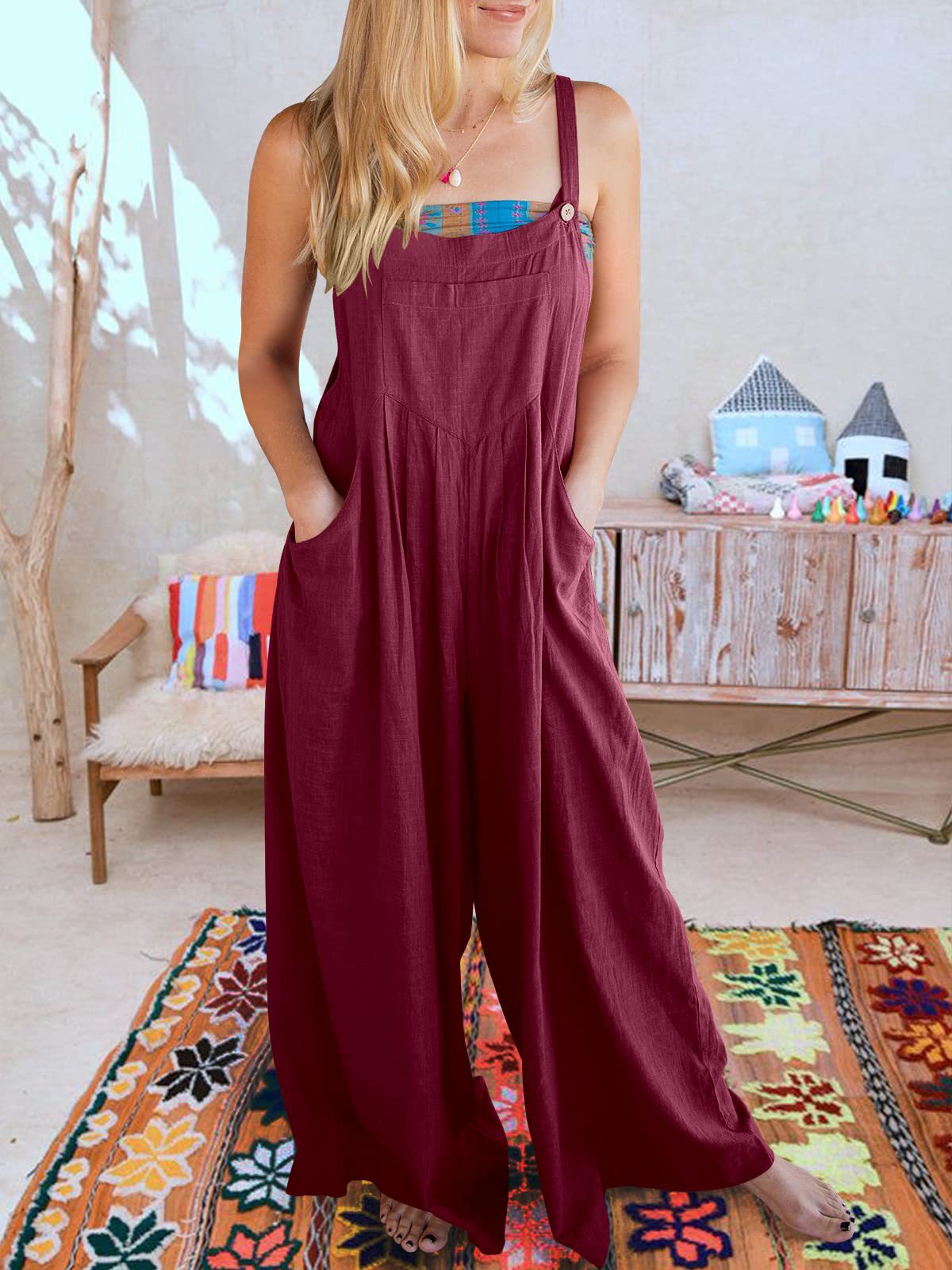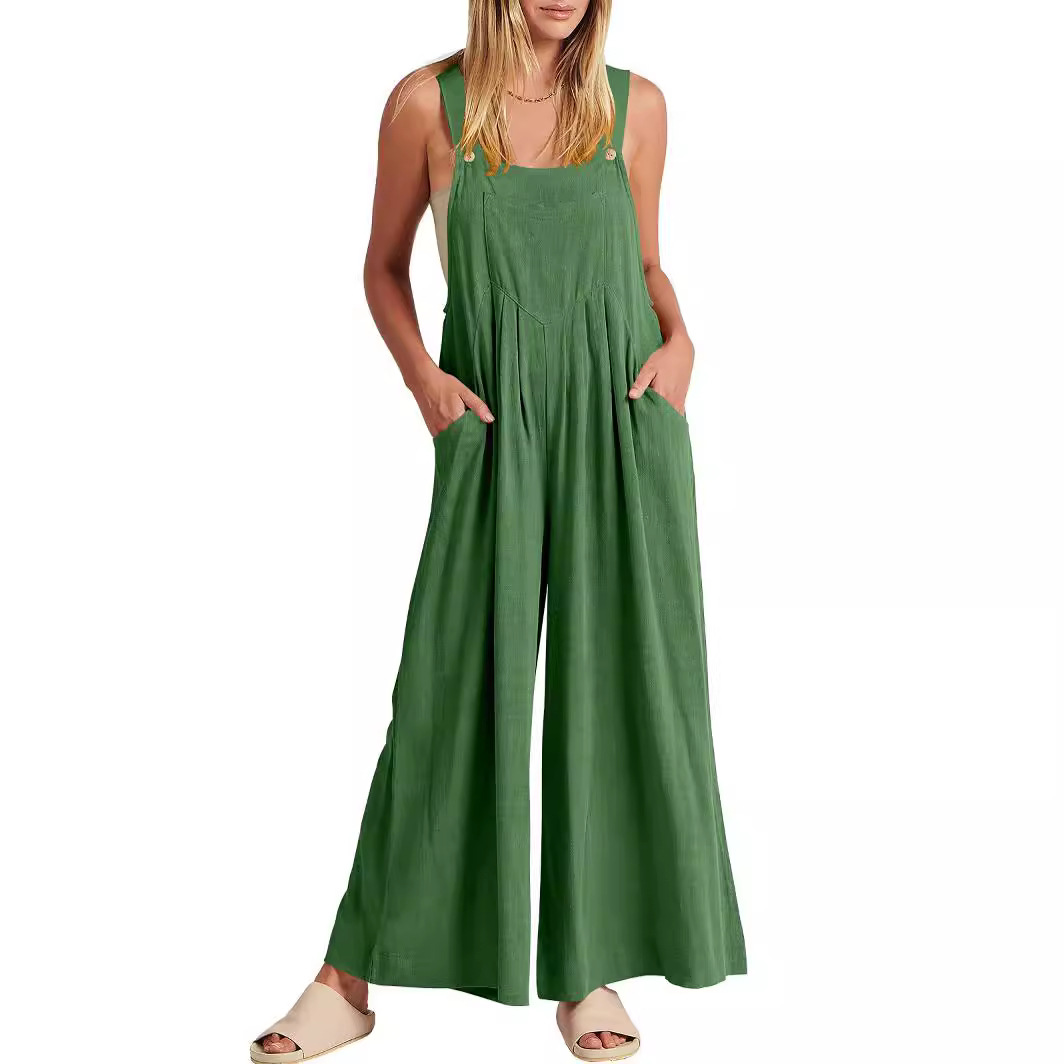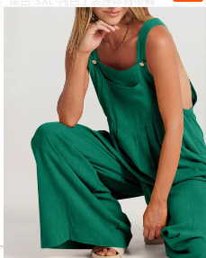 Трансграничная популярная независимая станция Amazon, европейские и американские Женские однотонные Свободные повседневные Комбинезоны из хлопка и льна на с подтяжками, трансграничные