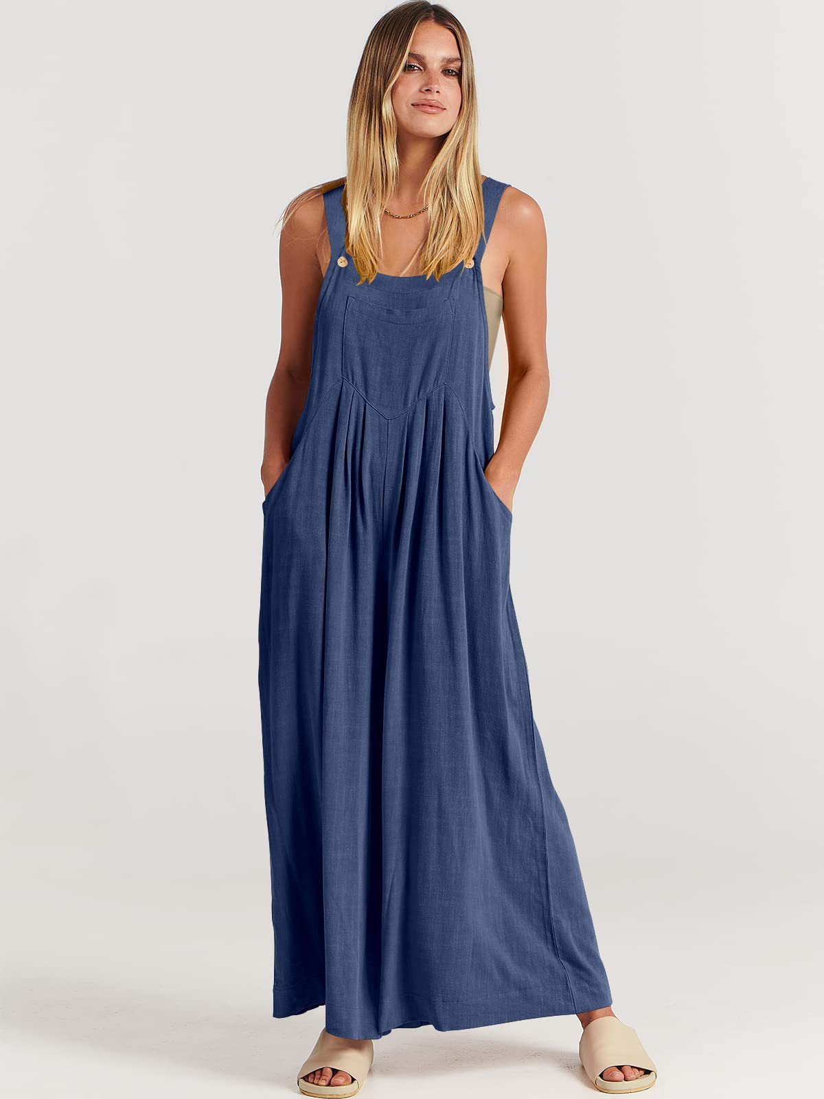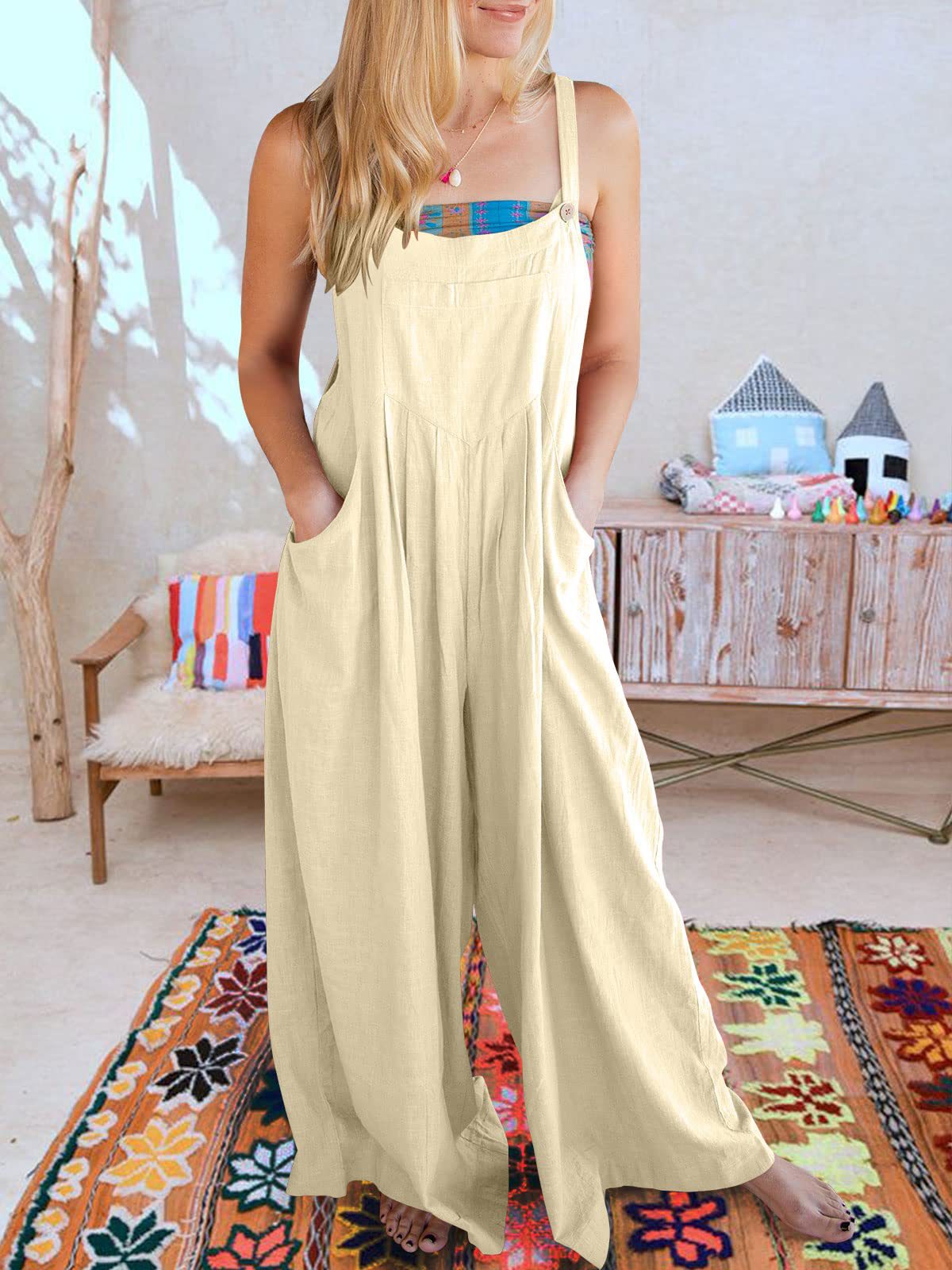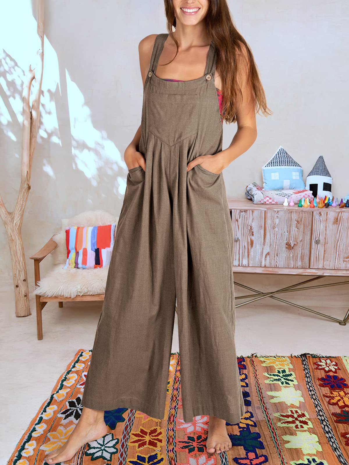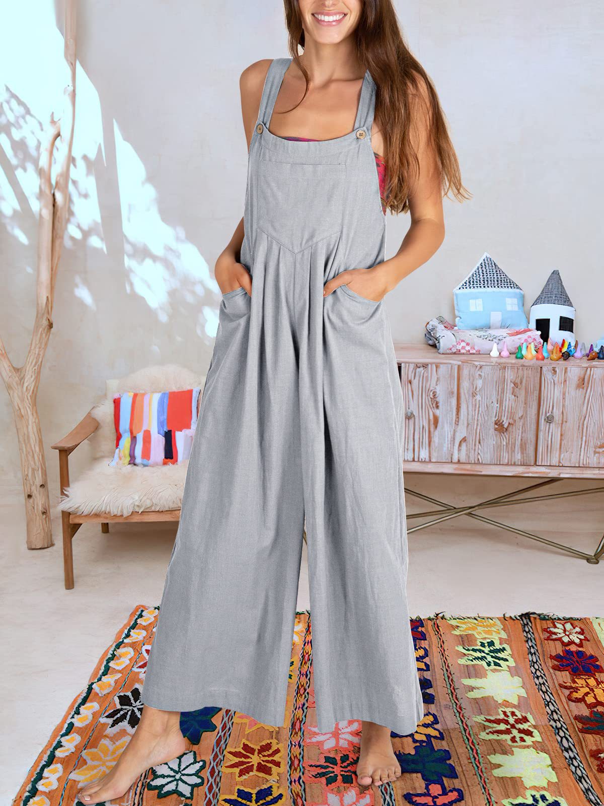 Трансграничная популярная независимая станция Amazon, европейские и американские Женские однотонные Свободные повседневные Комбинезоны из хлопка и льна на с подтяжками, трансграничные