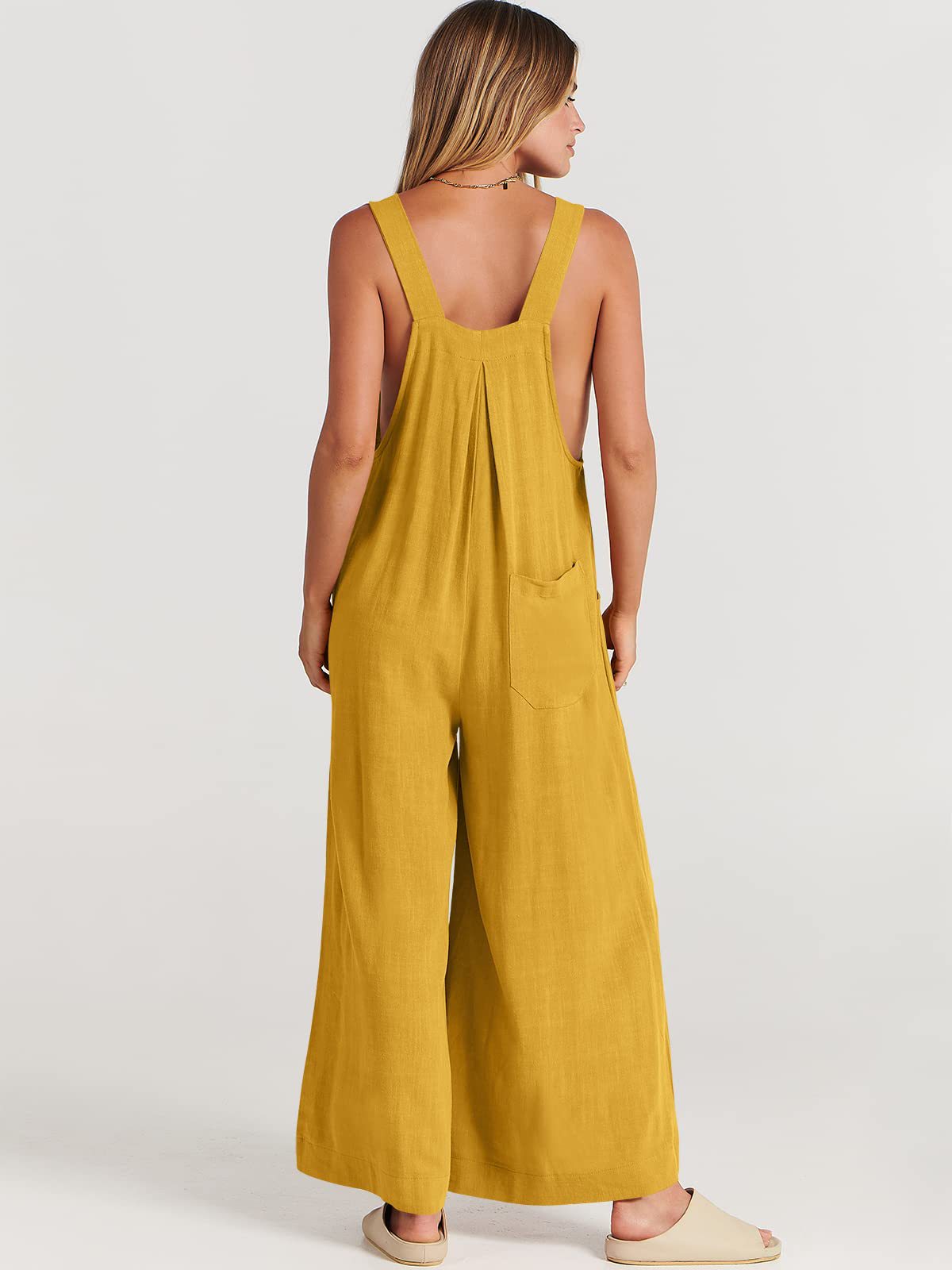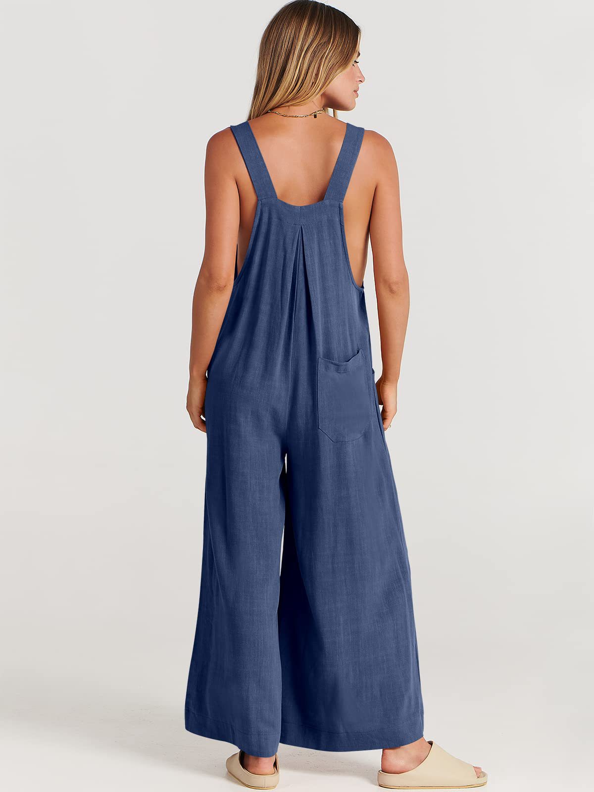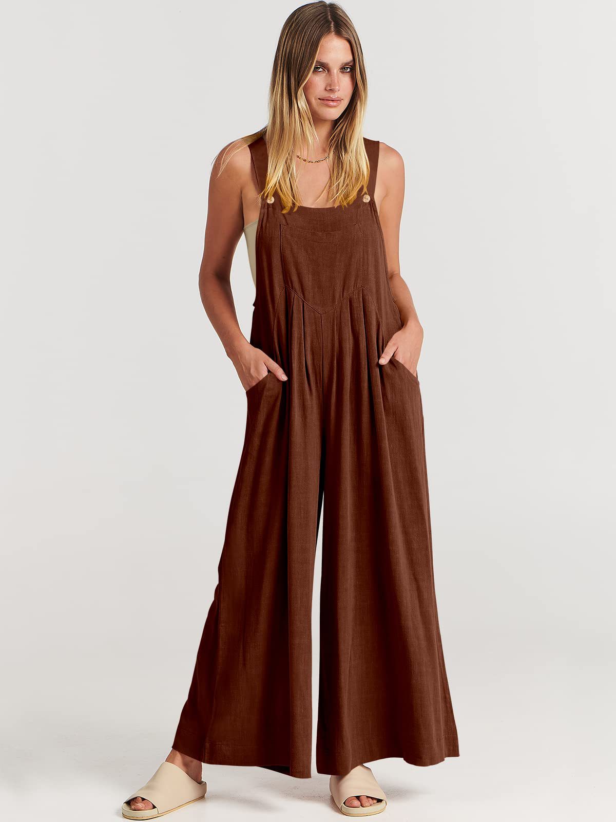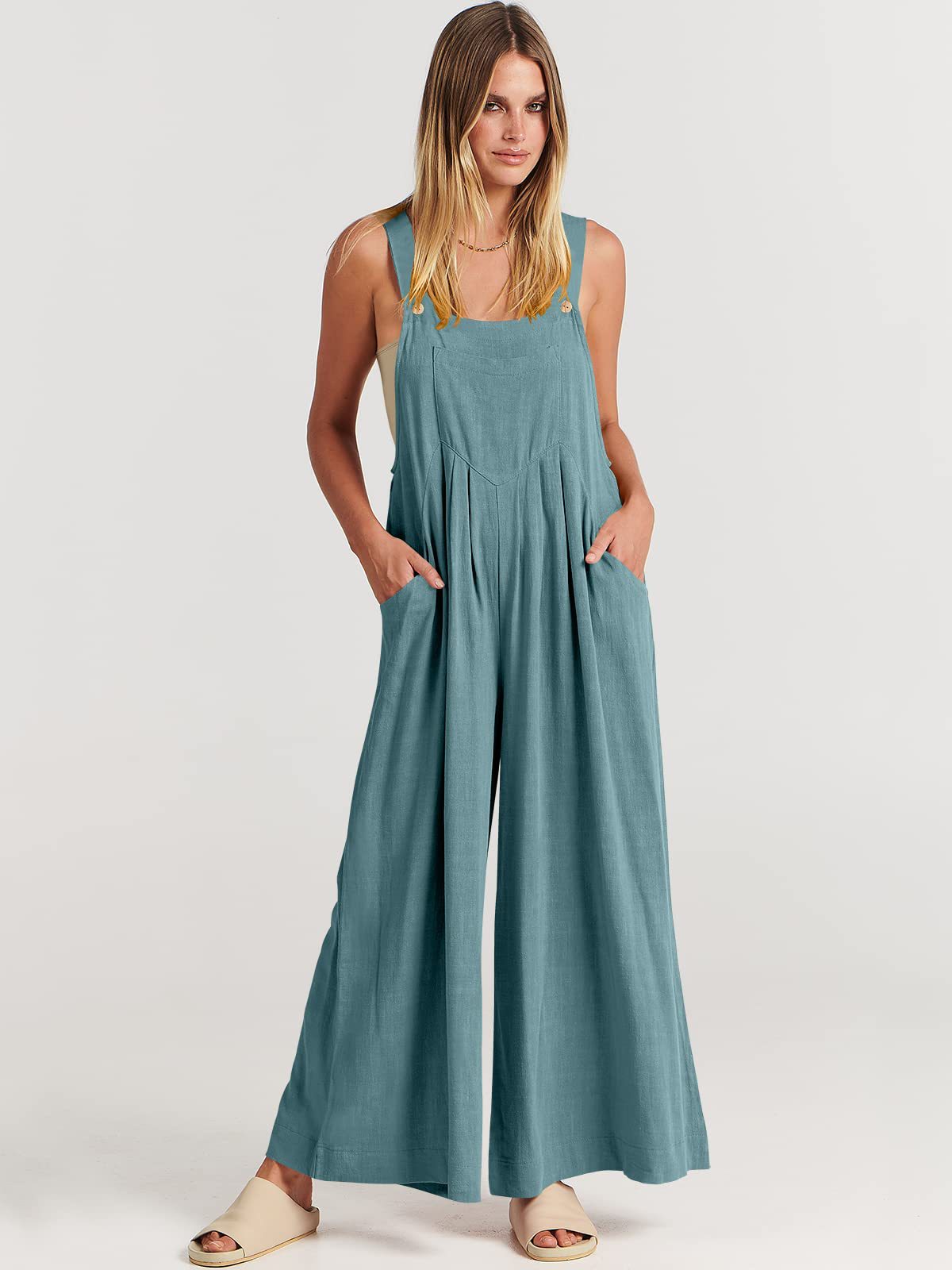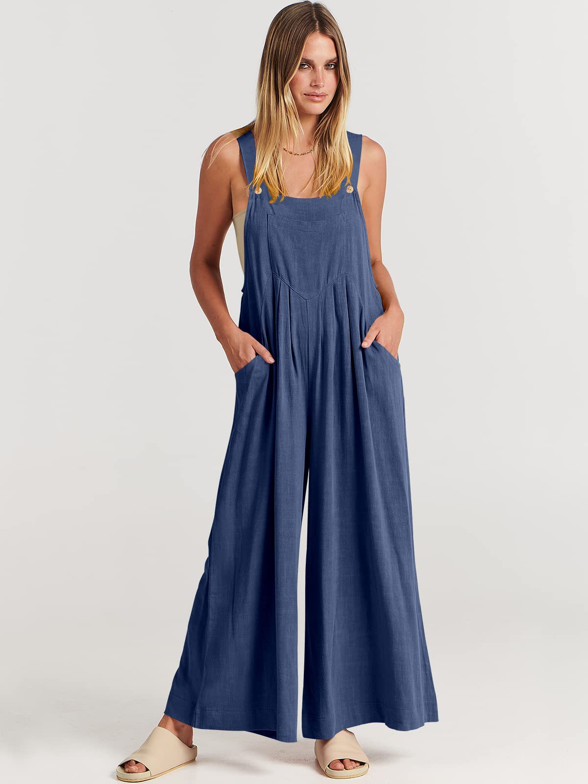 Трансграничная популярная независимая станция Amazon, европейские и американские Женские однотонные Свободные повседневные Комбинезоны из хлопка и льна на с подтяжками, трансграничные
