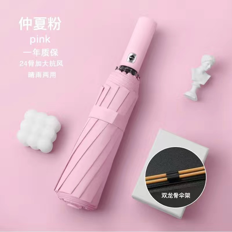 24 Кость Автоматический Солнечный Зонт Двойной Зонт Кости Дракона Черный Резиновый Солнечный и дождливый двойного назначения увеличенная Ультрафиолетовая Защита Три Складной Рекламный Зонт