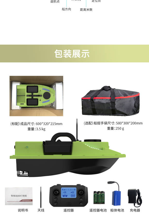 注:船包跟备用电池选配的,需要另外购买!!!