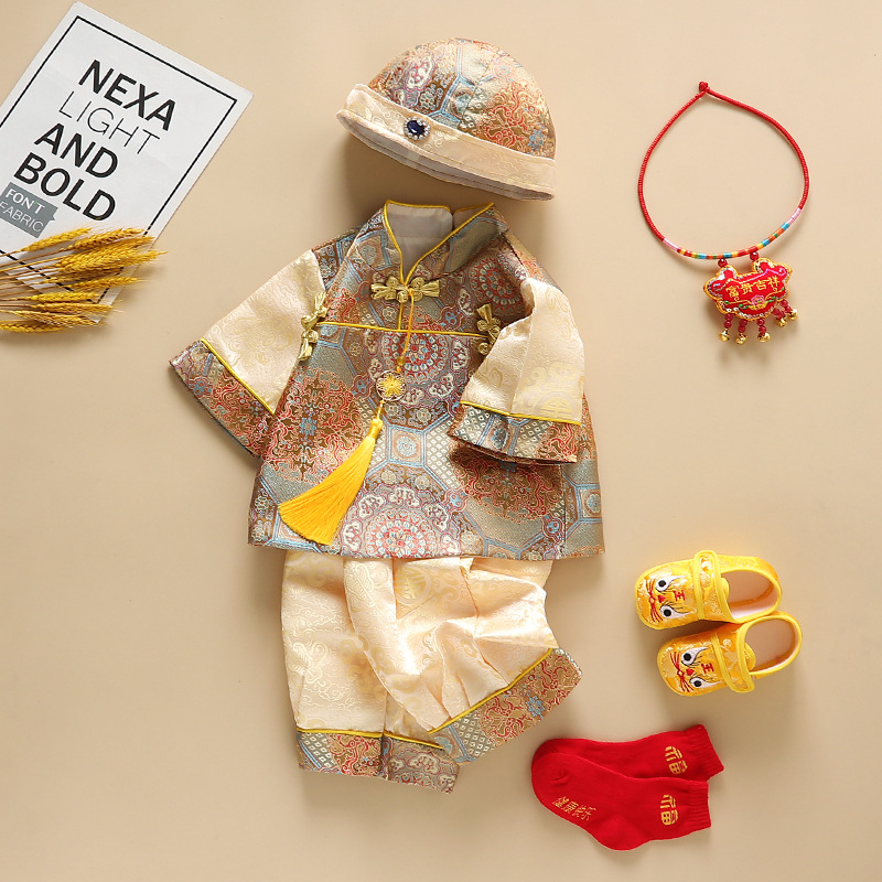25 весенне-осенних новых платьев для мальчиков на годик, китайский костюм Тан, платье с короной, оптом
