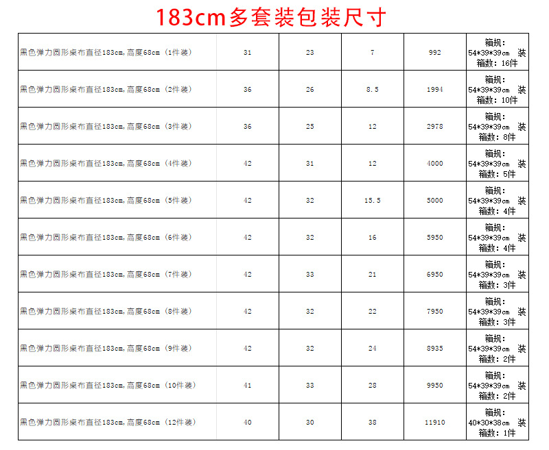 Круг диаметром 122 см (без сращивания на столе); Круг диаметром 152 см (без сращивания на столе); Круг диаметром 183 см (без сращивания на столе)