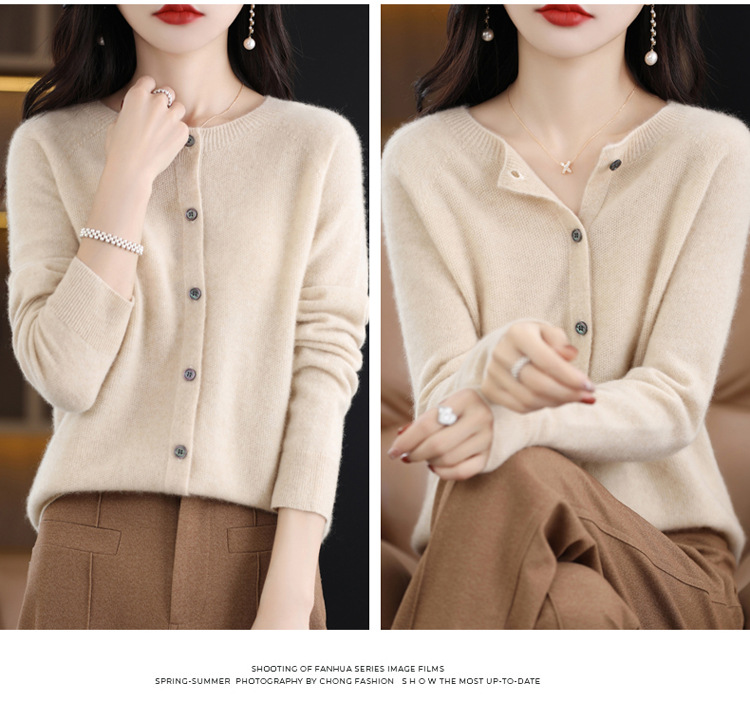 15 цветов Новый женский шерстяной кардиган с круглым вырезом и иглой из османтуса Готовая мягкая куртка 2023 Осенне-зимняя верхняя одежда