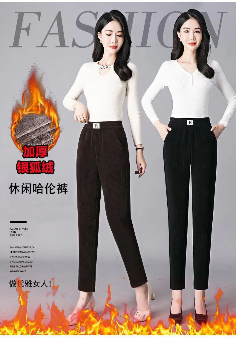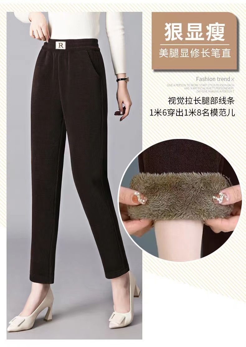 Утолщенные брюки из синели на флисовой подкладке, женские зимние кашемировые Свободные брюки больших размеров с высокой талией для мам, прямые повседневные брюки