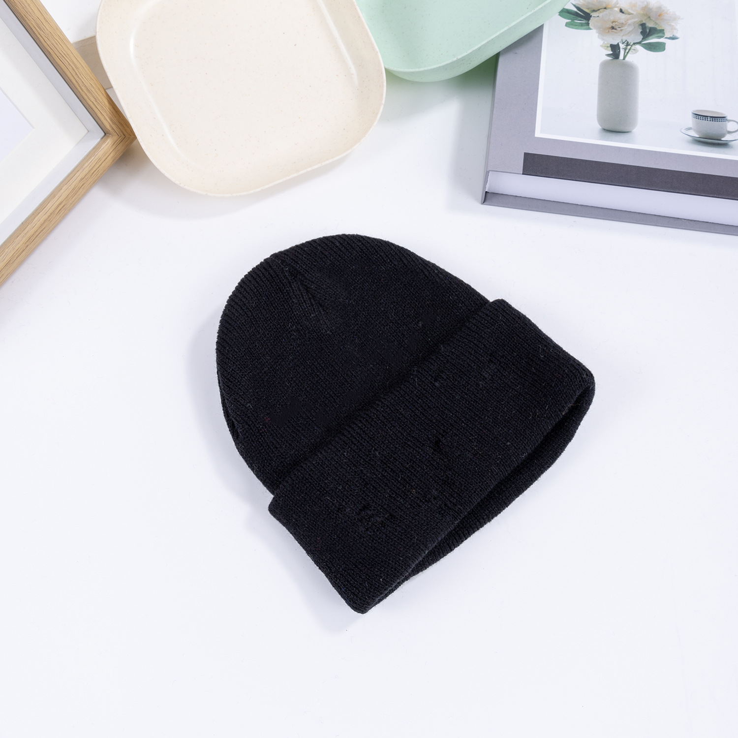 Amazon черная светлая вязаная шапка с пластиной Мужская и женская шапка для внешней торговли пустая холодная шапка флуоресцентная цветная шерстяная шапка