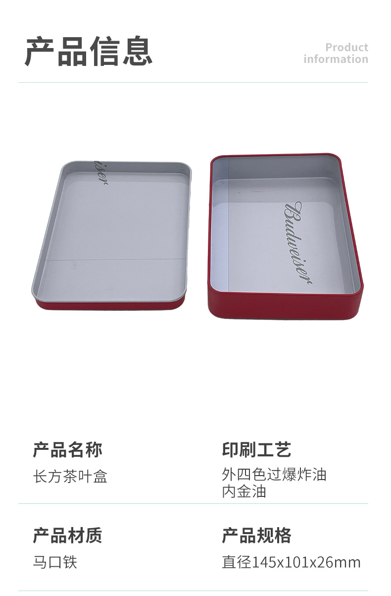 Прямоугольная жестяная коробка для чая с откидной крышкой, герметичная подарочная упаковка, металлическая коробка оптом, герметичная и влагонепроницаемая.