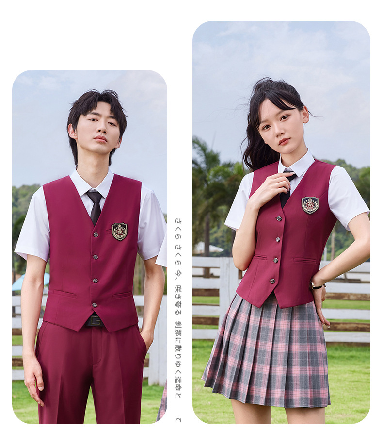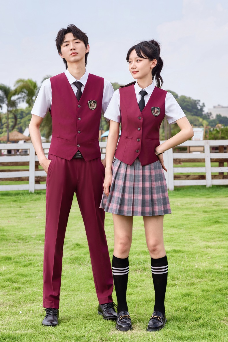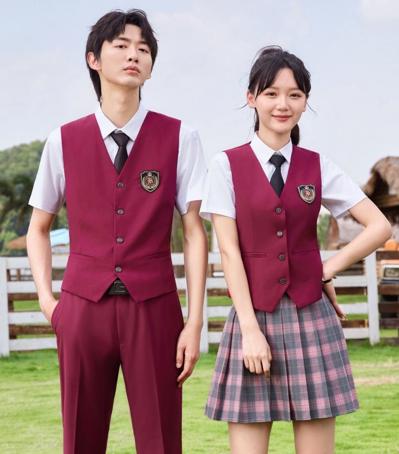 Мужчины-Королевский Синий Жилет; Дамы-Королевский Синий Жилет; Мужчины-темно-синий жилет; Дамы-темно-синий жилет; Мужчины-черный жилет; Дамы-черный жилет; Мужчины-Серый Жилет; Дамы-серый жилет; Мужская-бордовый жилет; Женский винно-красный жилет; Мужские брюки-сапфир синие; Мужские-Темно-синие брюки; Мужские-Черные Брюки; Мужские брюки-бордовый; Мужские-Серые брюки; Женщины-Красная плиссированная юбка; Женщины-серая плиссированная юбка; Женщины-Синяя плиссированная юбка; Женская белая рубашка с короткими рукавами; Мужская белая рубашка с короткими рукавами
