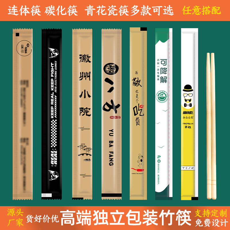 Одноразовые палочки для еды для коммерческого использования, на вынос, соединенные двойные углеродизированные палочки, упаковка для ресторанов быстрого питания, двойной дизайн из крафт-бумаги.