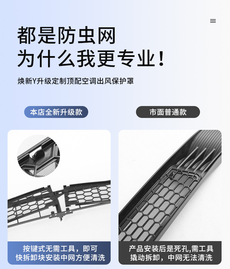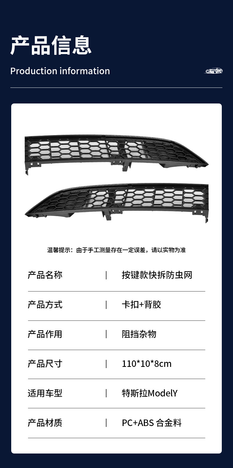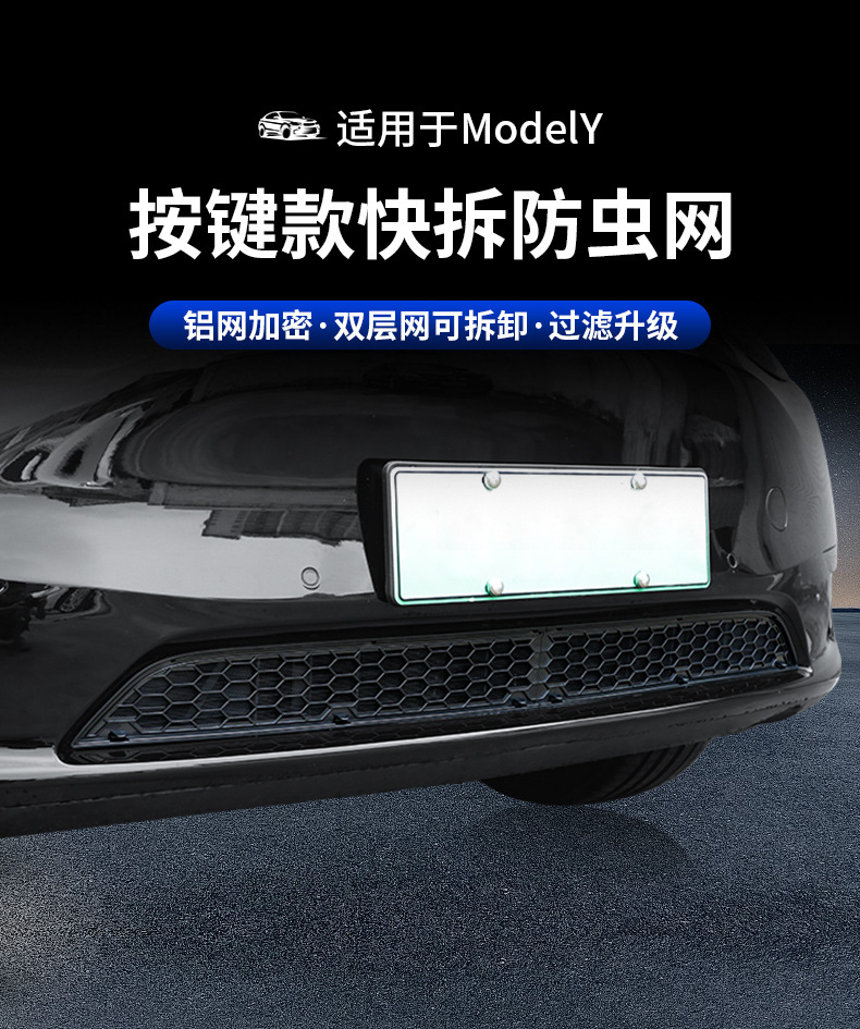 Подходит для новой Tesla Model Y: сетка от насекомых, быстросъемная кнопка, импортная ветрозащитная сетка, аксессуары с водонепроницаемой полосой.