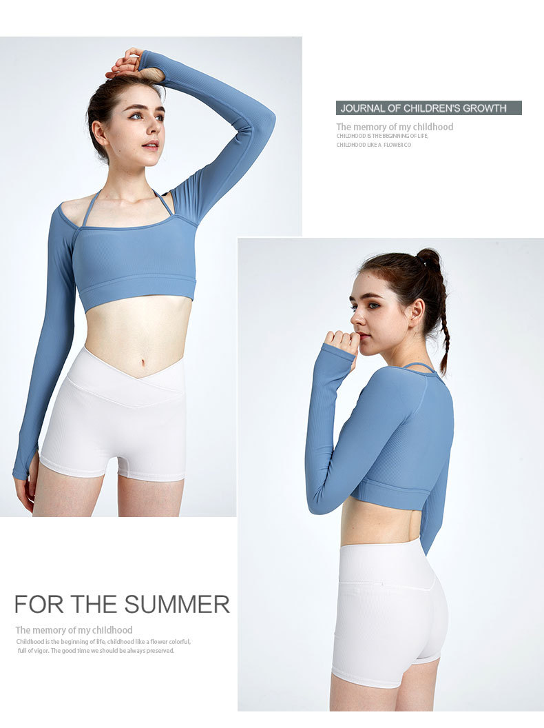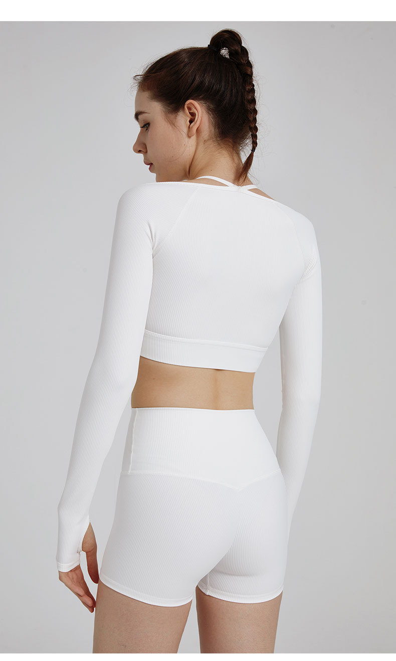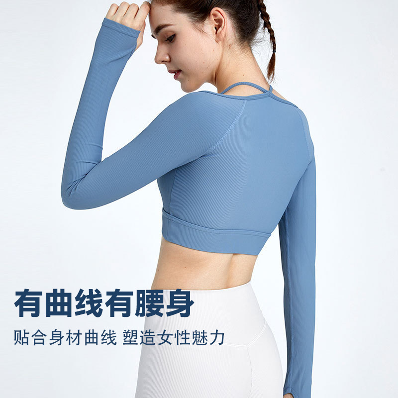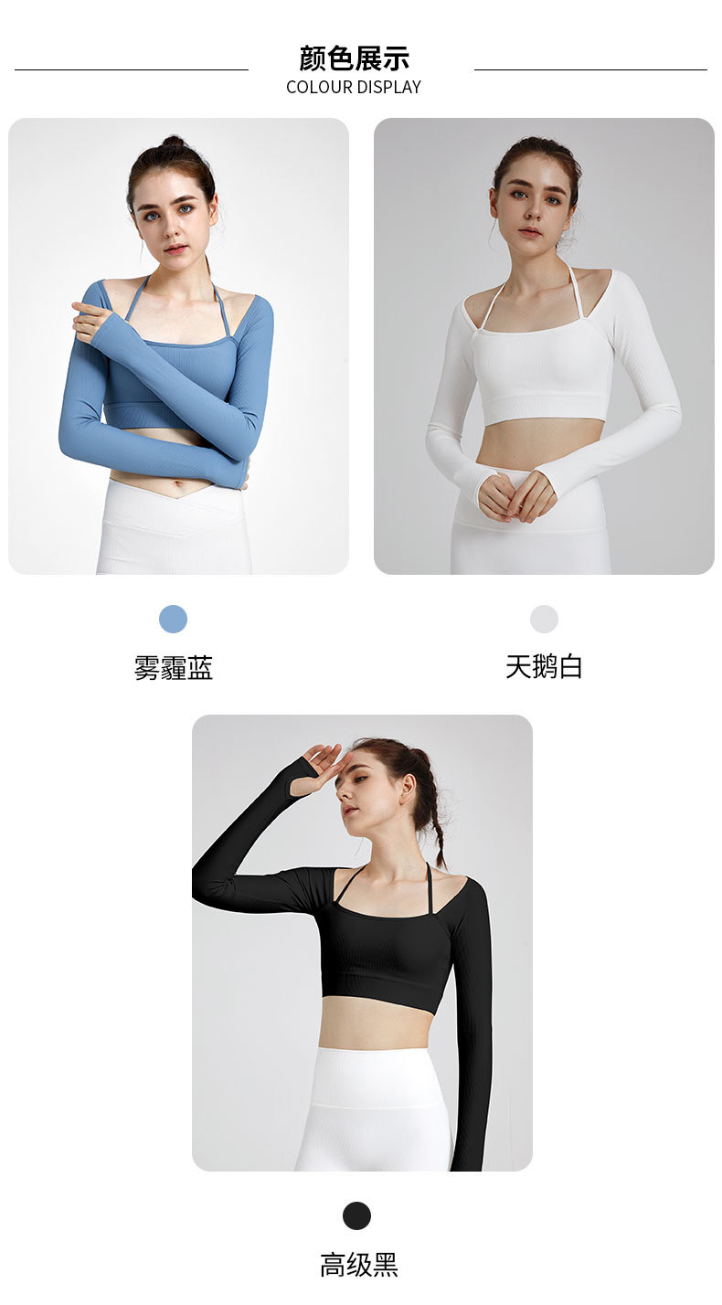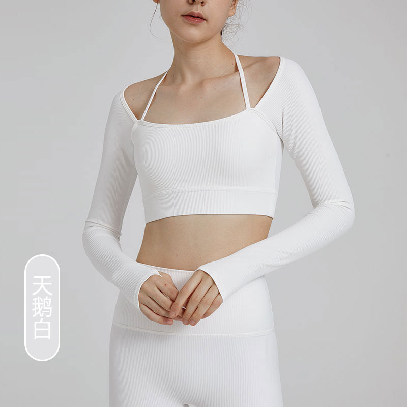 Популярный в Европе и Америке женский спортивный топ в рубчик с вырезом халтер, с подкладками для груди, быстросохнущая одежда для фитнеса, облегающий, приталенный топ для йоги с длинными рукавами