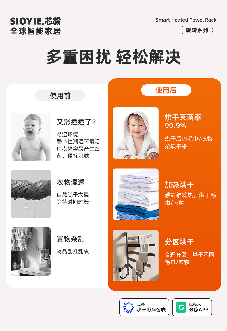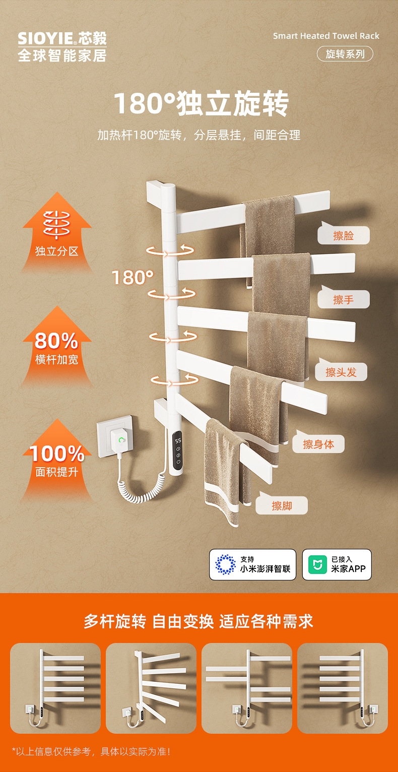 Вращающаяся электрическая вешалка для полотенец Бытовая ванная комната Кухня Туалет Интеллектуальная полка с электрическим подогревом с постоянной температурой
