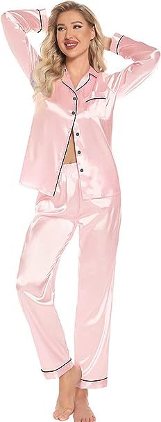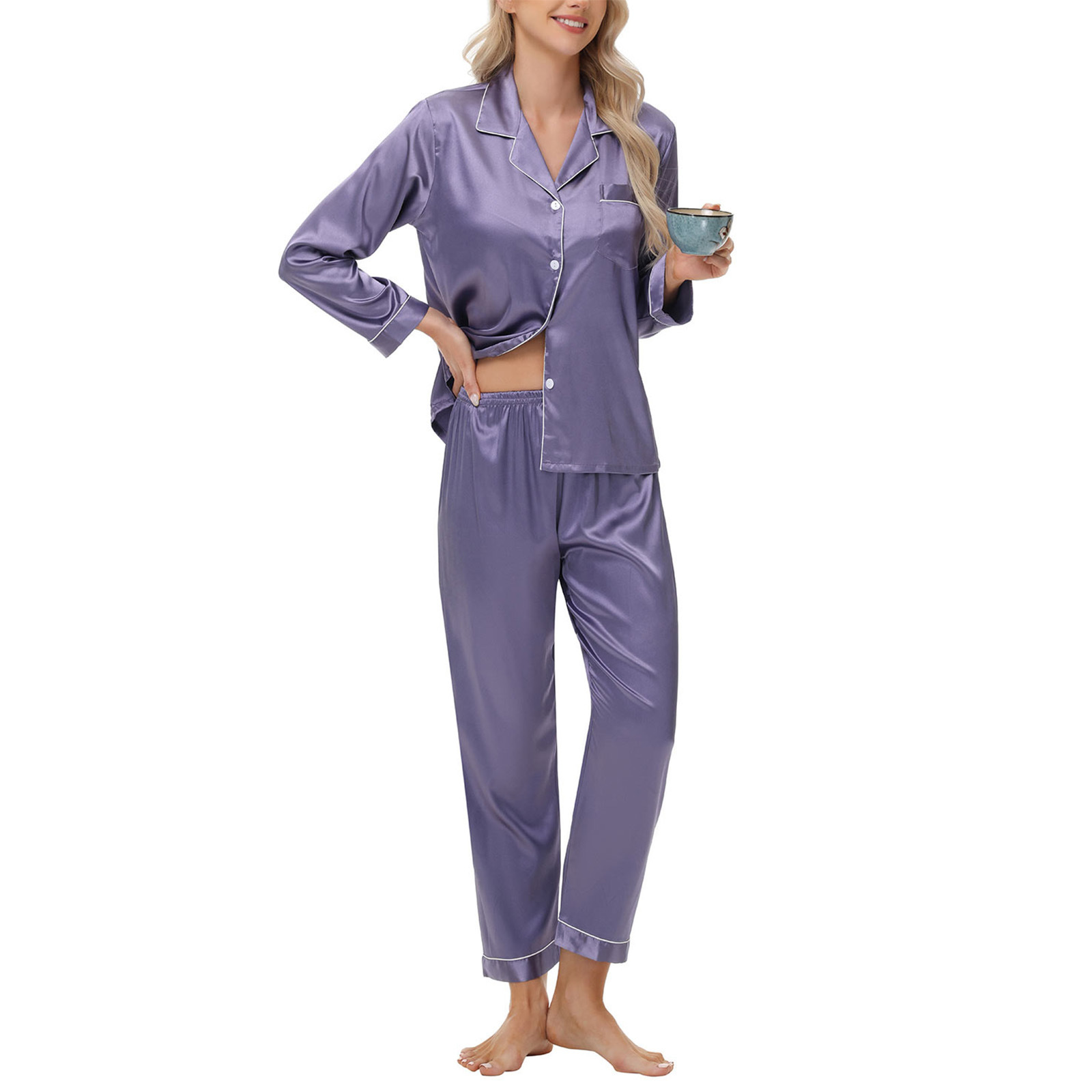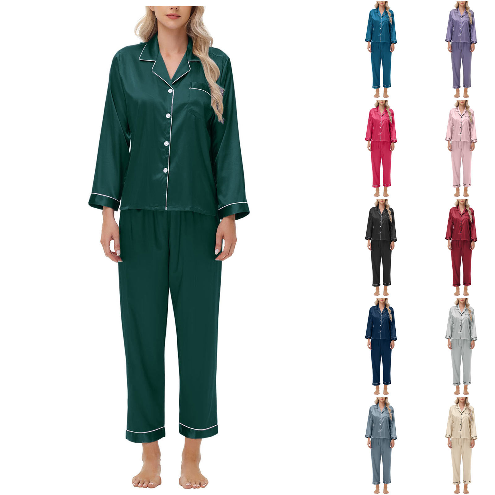 Трансграничная электронная коммерция из кожи креветок Amazon AliExpress пижамы из ледяного шелка, женские атласные пижамы с длинными рукавами, большие размеры, домашняя одежда