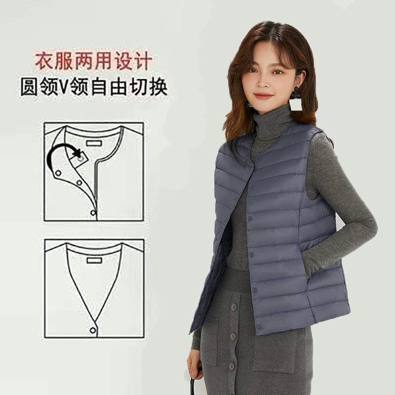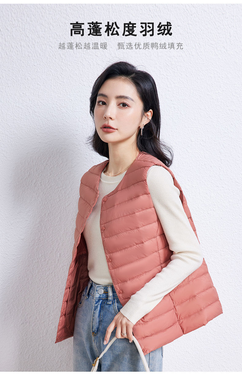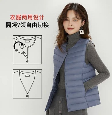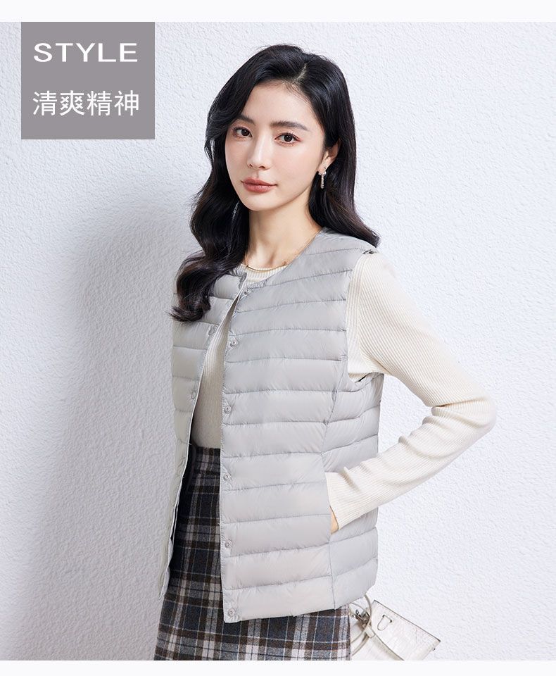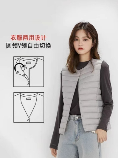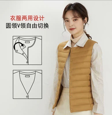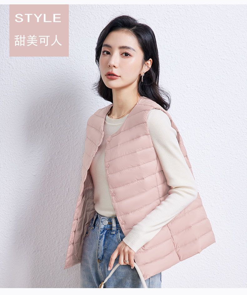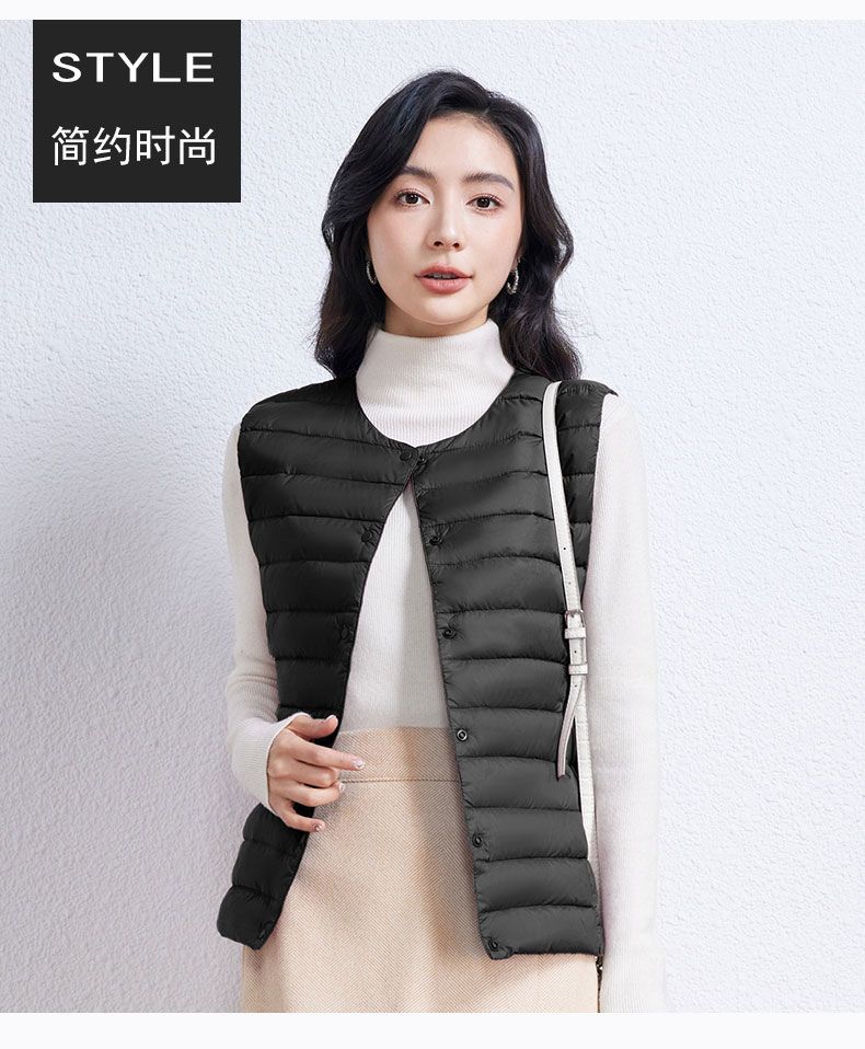 Осенний и зимний новый тонкий пуховик женский жилет с коротким круглым вырезом