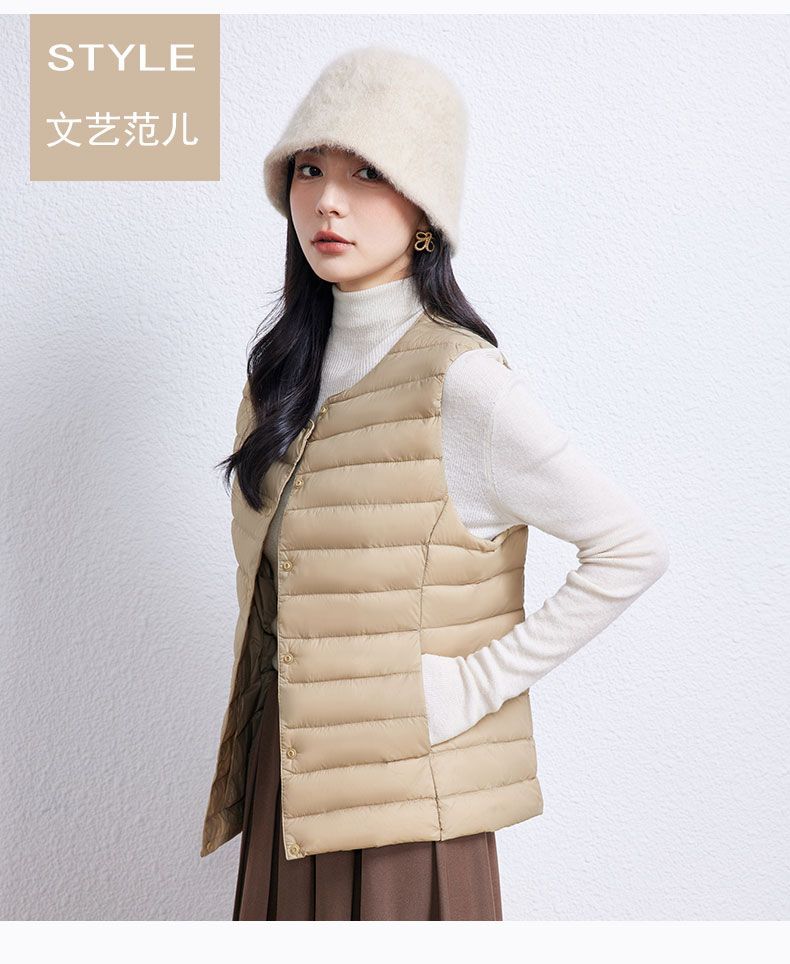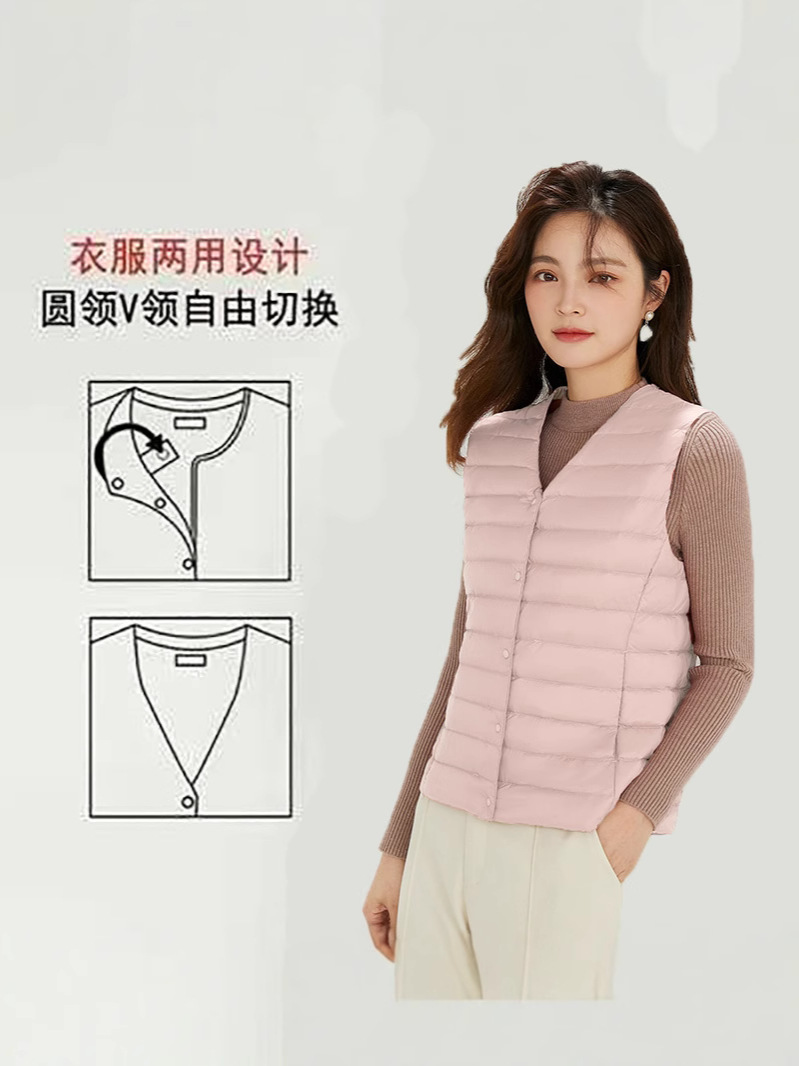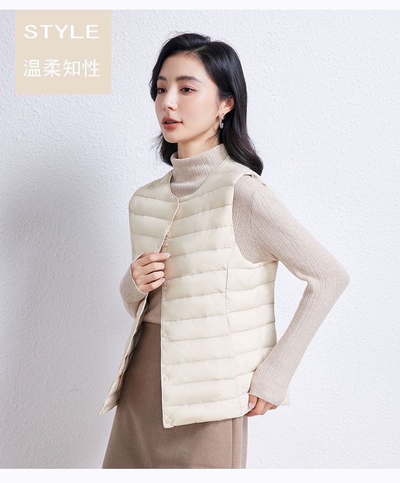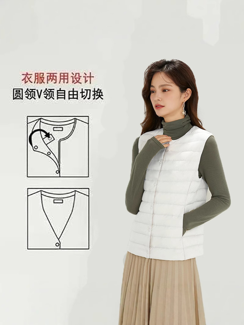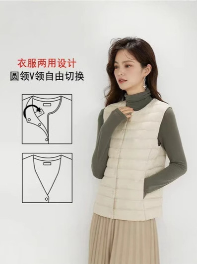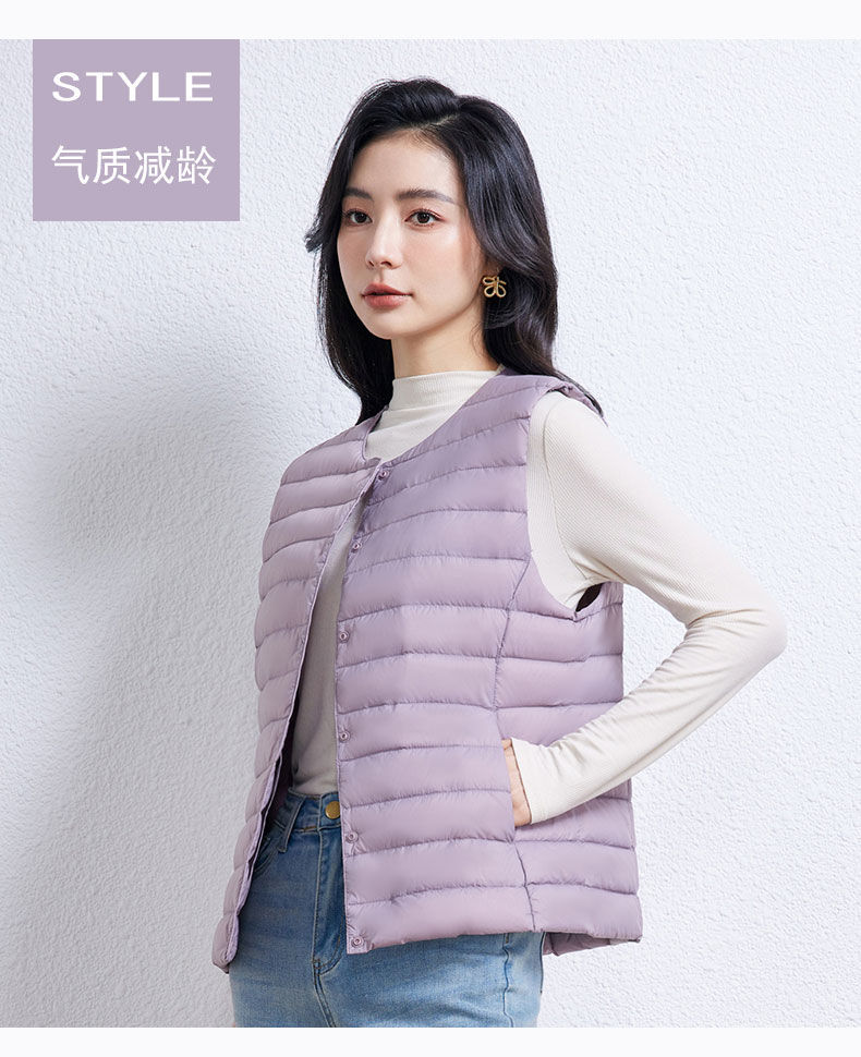Осенний и зимний новый тонкий пуховик женский жилет с коротким круглым вырезом