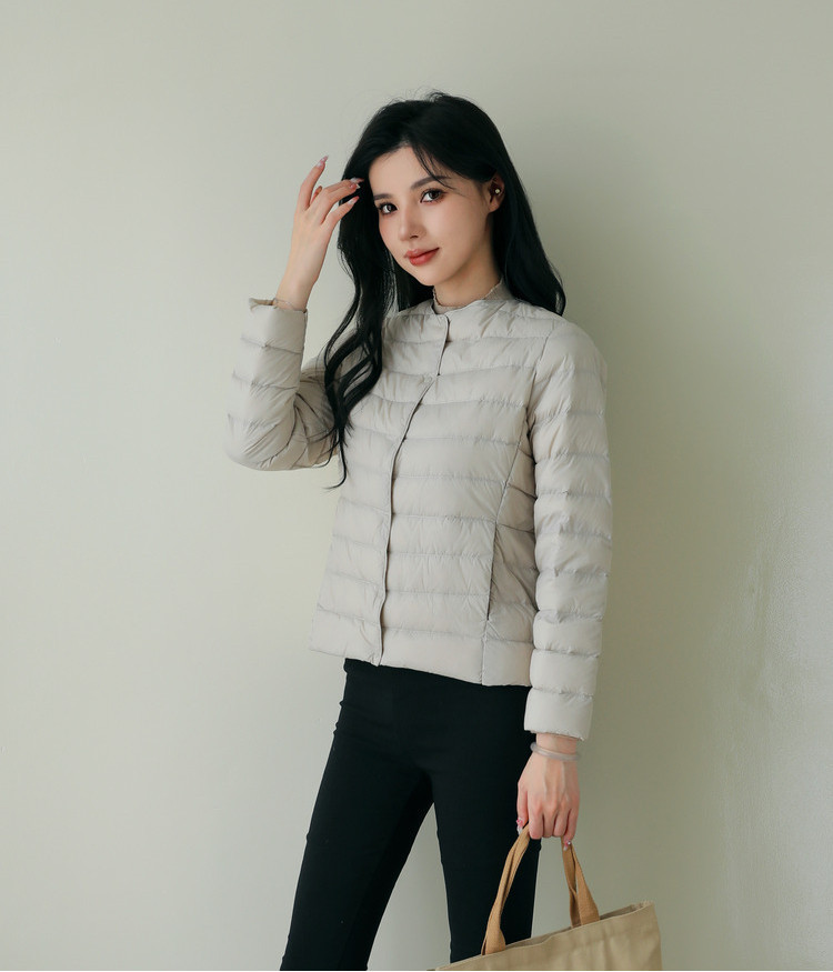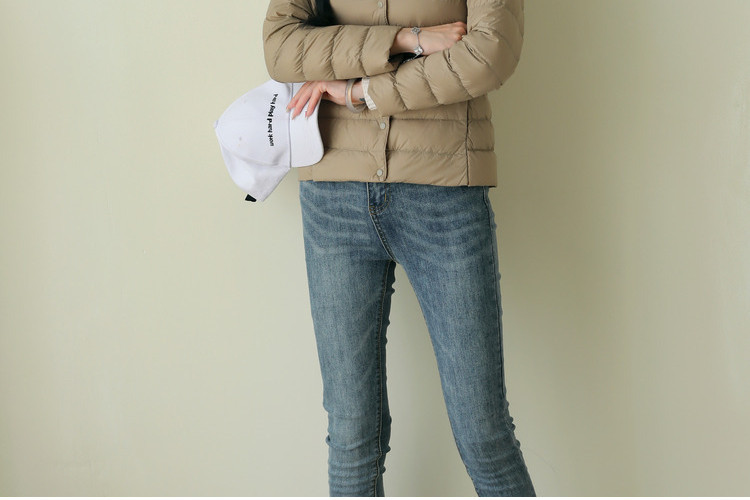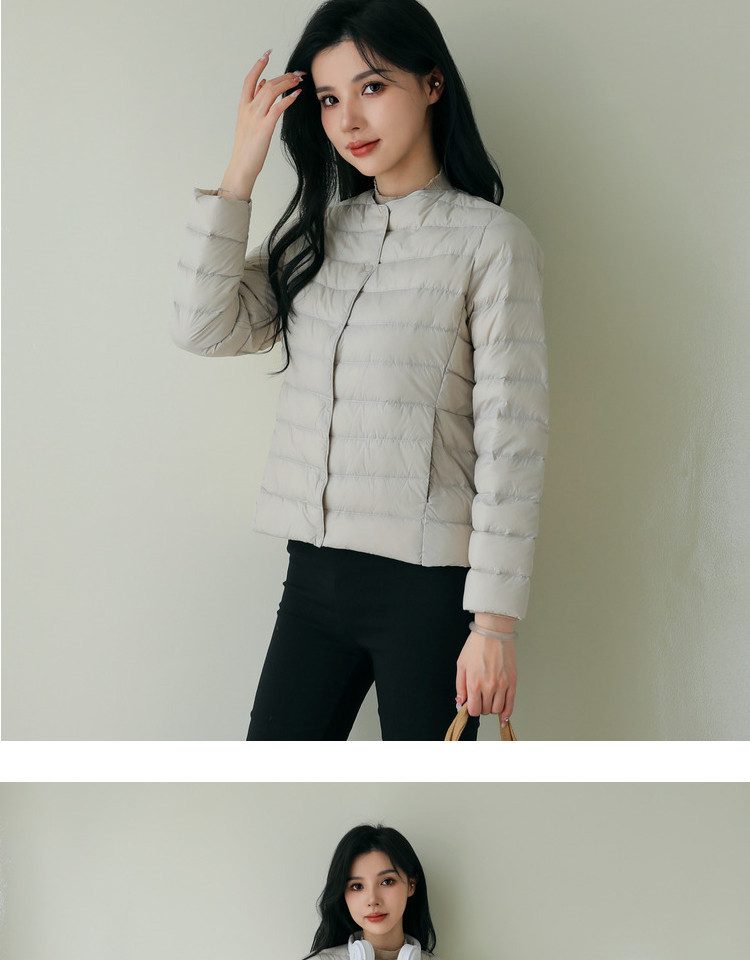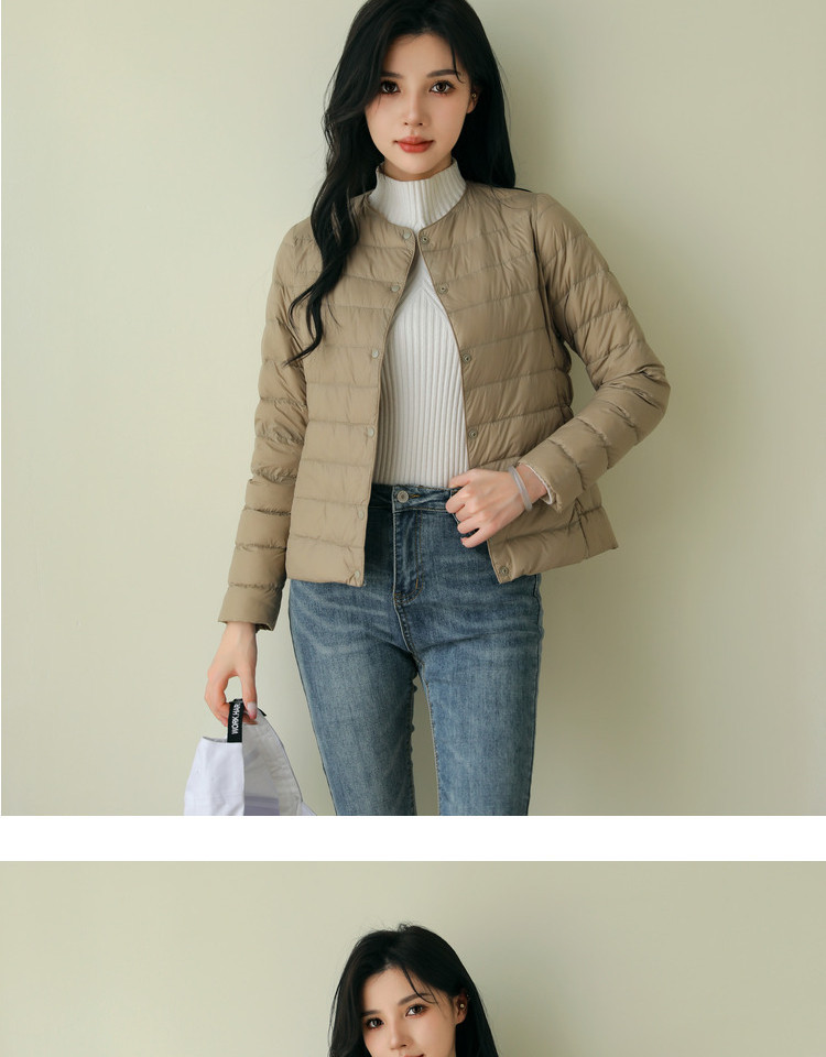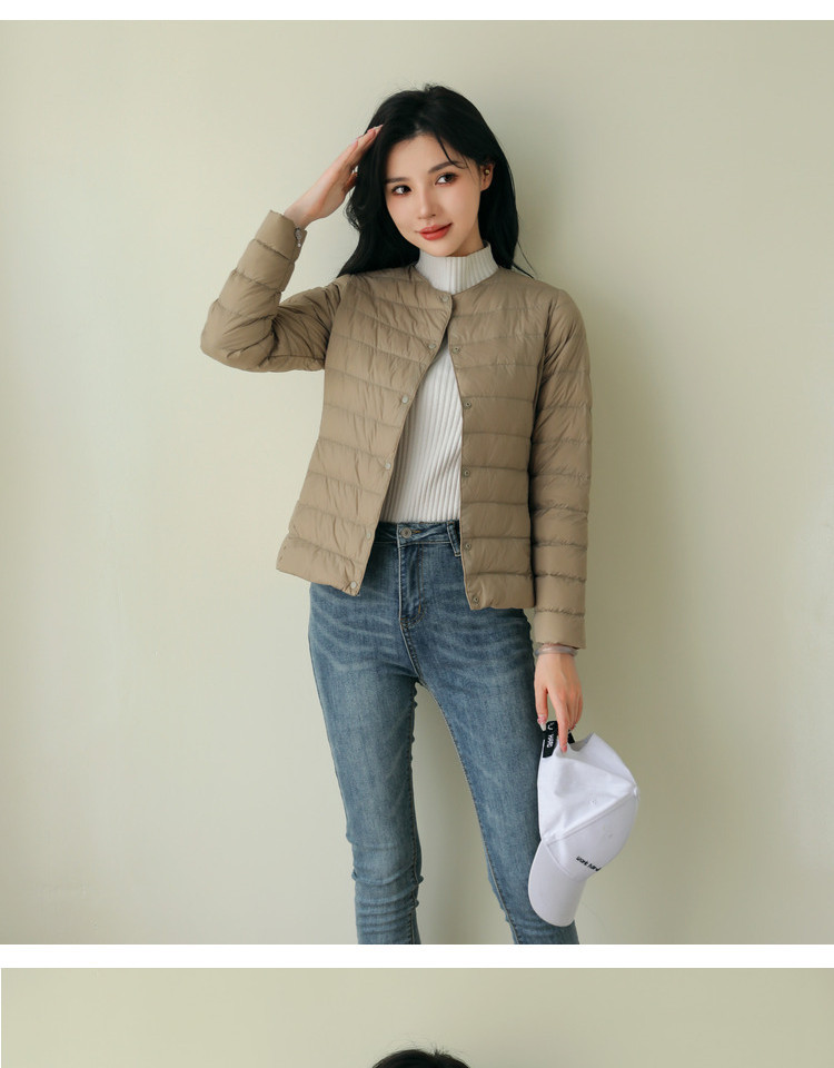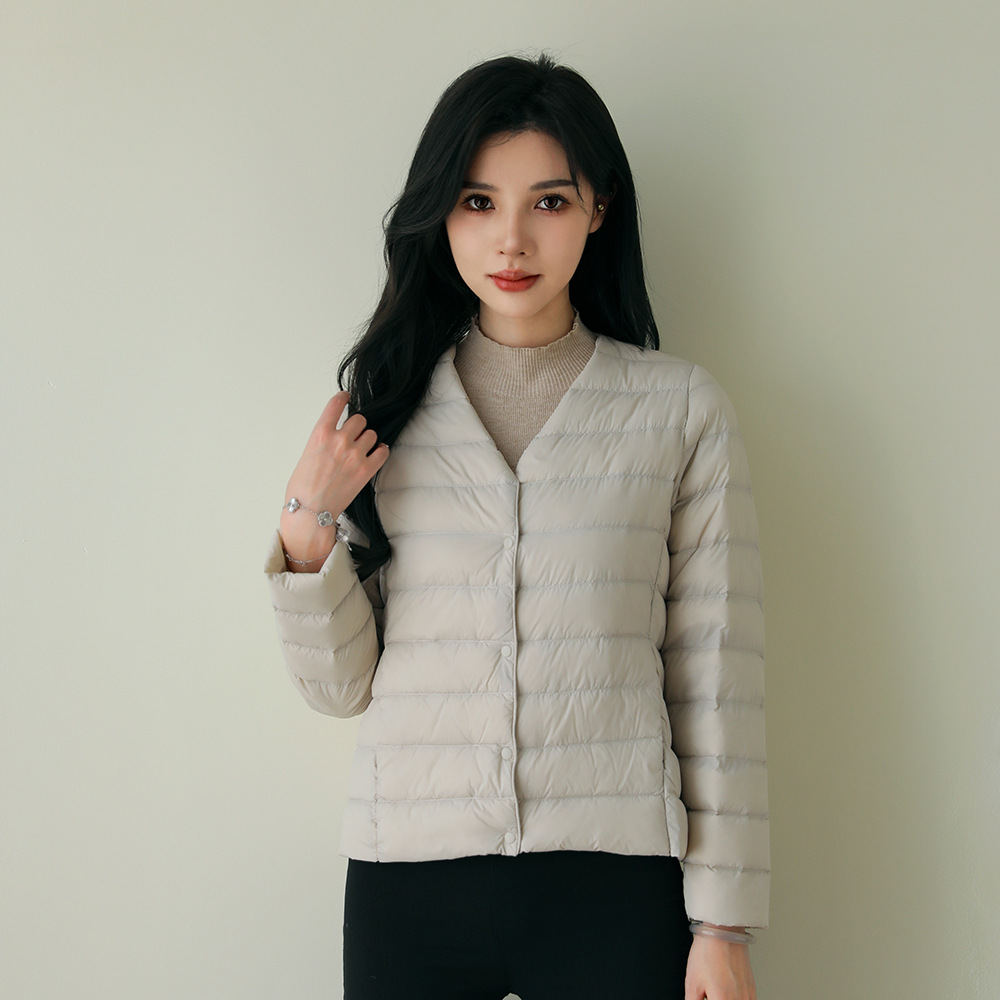 Пуховик Pinghu, тонкий легкий однотонный простой белый пуховик с V-образным вырезом и круглым вырезом, Женский легкий пуховик с подкладкой