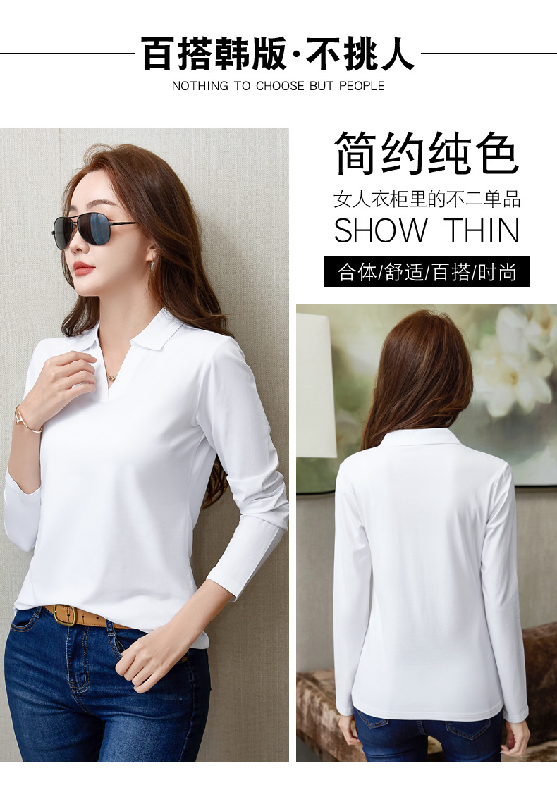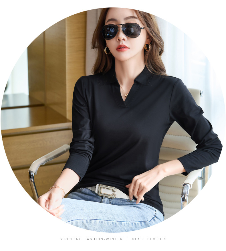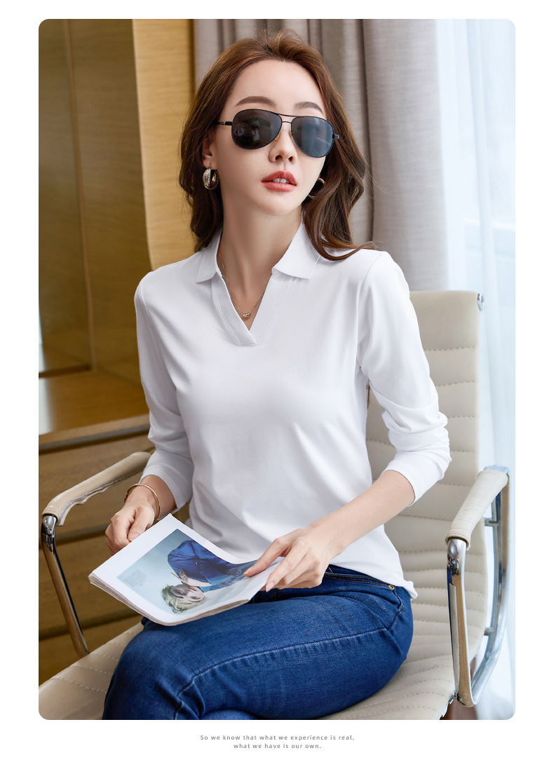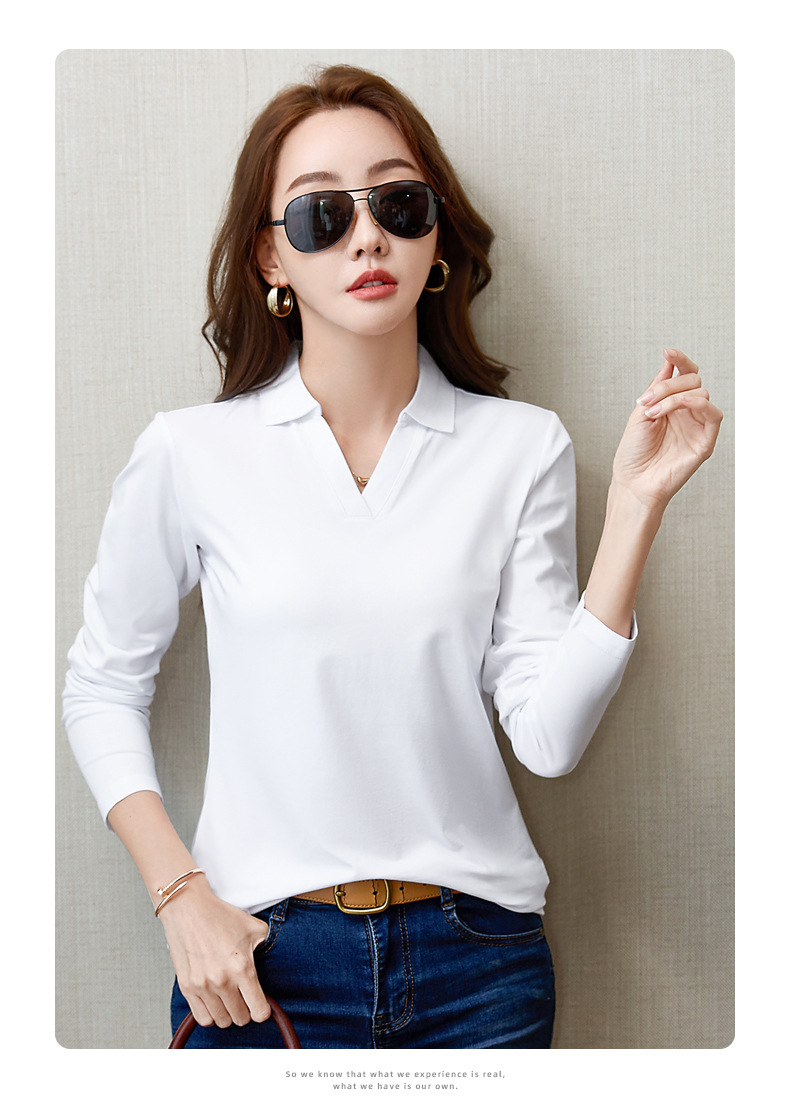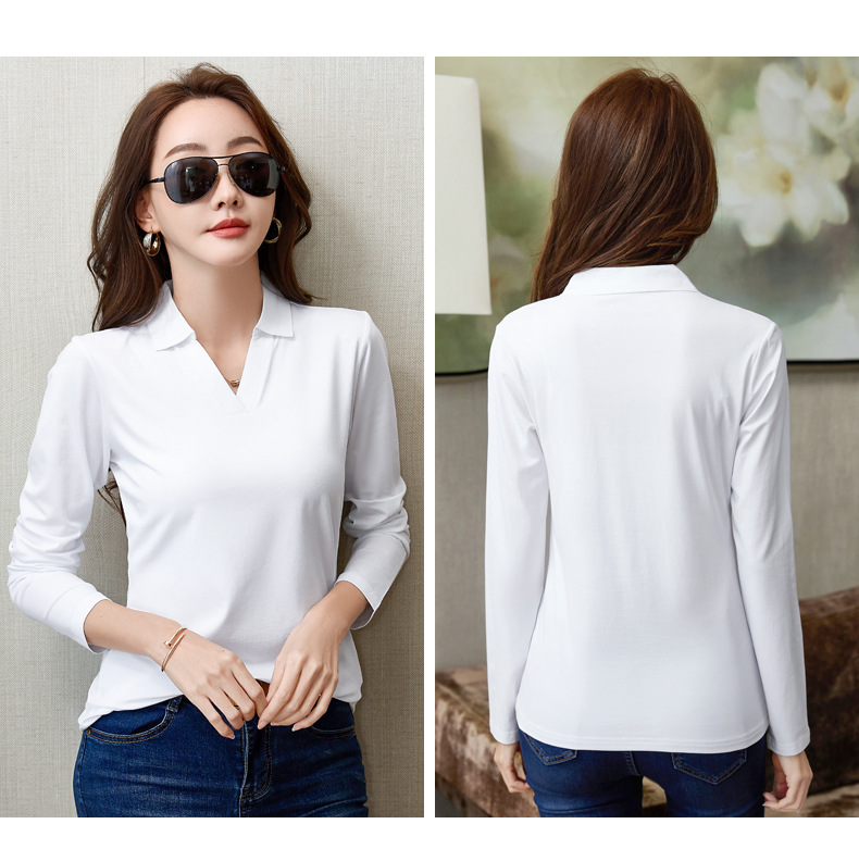 Yu Wei 2822 # Real Shot 2023, новая Приталенная футболка с длинным рукавом, Женский Топ, однотонная Повседневная Базовая рубашка с лацканами на весну и осень