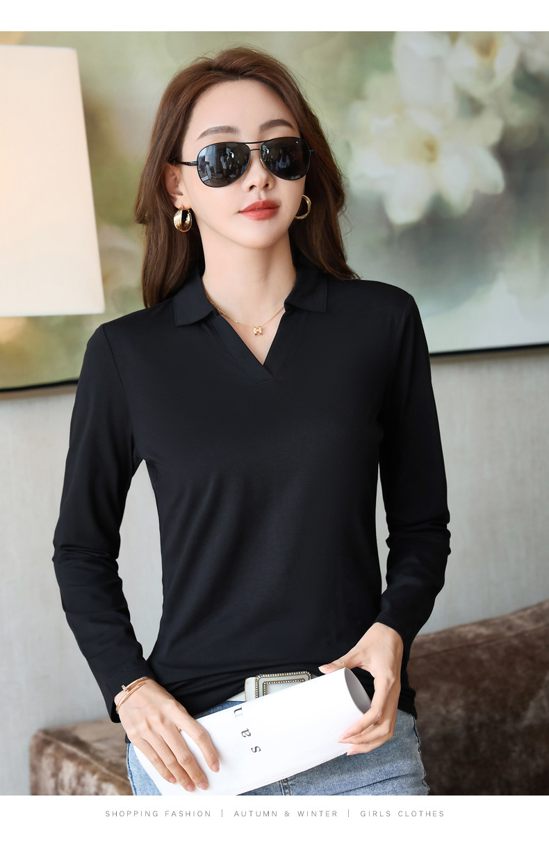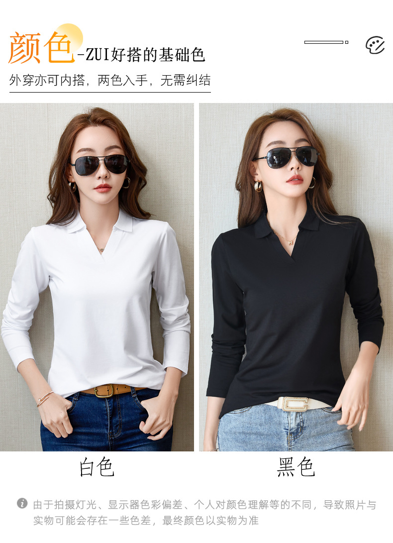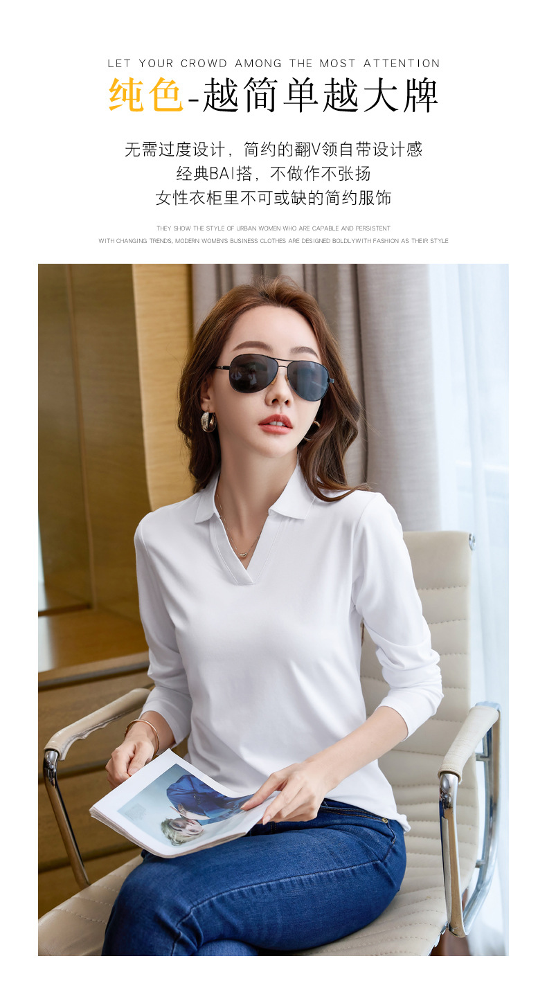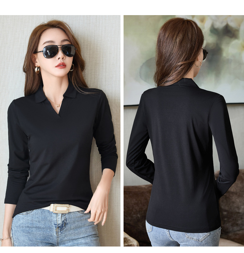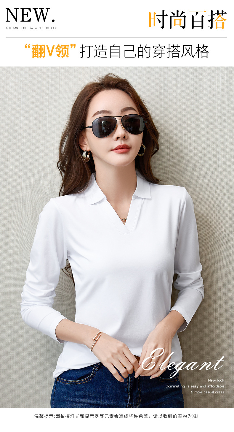 Yu Wei 2822 # Real Shot 2023, новая Приталенная футболка с длинным рукавом, Женский Топ, однотонная Повседневная Базовая рубашка с лацканами на весну и осень