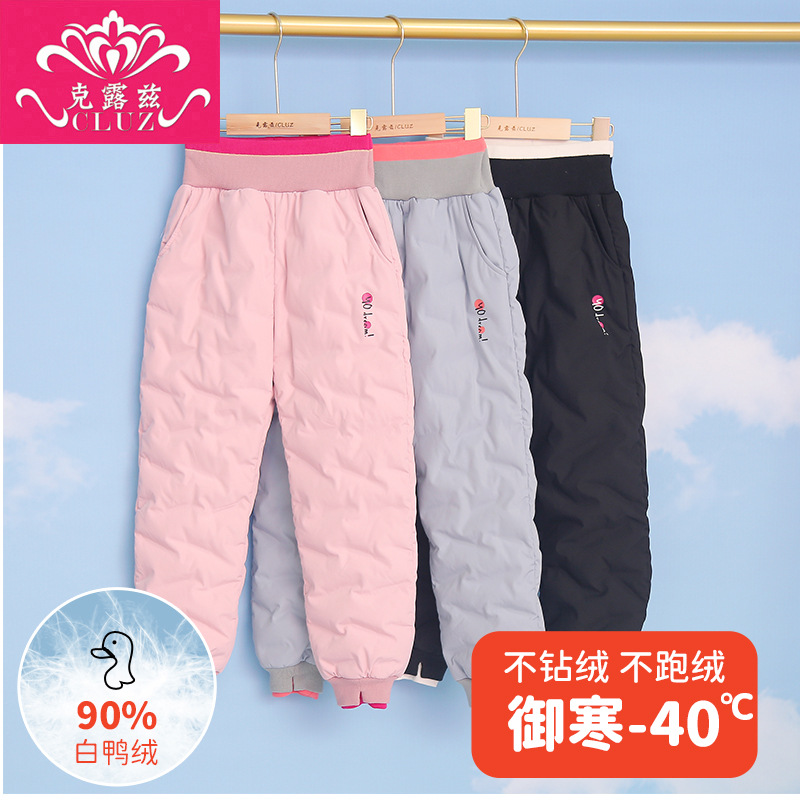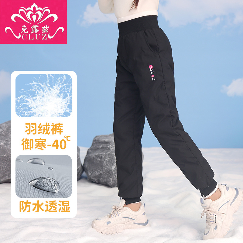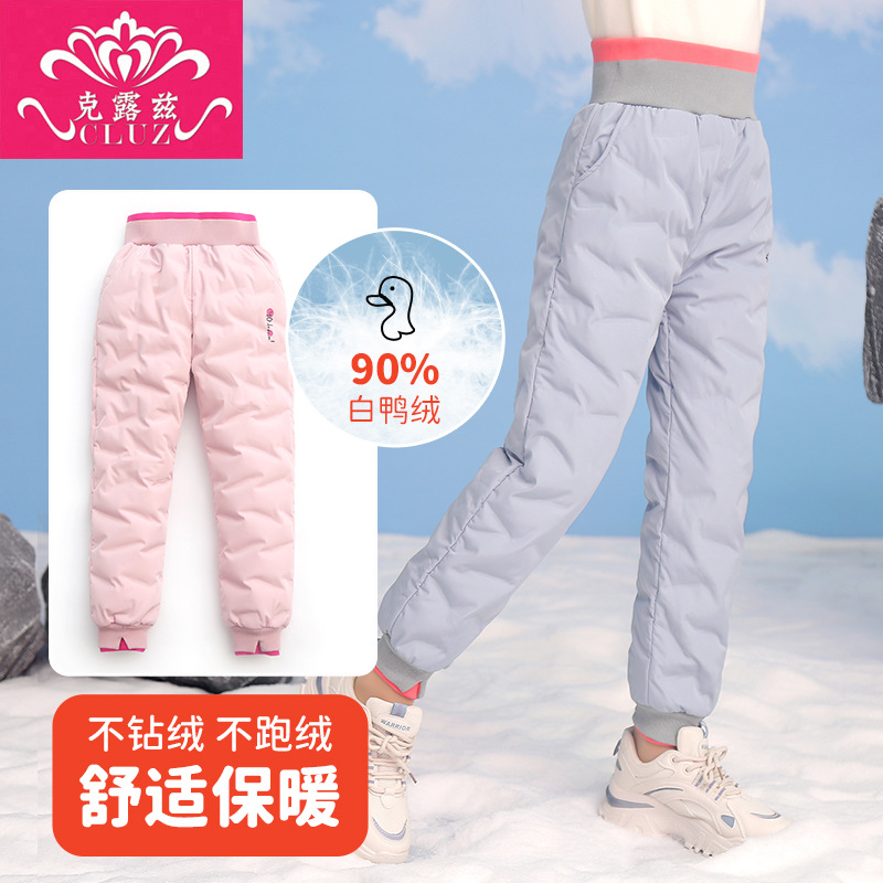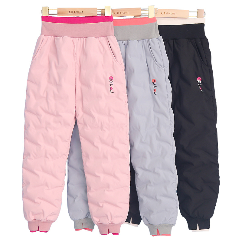 Зимние непромокаемые штаны для девочек на утином пуху с высокой талией, Большие Детские утолщенные теплые штаны, пуховые штаны, Детская верхняя одежда