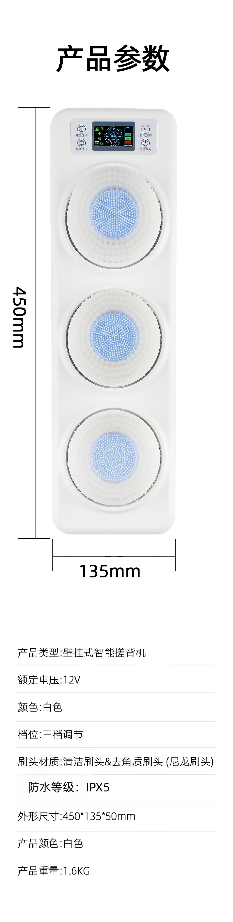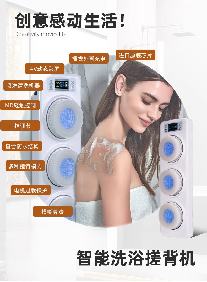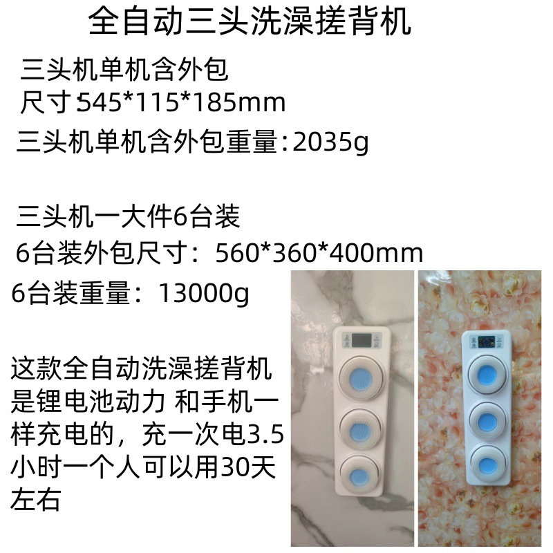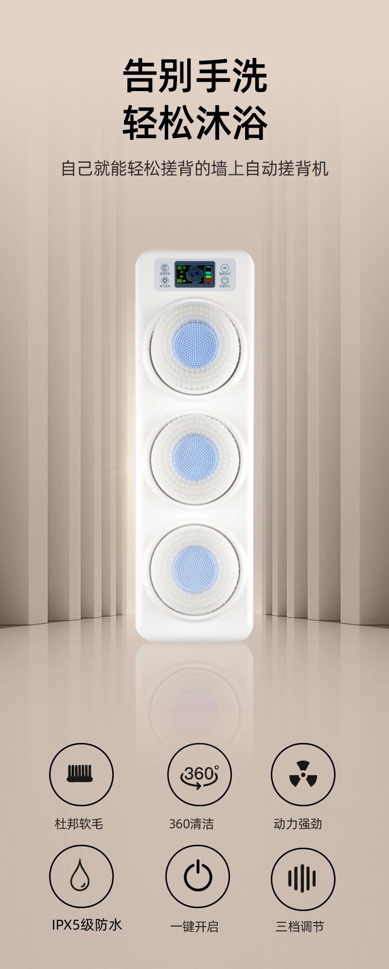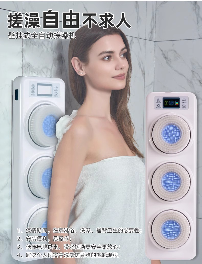 本产品有欧盟专利,FCC认证 CE 认证 国内权威检测机构检测,家有布瑞兹,天天美兹兹,布瑞兹BURUIZI智能AI搓背机的愿景 让全球每一个家庭都拥有一台布瑞兹BURUIZI智能AI搓背机,关爱每一个家庭的健康 ,解放我们的双手,让传统的洗澡搓背成为历史,我们这台洗澡搓背机,彻底解决了年龄大的父母长辈洗澡难搓背难一直没解决的难题,布瑞兹BURUIZI智能AI搓背机让您拥有一个美丽光滑健康的美背 , 爱生活,爱布瑞兹BURUIZI智能AI搓背机 全自动洗澡搓背机, 无需用手一站一靠快速去除灰尘角质皮屑,背部骚痒没有了 ,洗个澡搓个背,洁肤洁背,省心声力,洗澡搓背不求人,轻松搓出牛奶背, 安装时,首先把卫生间瓷砖上的灰尘水分擦干净干燥后,再把摩术贴紧紧贴在瓷砖上,6个小时后把主机紧紧按在摩术贴上就好了非常牢固,充电时拉个延长板来充电,充一次电3.5个小时 一般1个人可以用到30天左右,