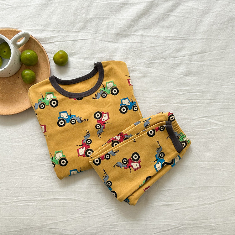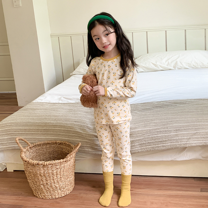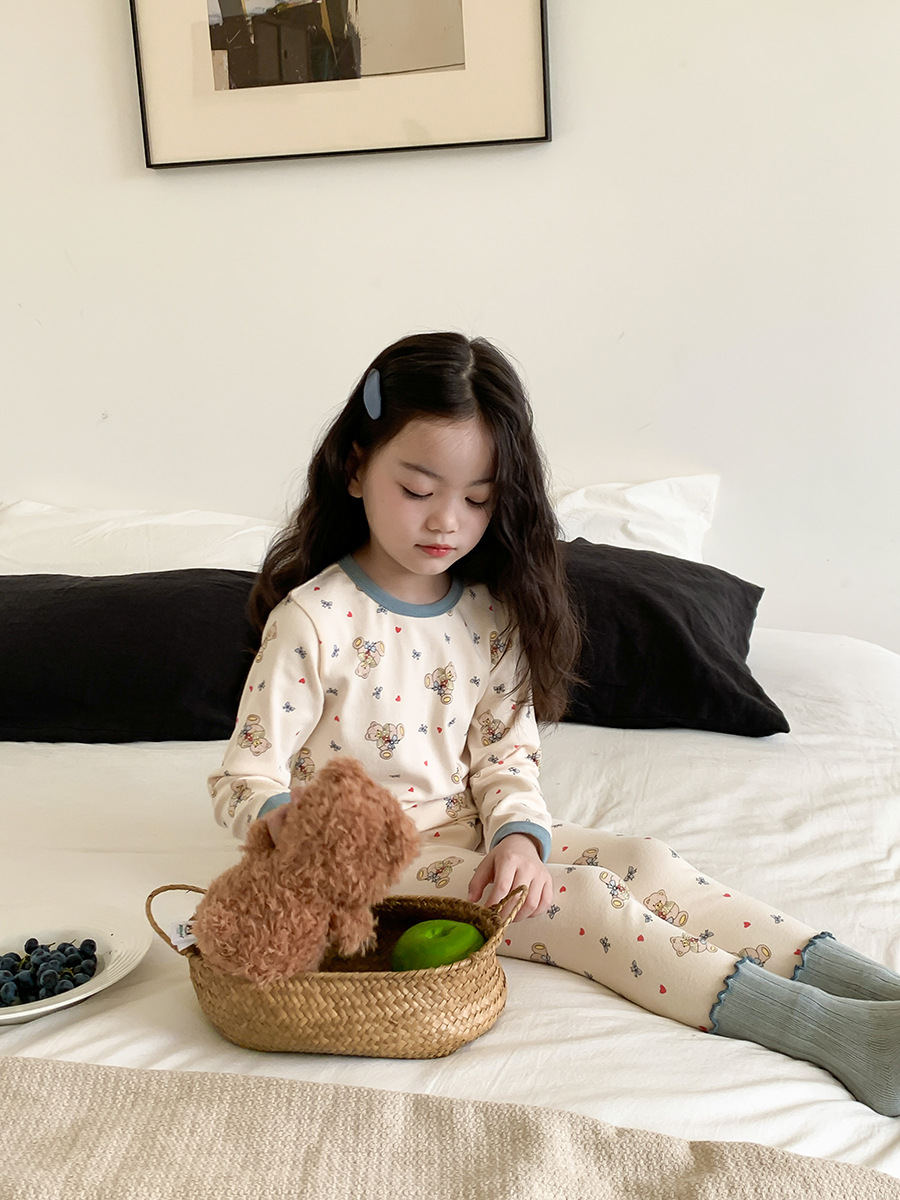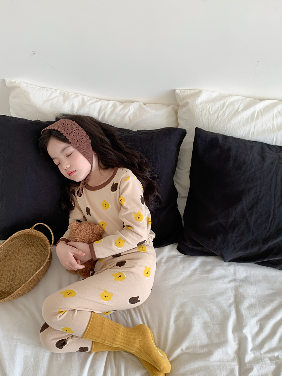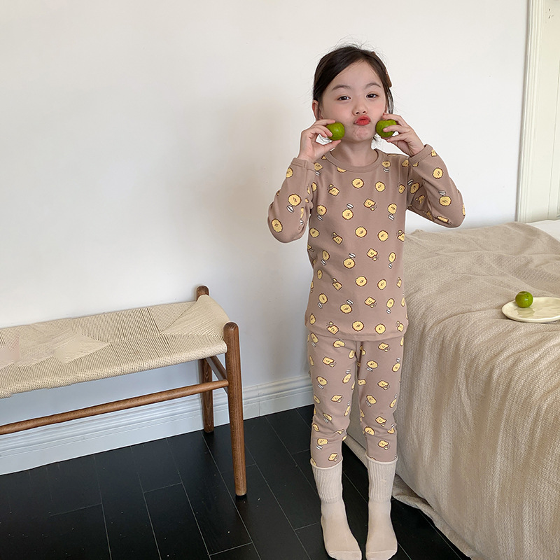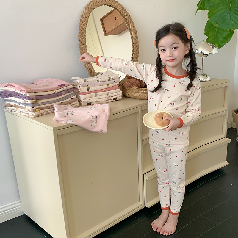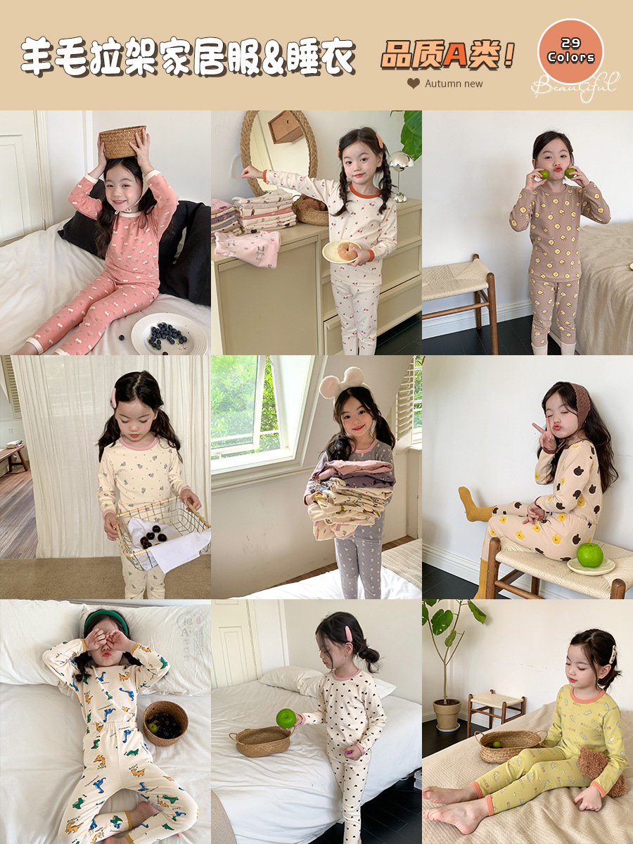 Детский осенне-зимний милый пижамный комплект для мальчиков и девочек, детская осенняя одежда и длинные брюки, домашняя одежда из шерсти с мультяшным принтом класса А.