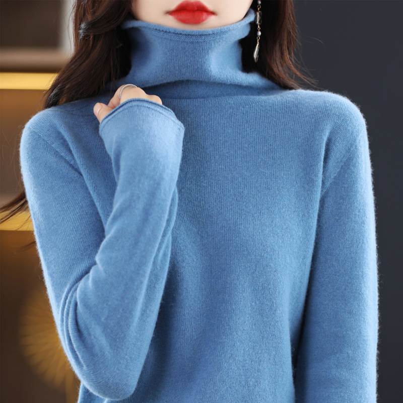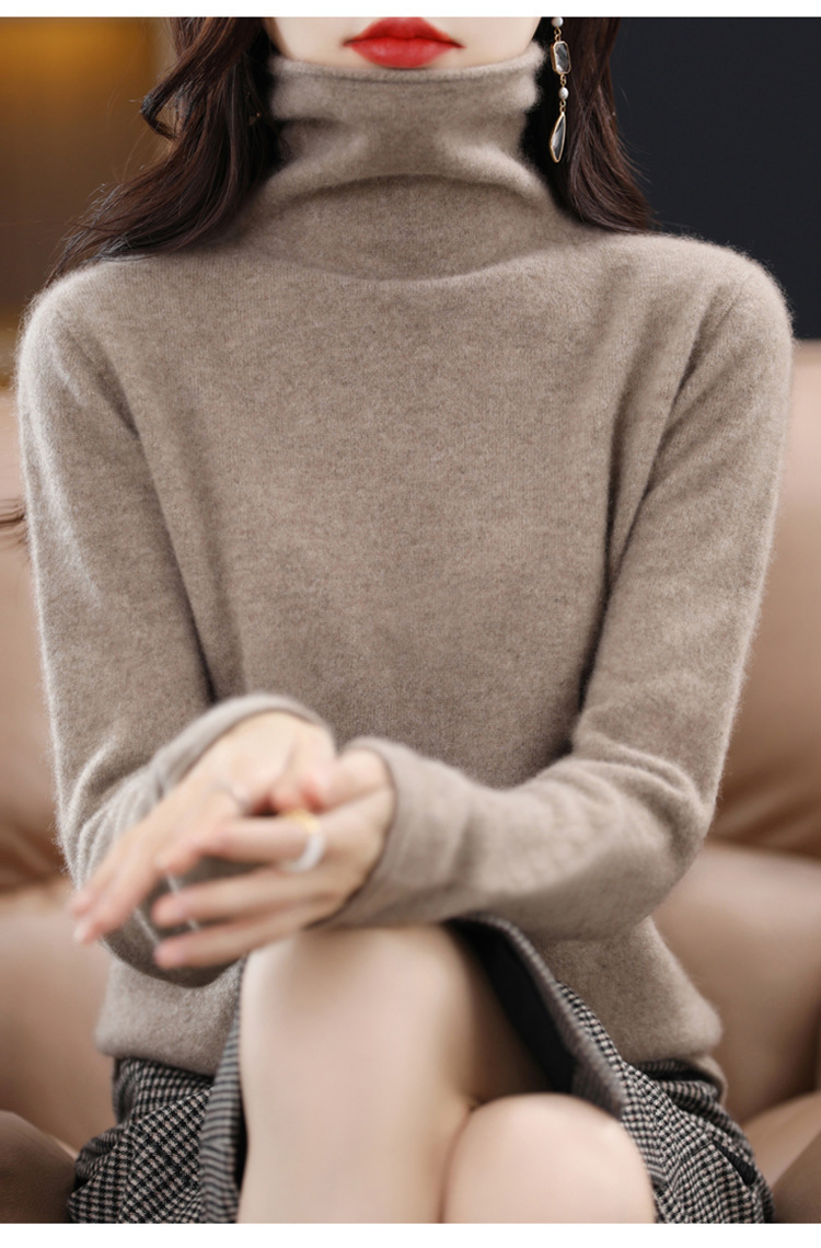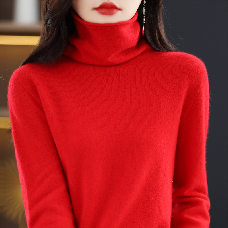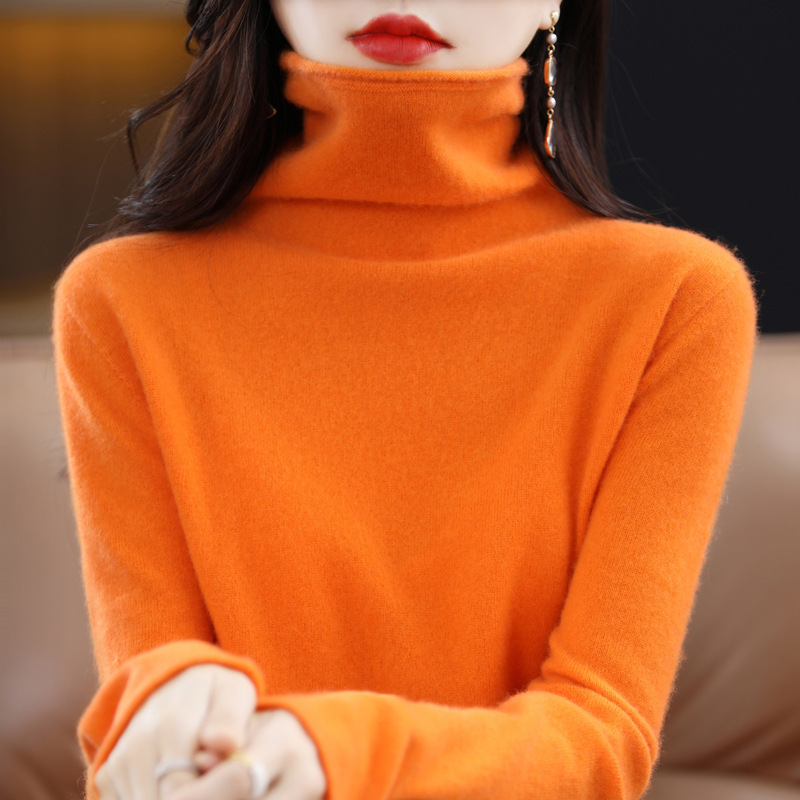 One-Line Rewear Ворсовый воротник 100 Шерстяной свитер Женская свободная внутренняя трикотажная Базовая рубашка Бесшовный кашемировый свитер с высоким воротом