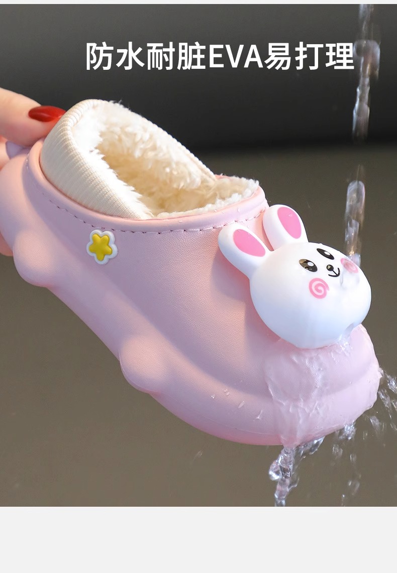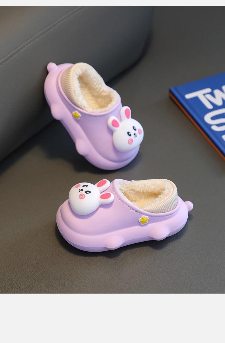 Детские хлопковые тапочки с мультяшным кроликом, осенне-зимние, пушистые, домашние, нескользящие, с каблуком, новый стиль
