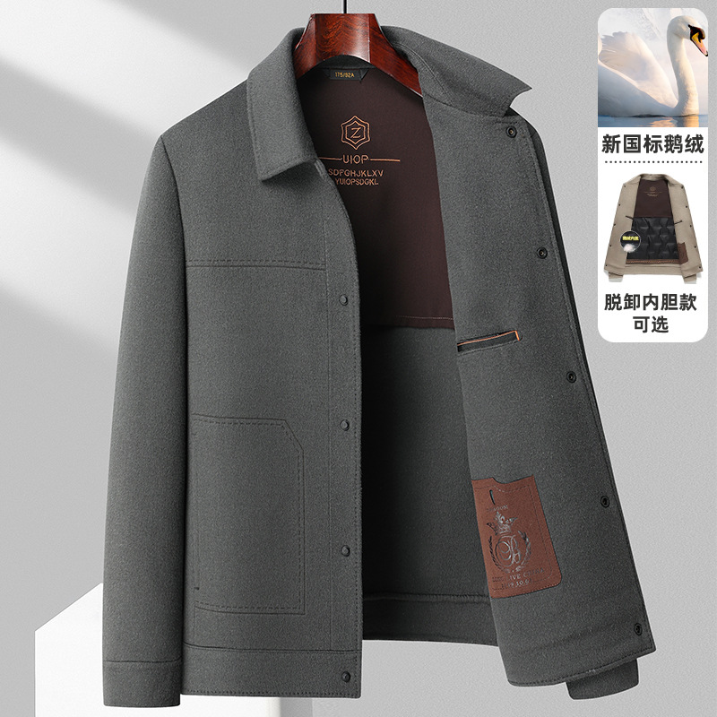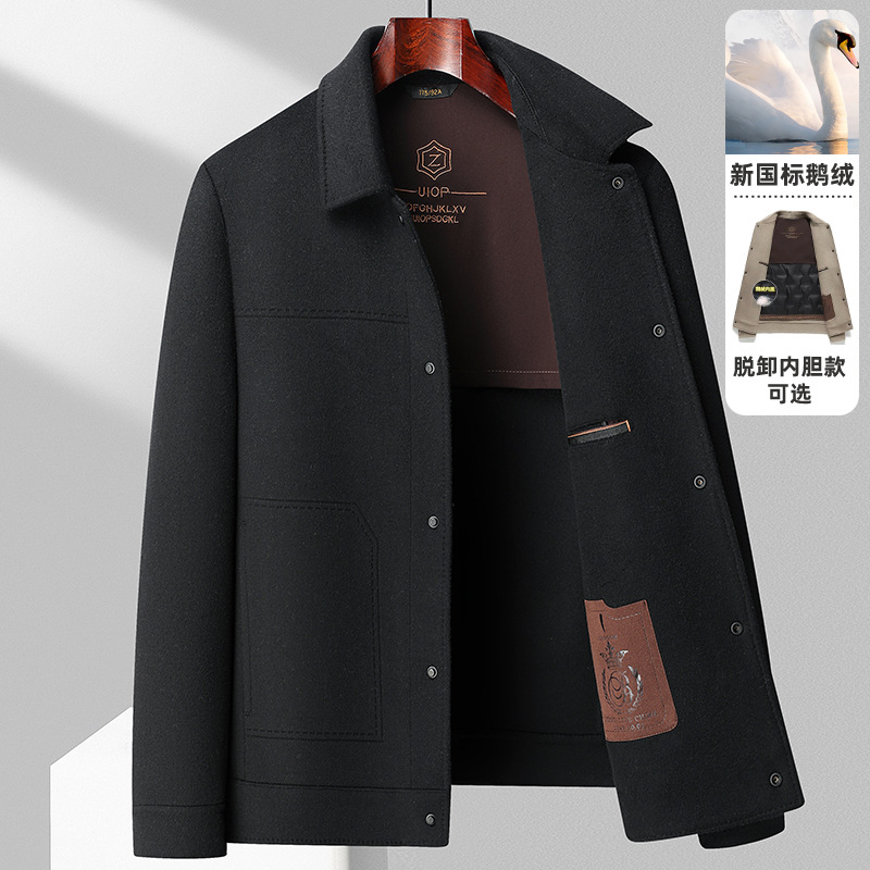 Осенне-зимняя Двусторонняя твидовая шерстяная куртка с лацканами ручной работы, Мужская съемная пуховая подкладка, утолщенная шерстяная куртка