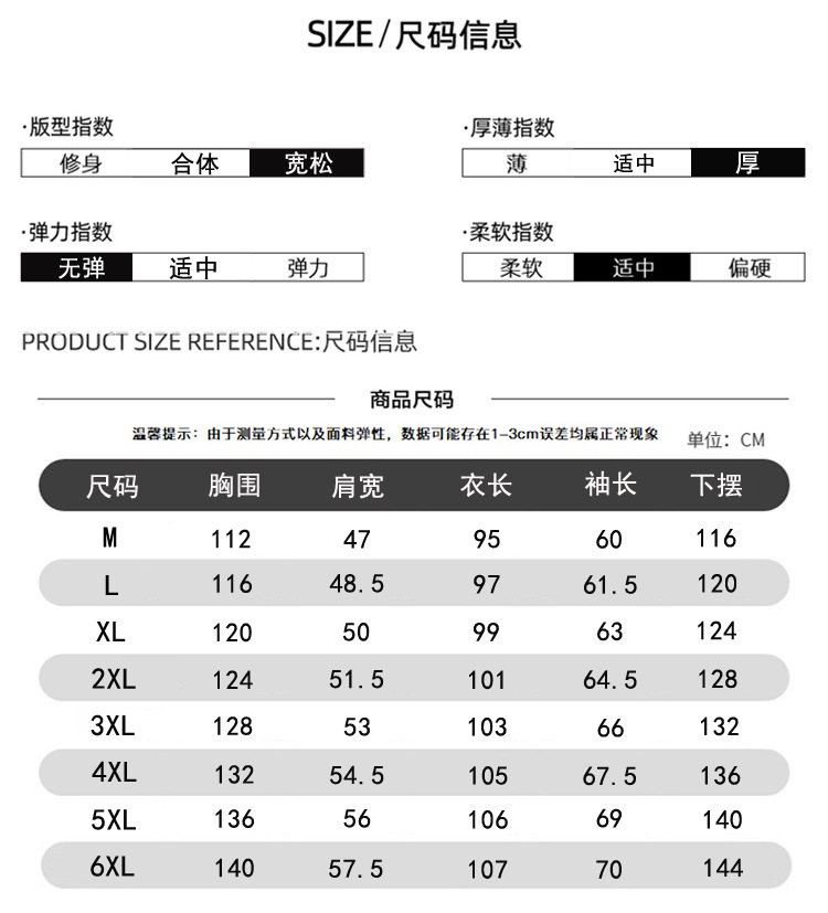 M; L; XL; XXL; 3XL; 4XL; 5XL; 6XL