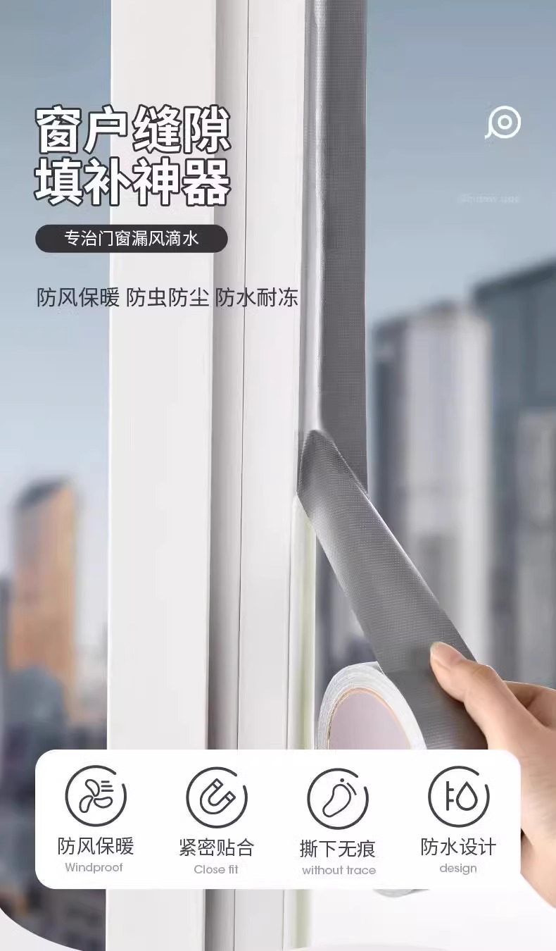 Ветрозащитная лента для дверей и окон кухни и ванной комнаты, прочная герметизация для стеклянных дверей и щелей, лента на тканевой основе, защищающая от насекомых и водонепроницаемая.