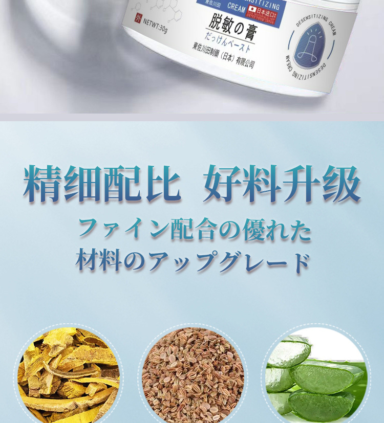 Крем для десенсибилизации Тоцакавада (30 г/упак.); Крем для десенсибилизации Гонконга (30 г/упаковка); Корейский крем для десенсибилизации (30 г/упак.); Крем для десенсибилизации аптеки Гонконга (желтый крем в стеклянной бутылке, 30 г/коробка); Десенсибилизирующий крем Ли Шичжэнь (30 г/упак.)